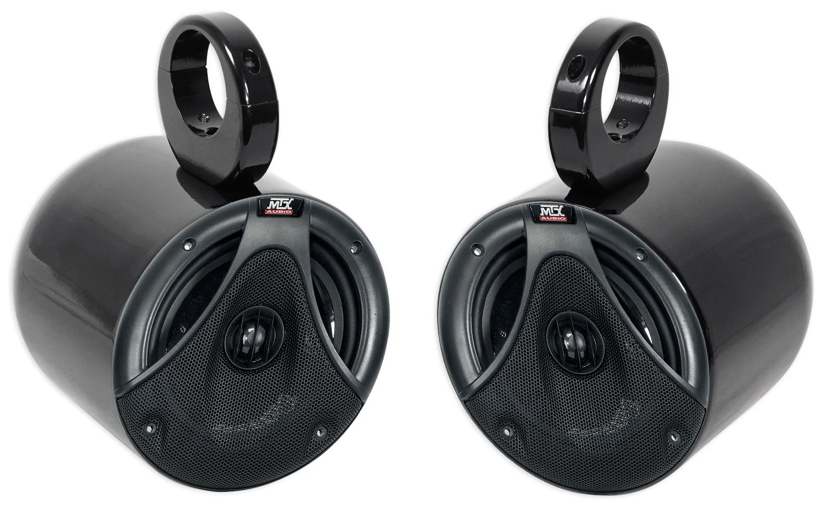 (2) MTX 6.5" 150 Watt Black Marine Boat Wakeboard Tower Speakers w/Crossover