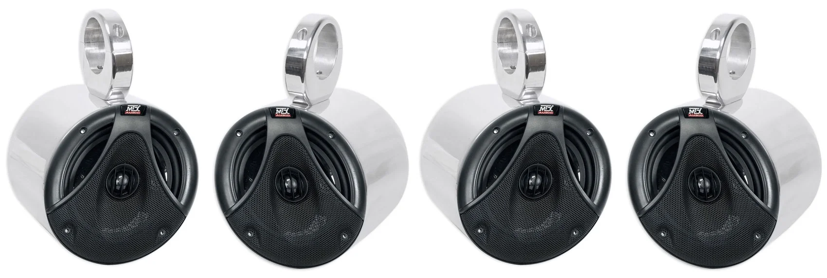 (4) MTX 6.5" 150 Watt Silver Marine Boat Wakeboard Tower Speakers w/Crossover