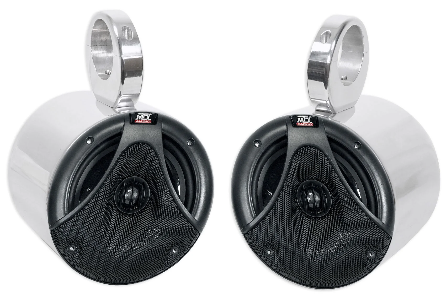 (2) MTX 6.5" 150 Watt Silver Marine Boat Wakeboard Tower Speakers w/Crossover