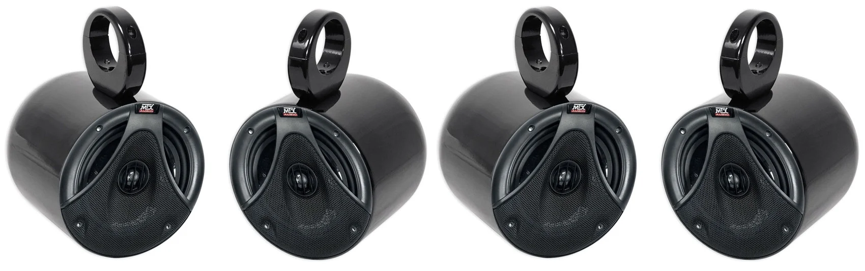 (4) MTX 6.5" 150 Watt Black Marine Boat Wakeboard Tower Speakers w/Crossover