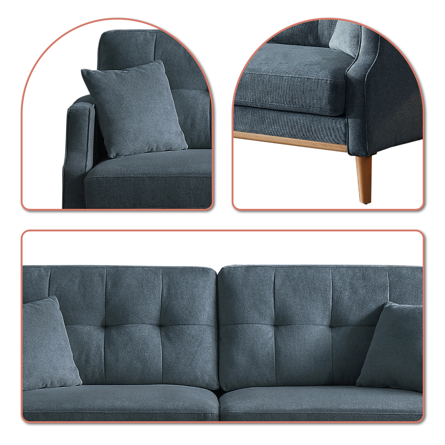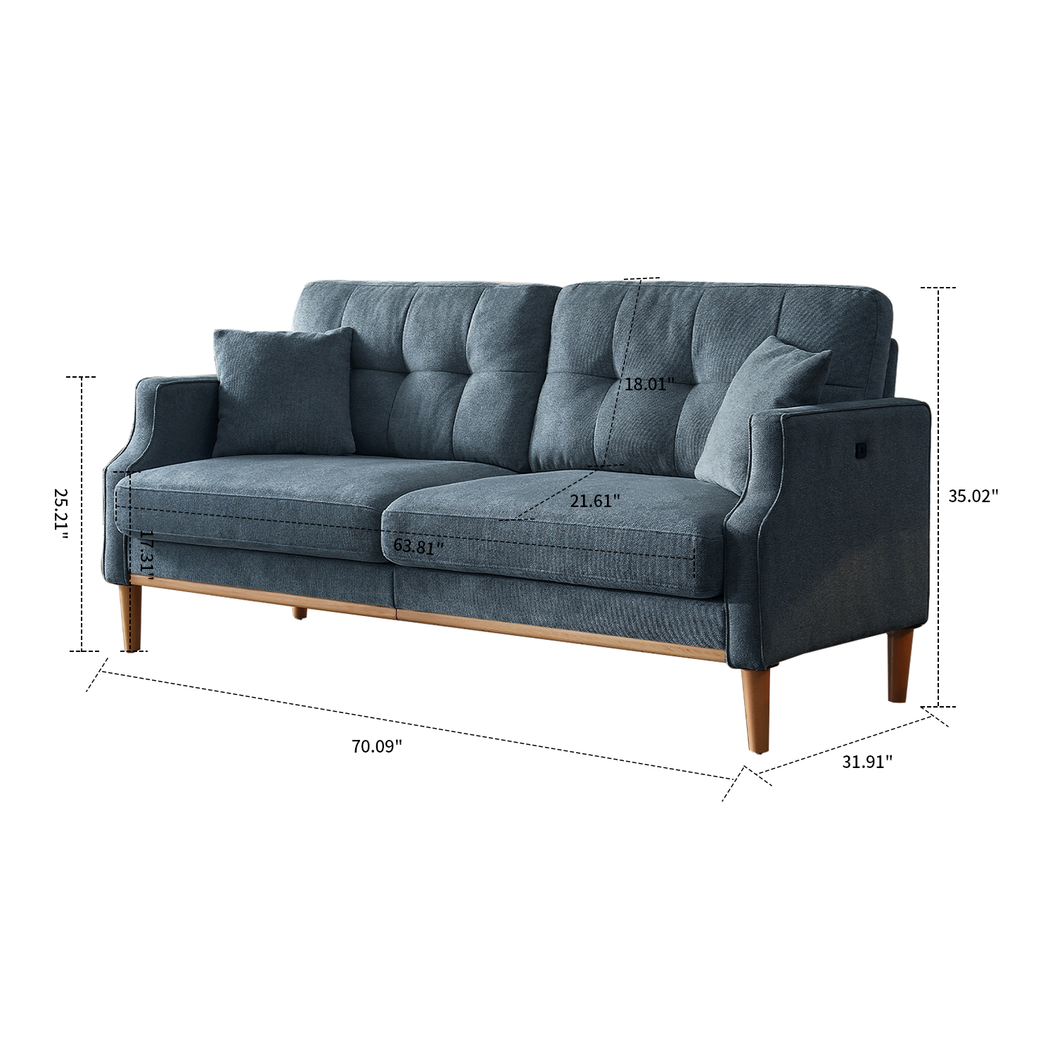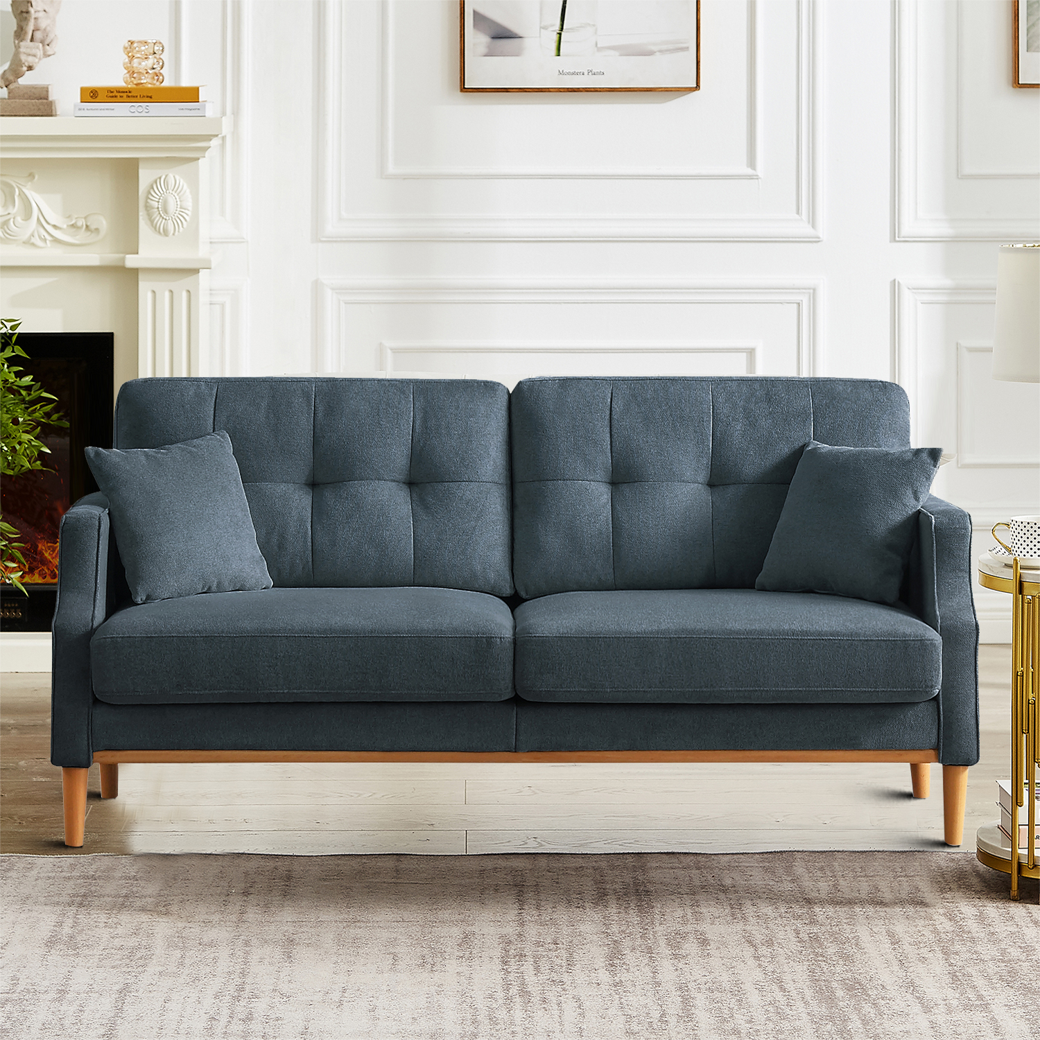 Elegant Style Casual Three Seat Polyester Sofa with Two Pillows for Living Room, Bedroom, Office, Dark Blue