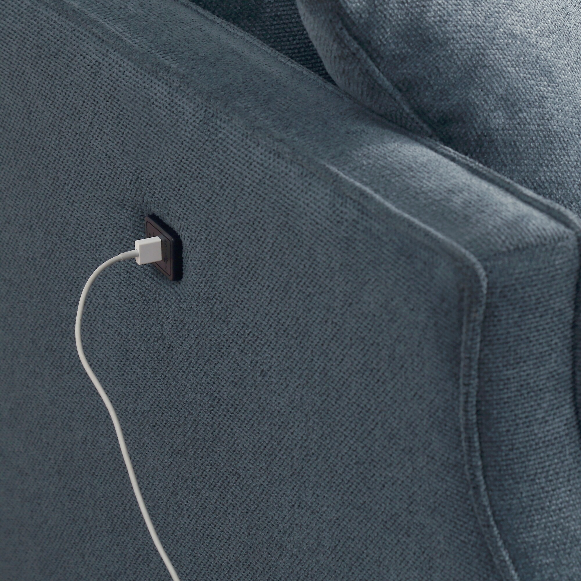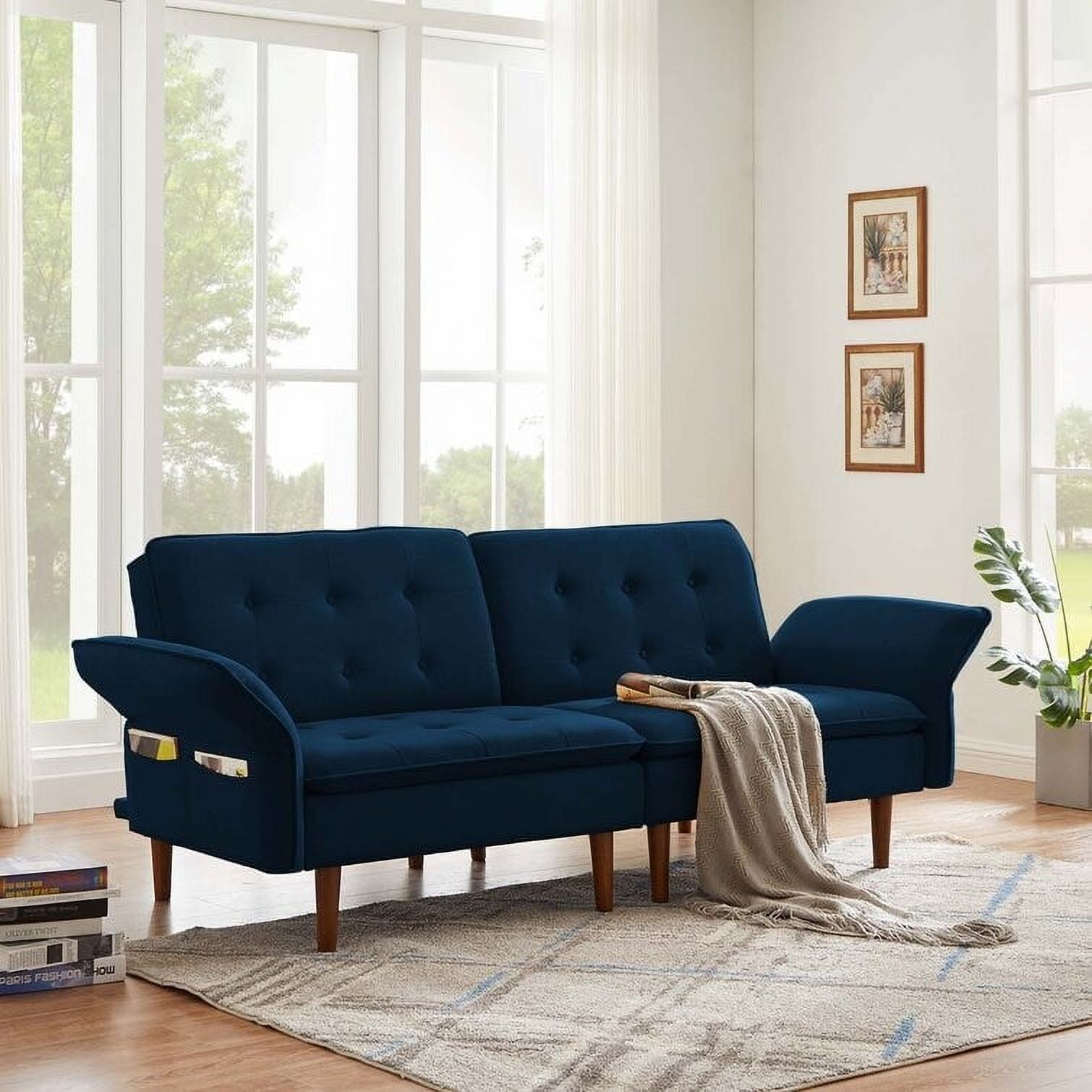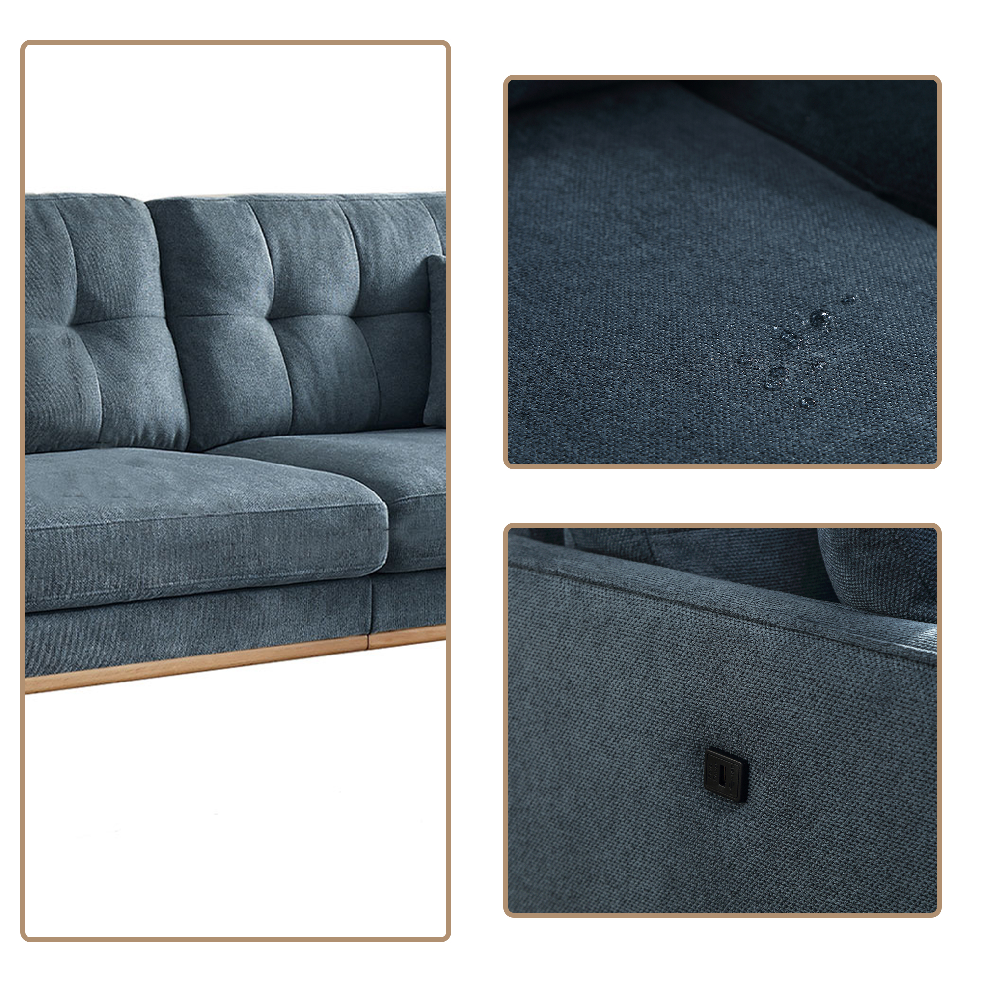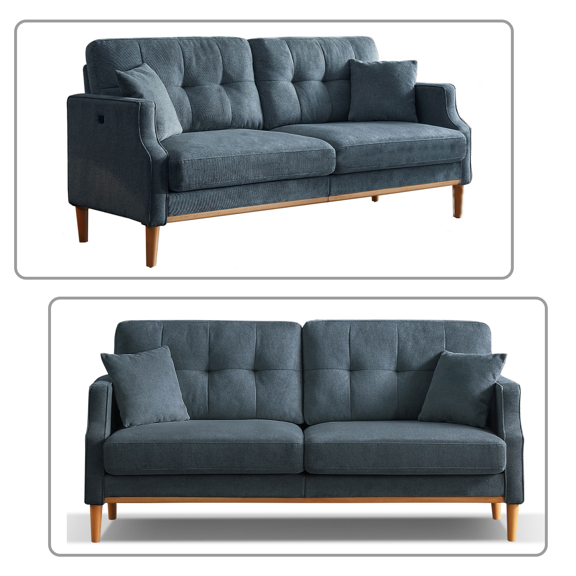 Elegant Style Casual Three Seat Polyester Sofa with Two Pillows for Living Room, Bedroom, Office, Dark Blue