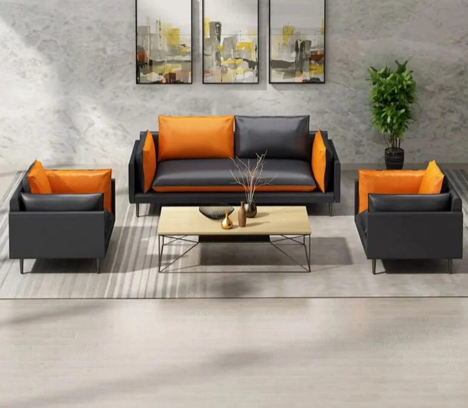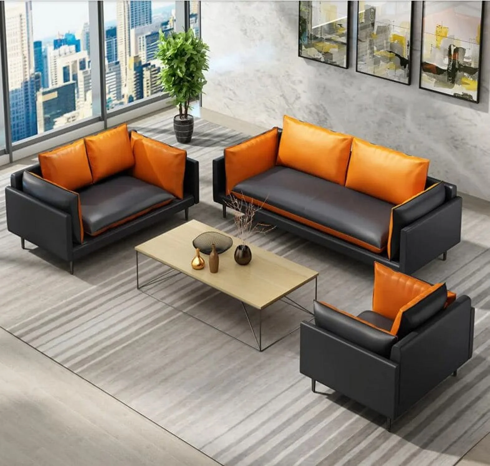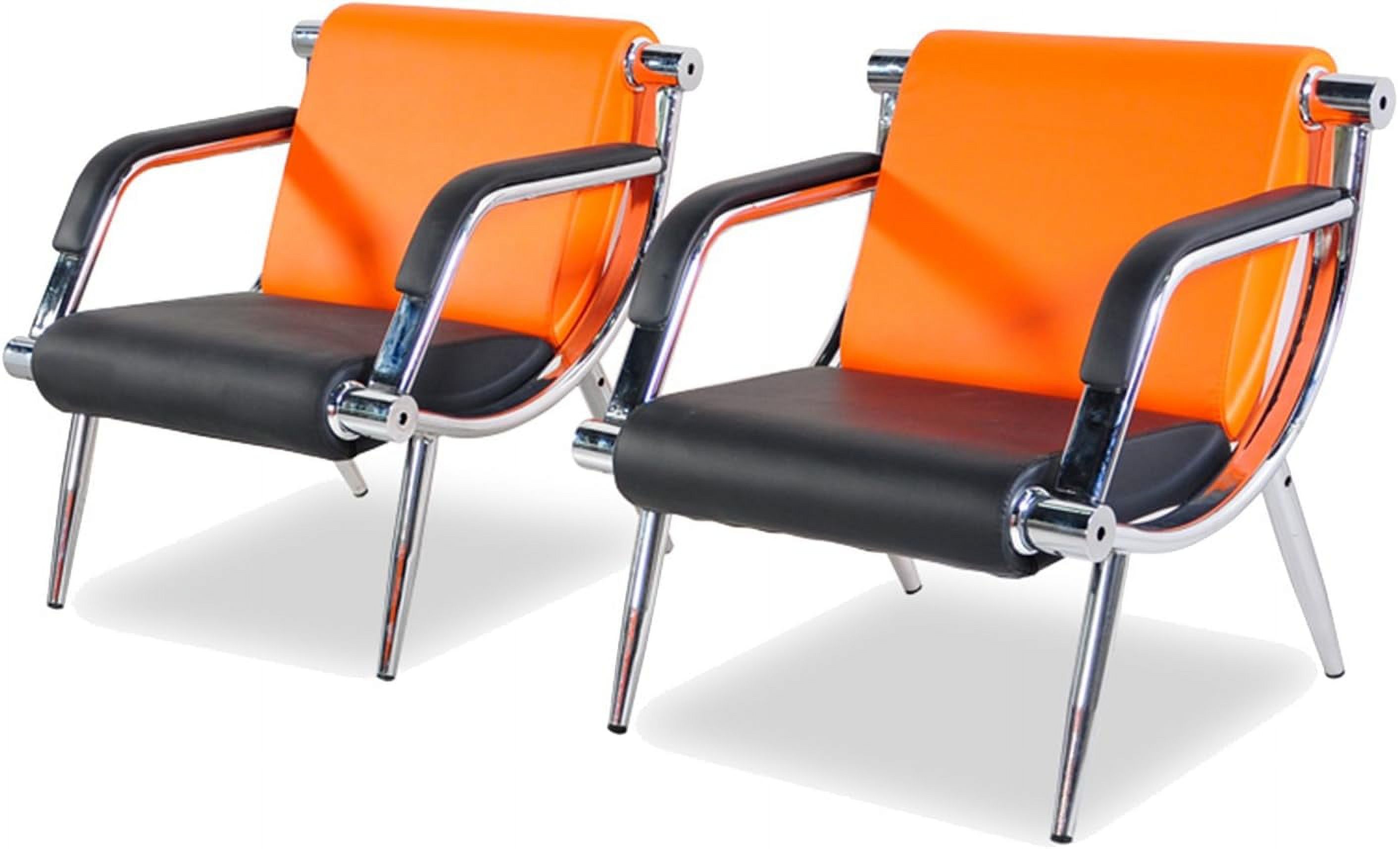 2Pcs Orange And Black PU Leather Office Reception Chair Waiting Room Visitor Guest Sofa Seat