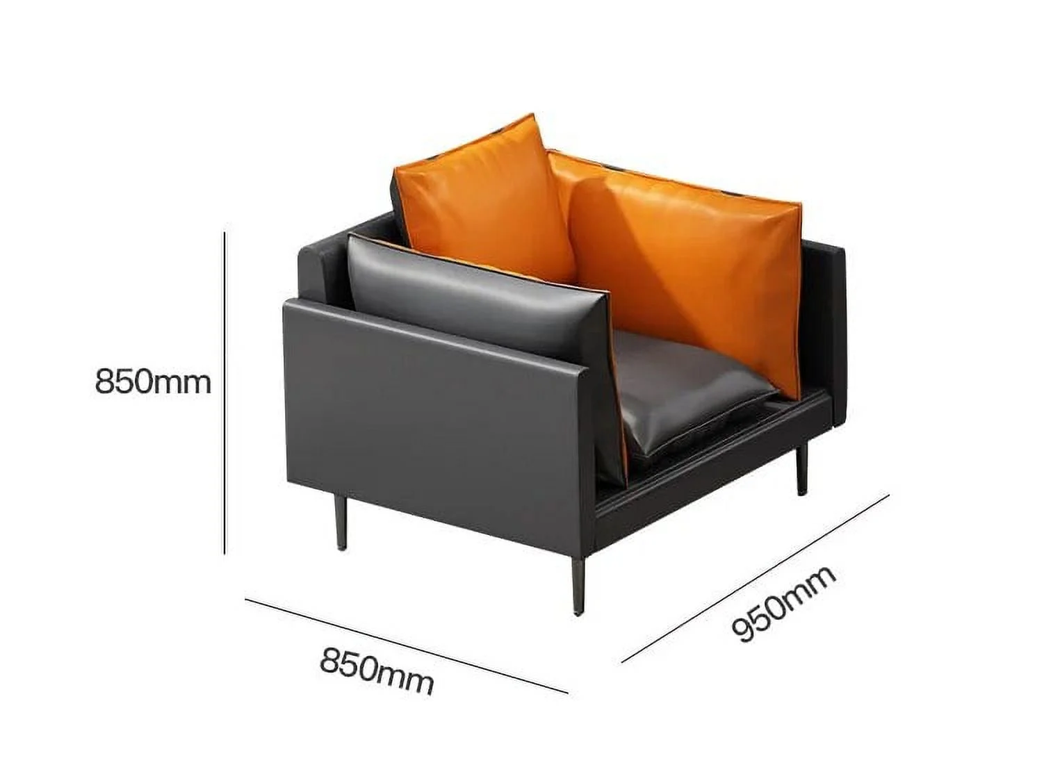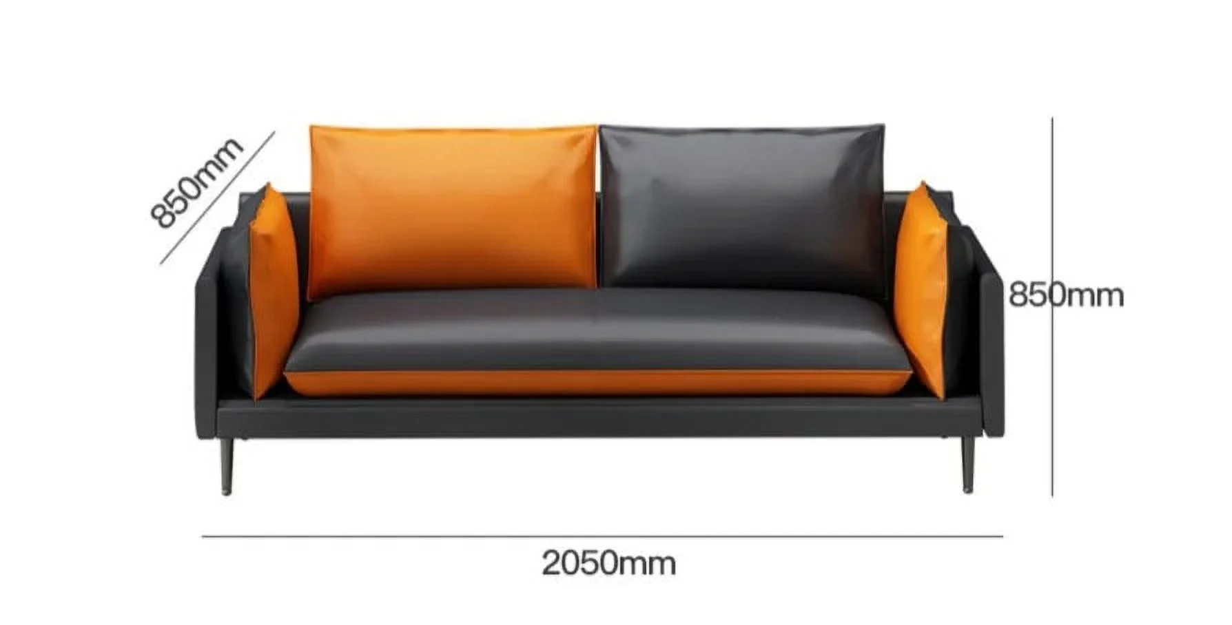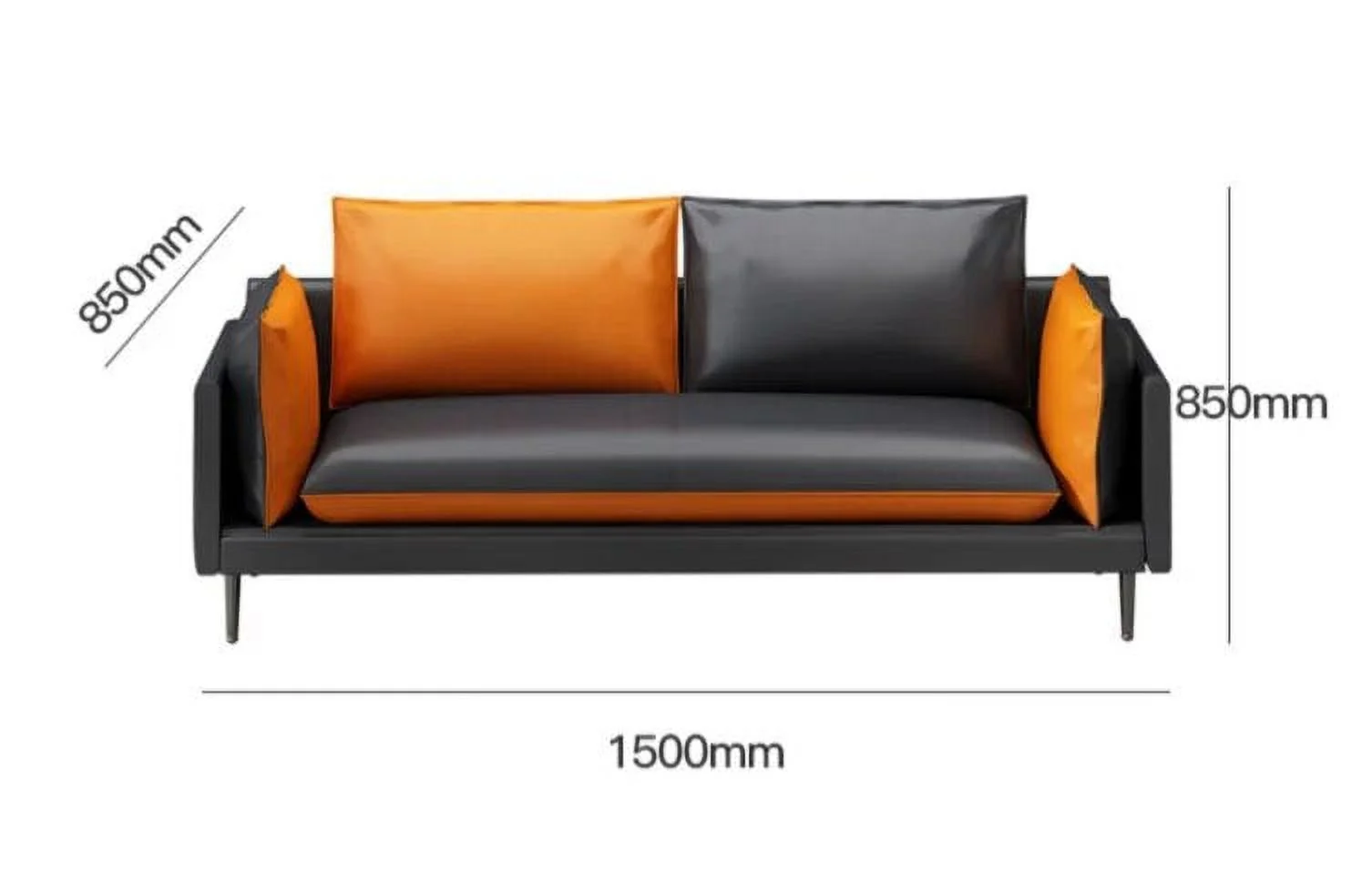 2Pcs Orange And Black PU Leather Office Reception Chair Waiting Room Visitor Guest Sofa Seat