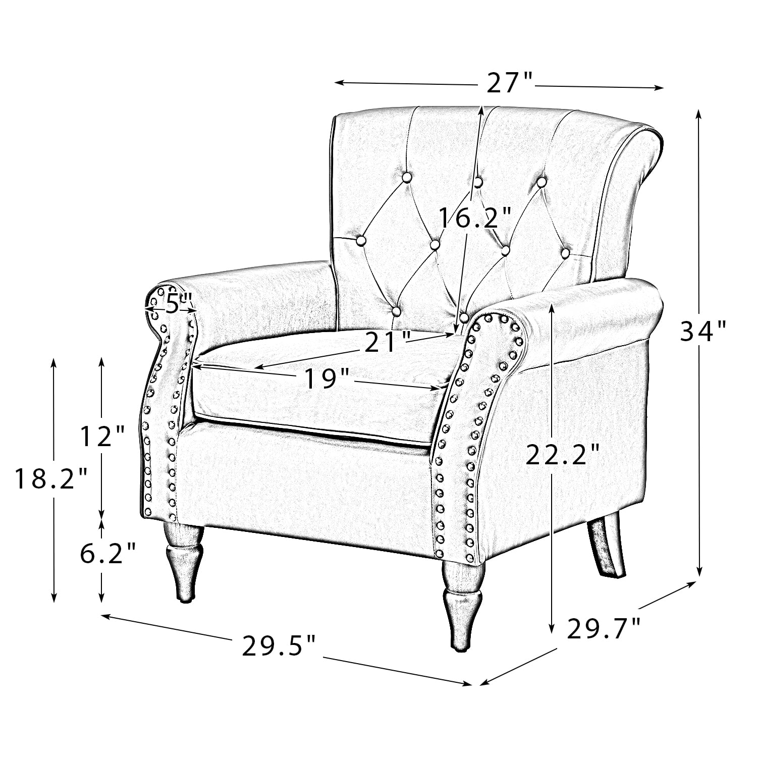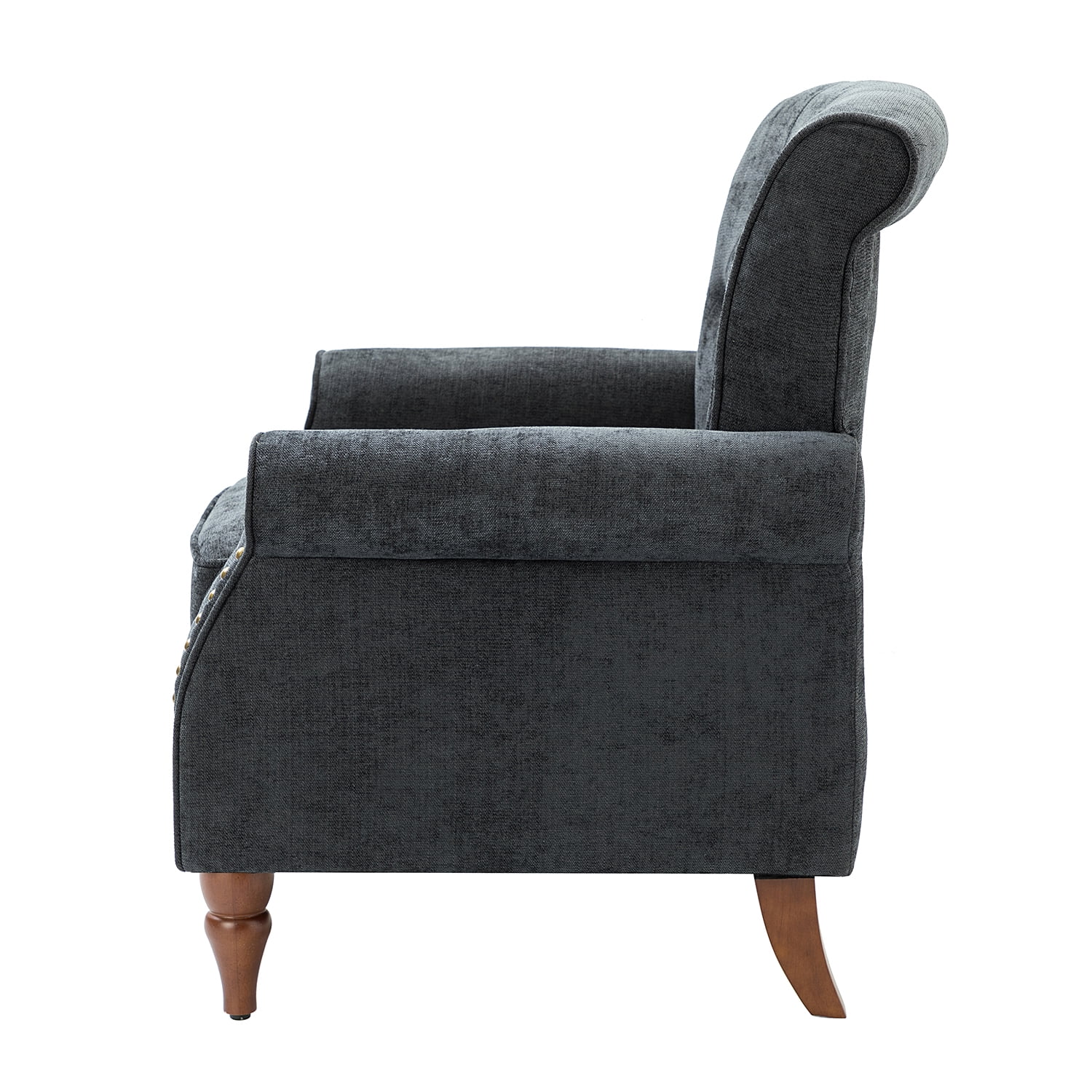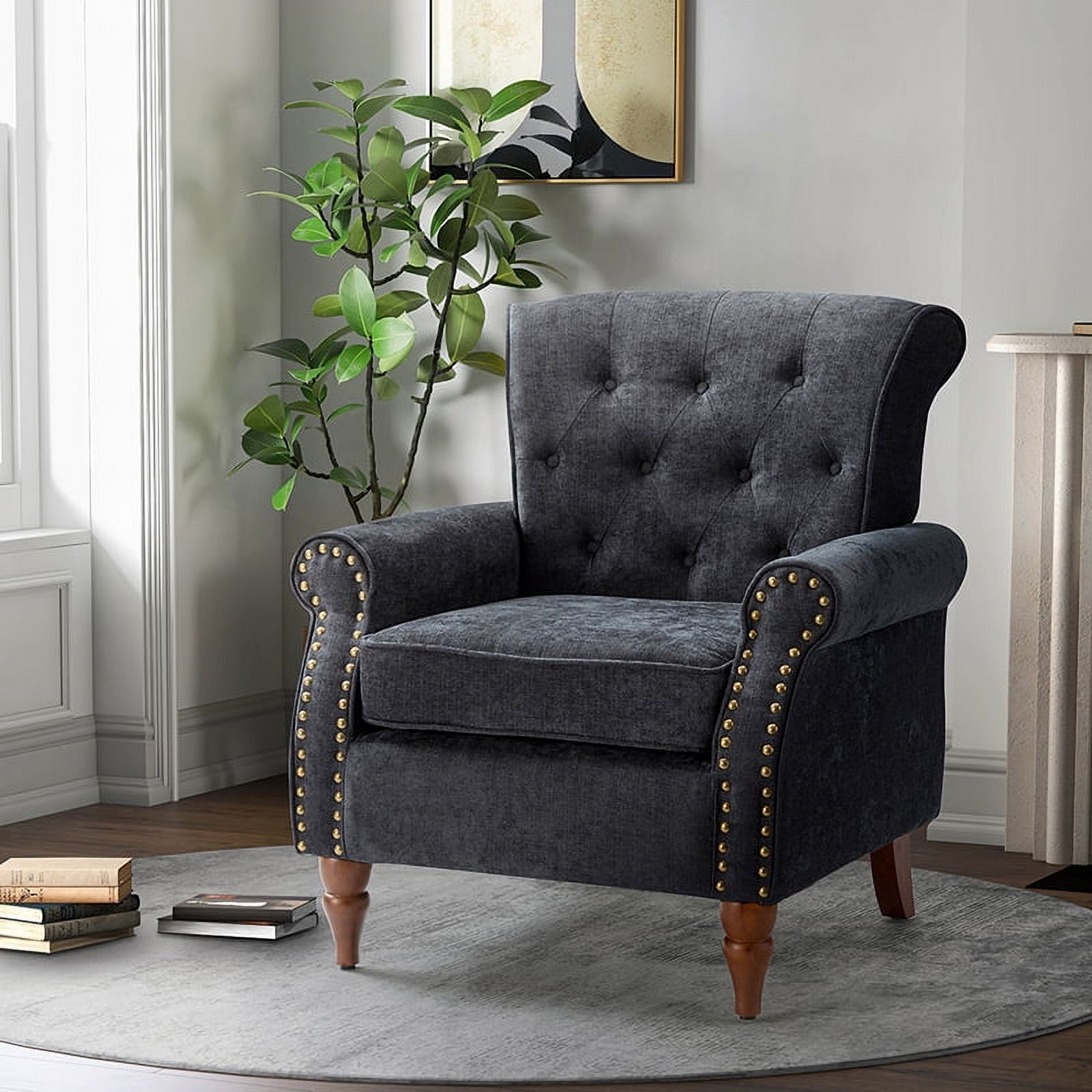 Modern Upholstered Armchair, Tina's Home Accent Chair Button Tufted Wood Leg Living Room Adult Charcoal