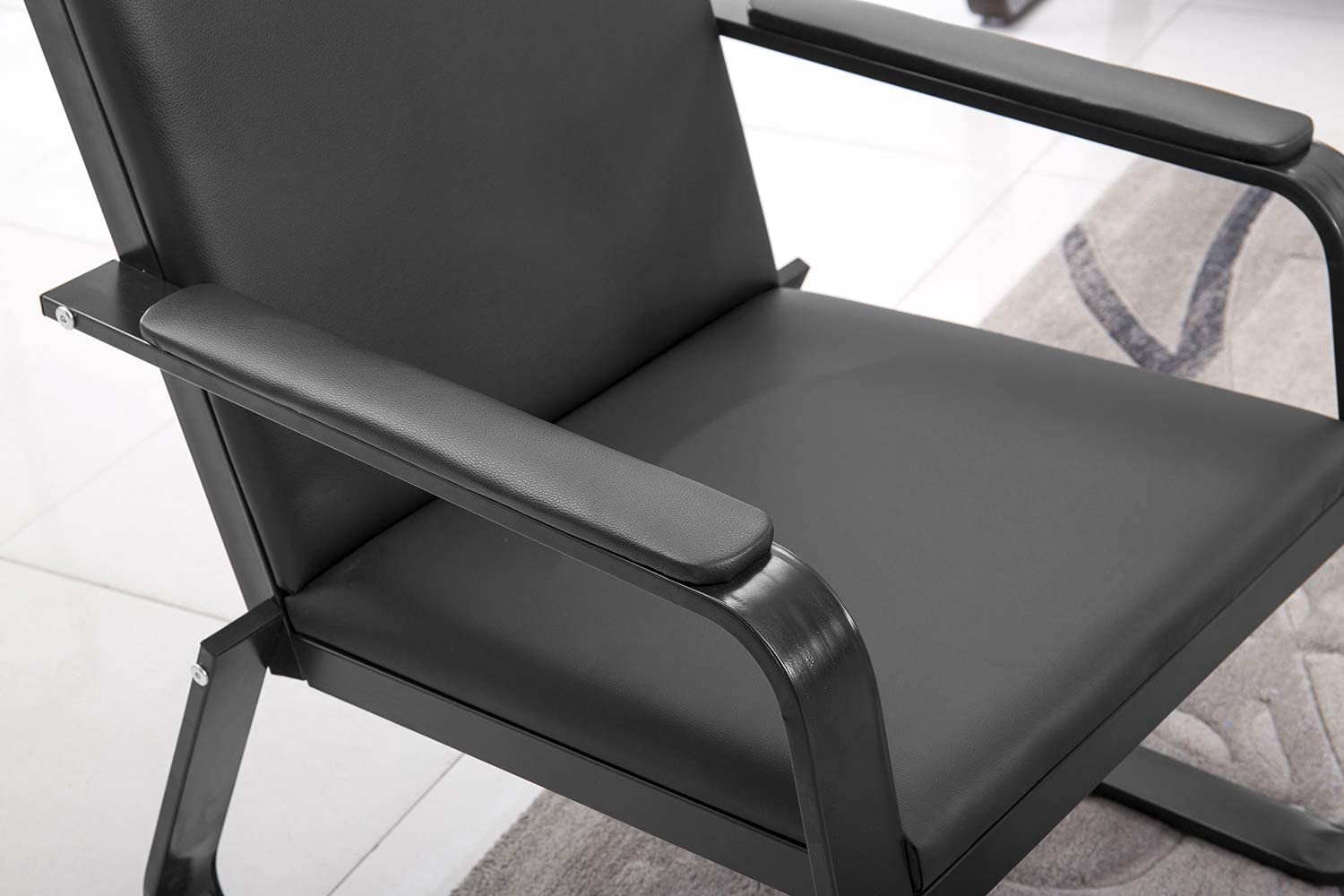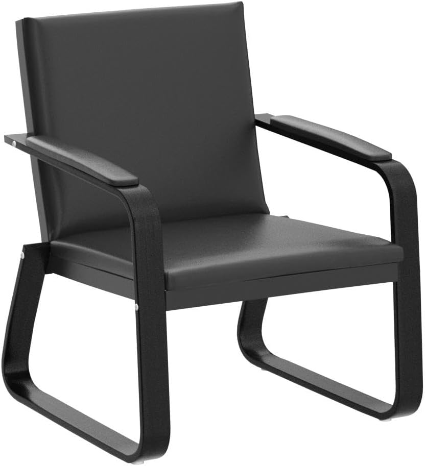 Black PU Leather Office Reception Chair Waiting Room Visitor Guest Sofa Seat
