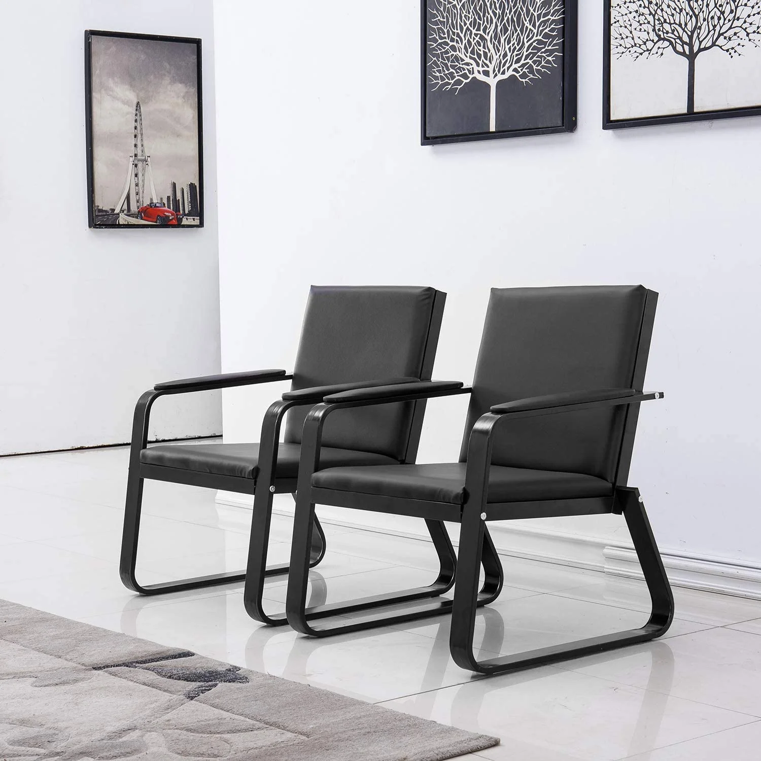 2Pcs Black PU Leather Office Reception Chair Waiting Room Visitor Guest Sofa Seat