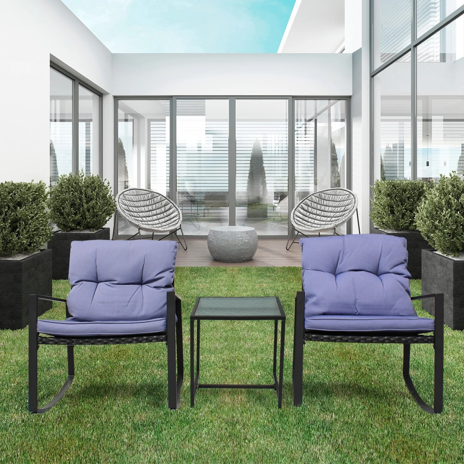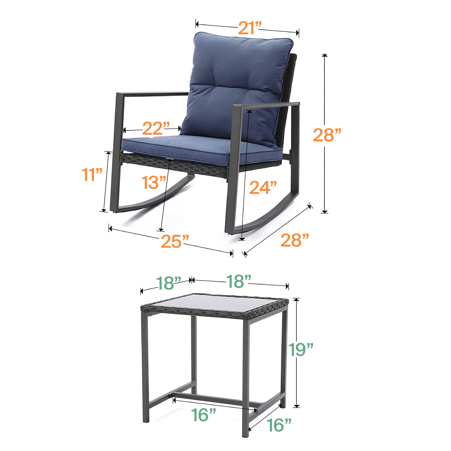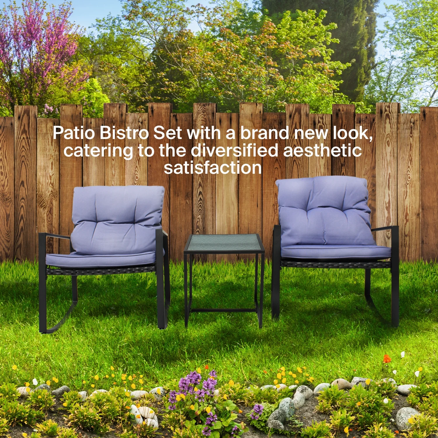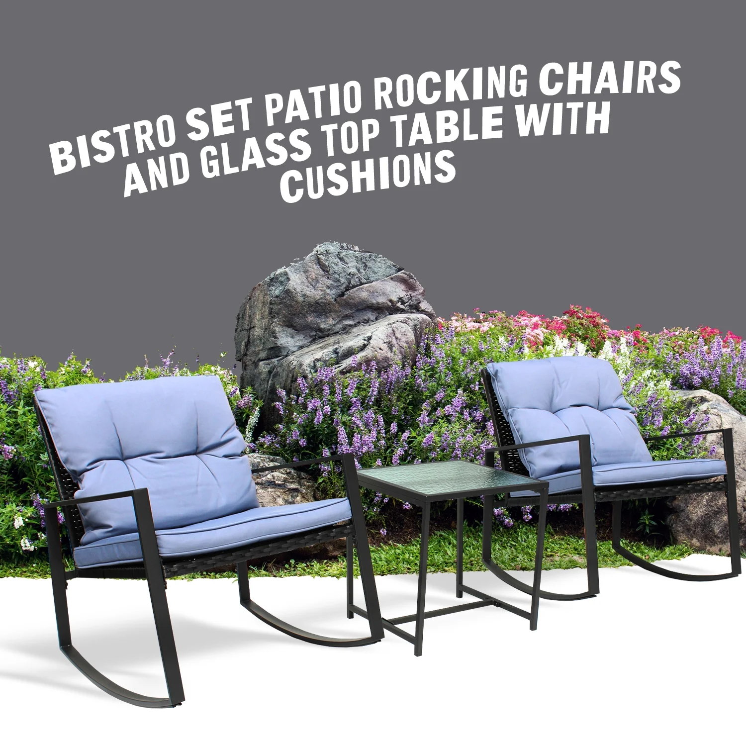 Patio 3-Piece Rocking Rocking Chair Set: Black Wicker Furniture-Two Chairs with Glass occasional Table