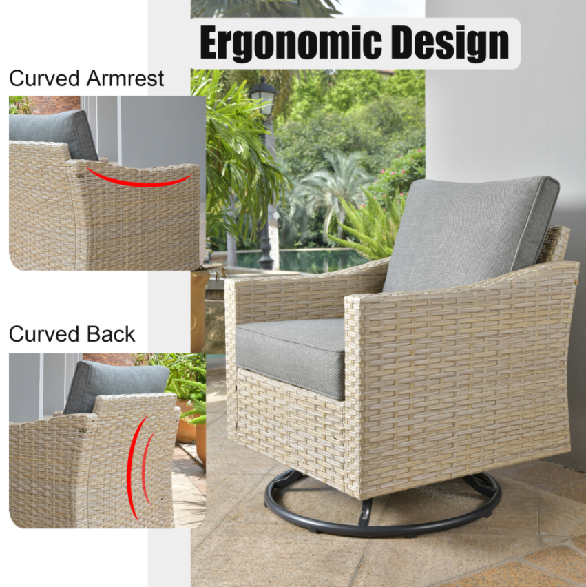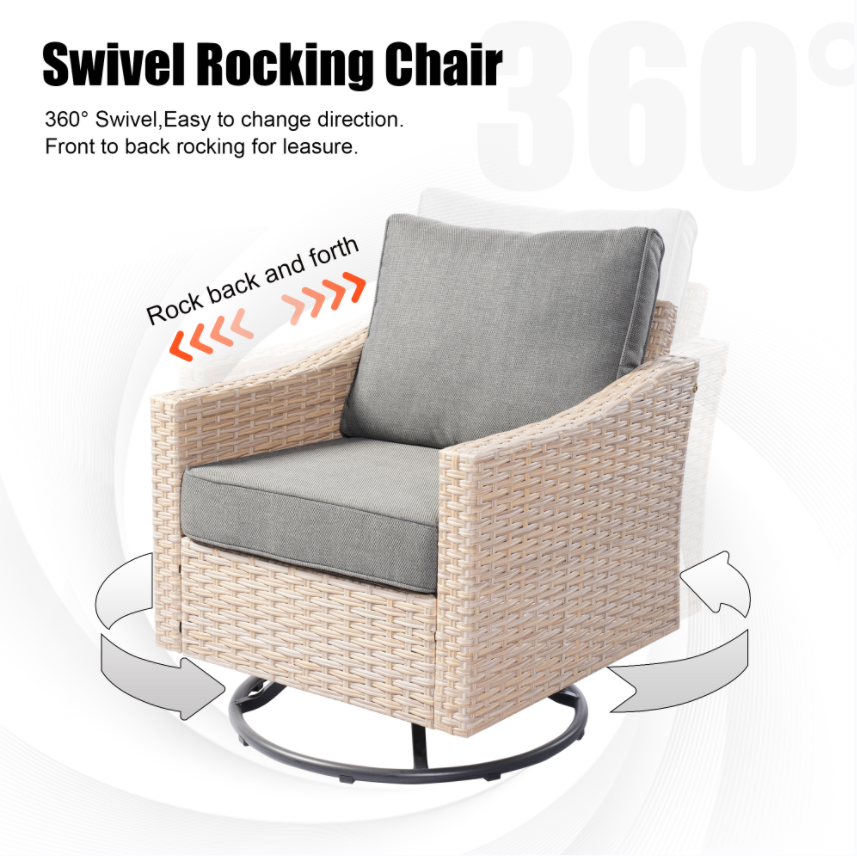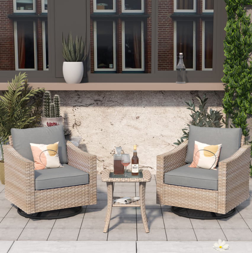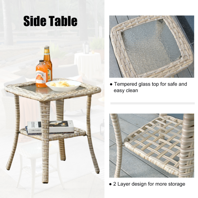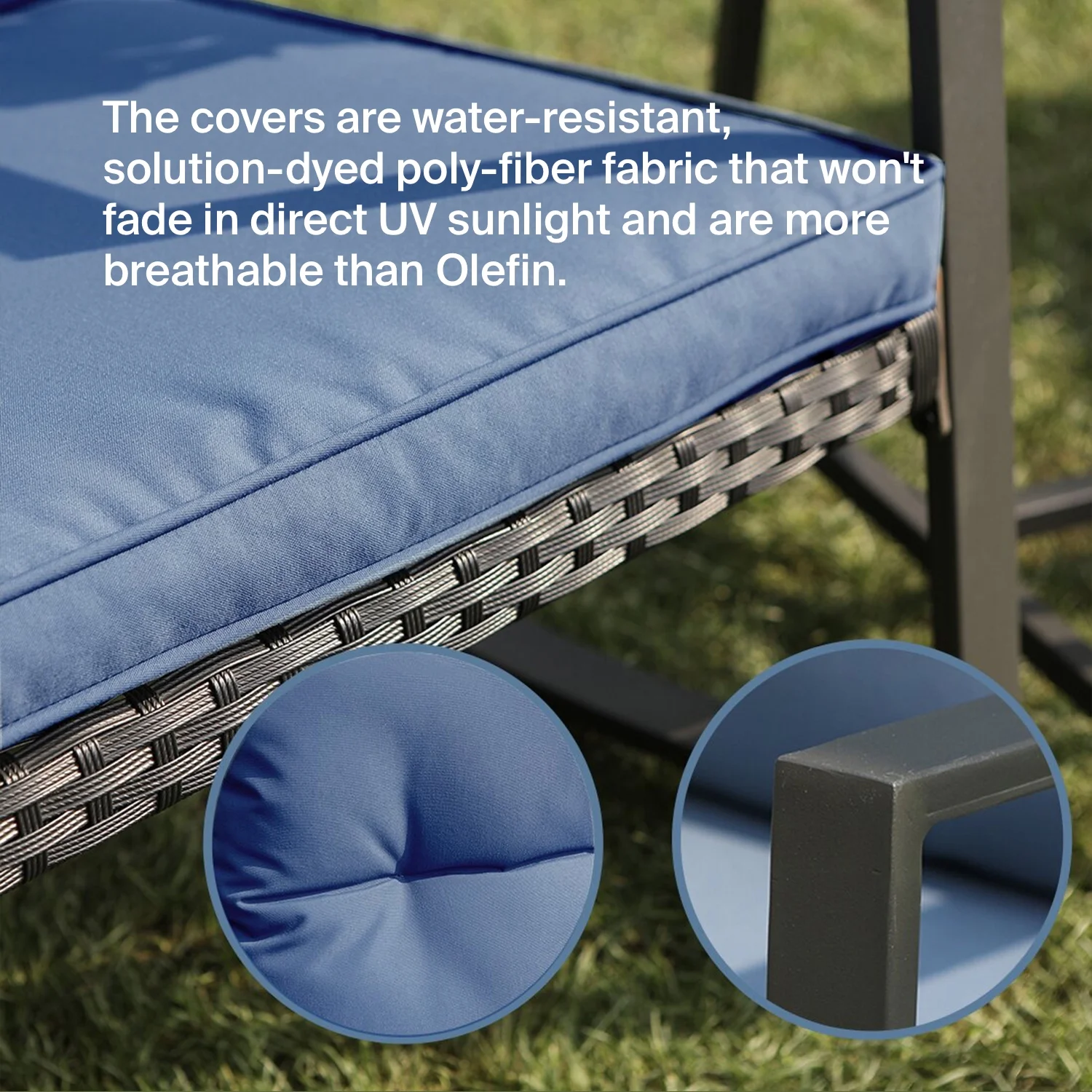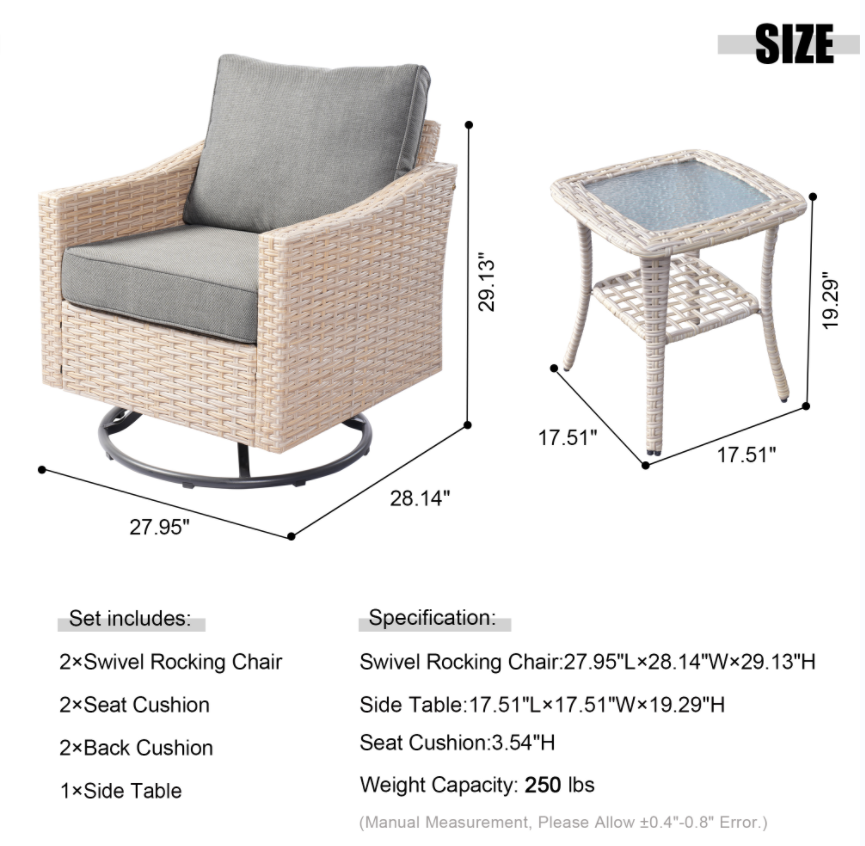 Patio 3-Piece Rocking Rocking Chair Set: Black Wicker Furniture-Two Chairs with Glass occasional Table
