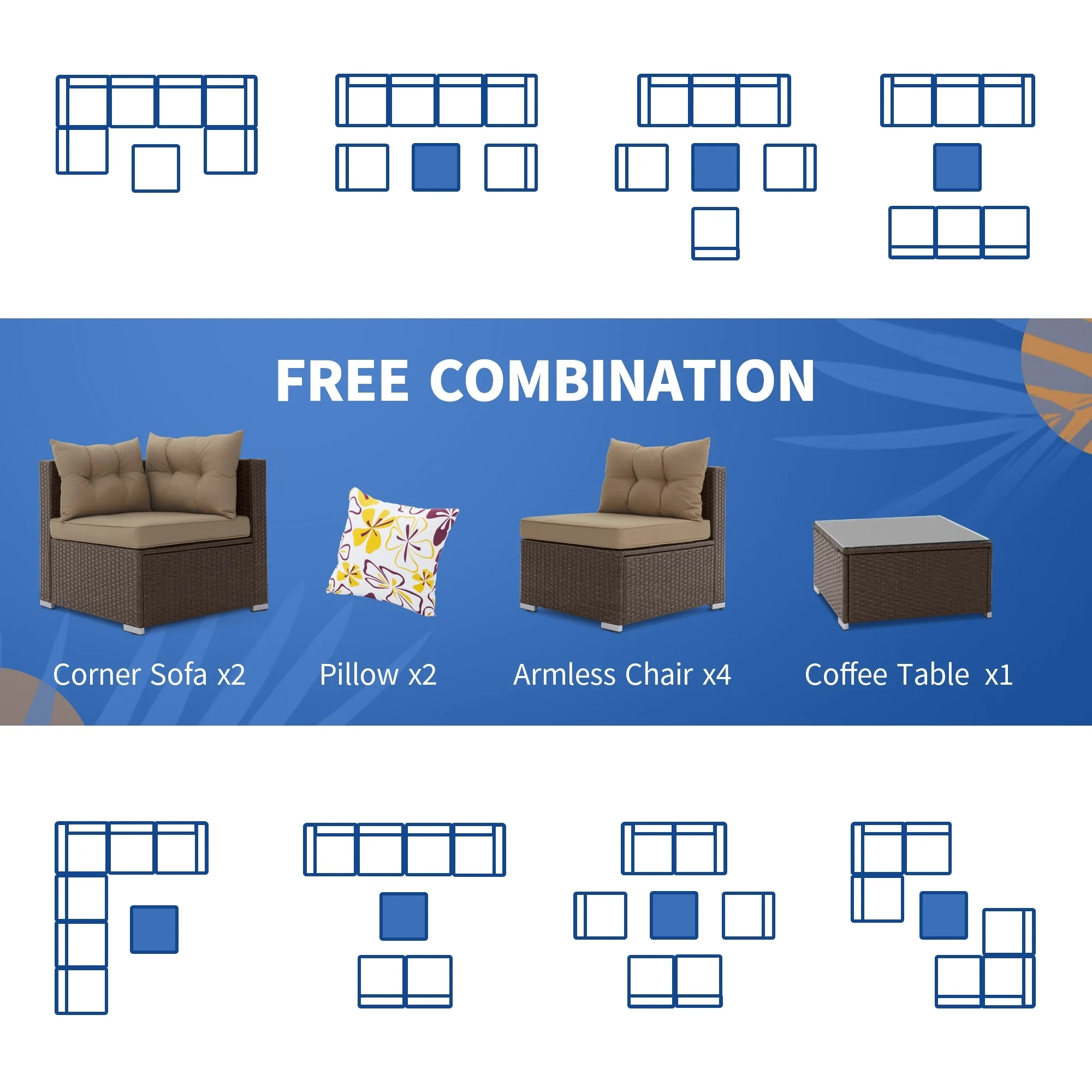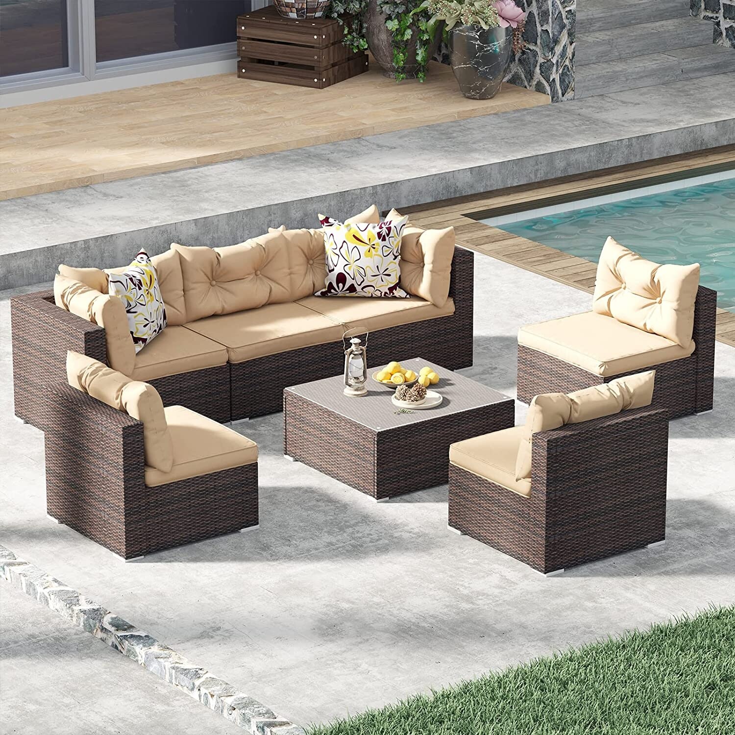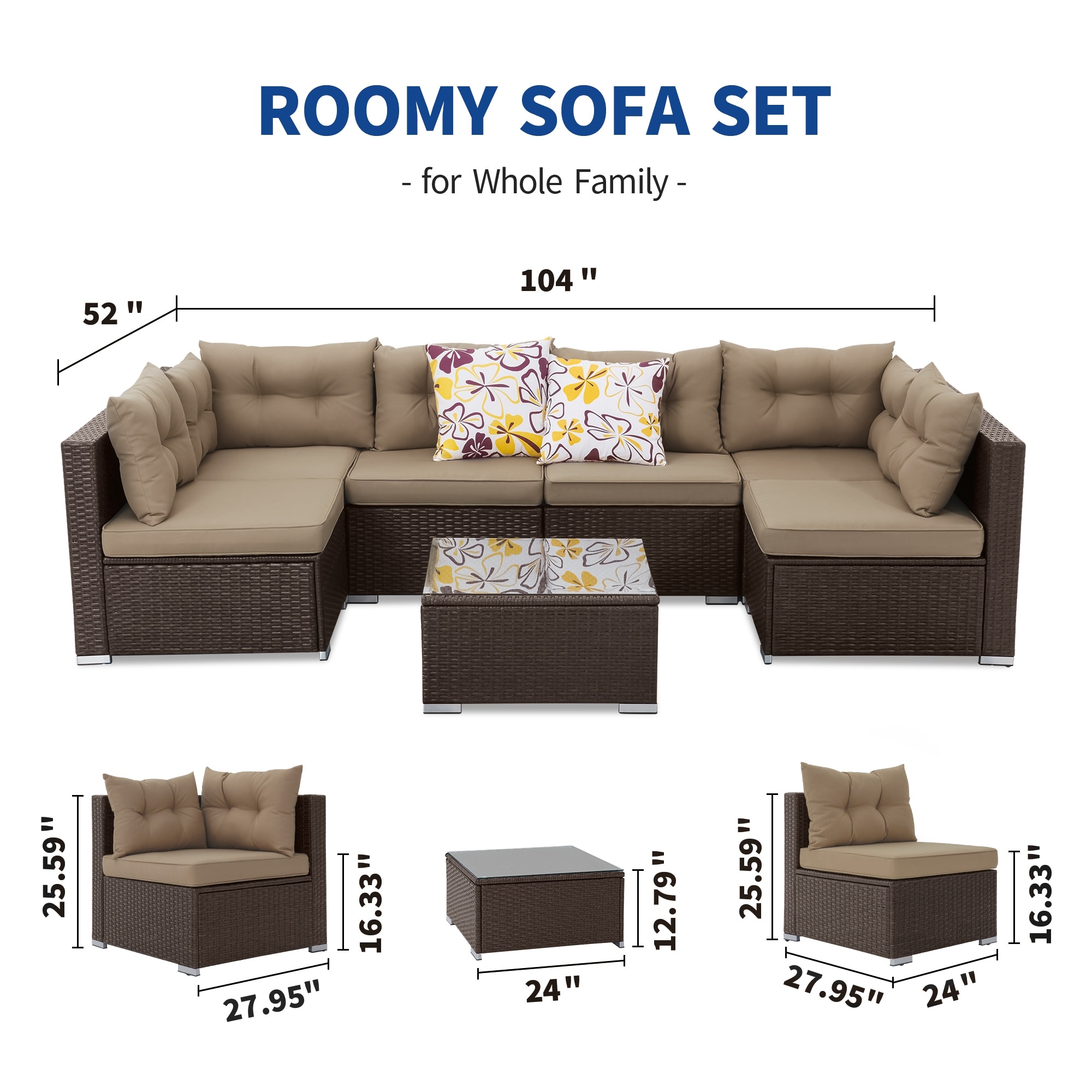 Mcferran's Inc Bavorov Wicker Rattan 7 Pieces Patio Furniture Set Brown