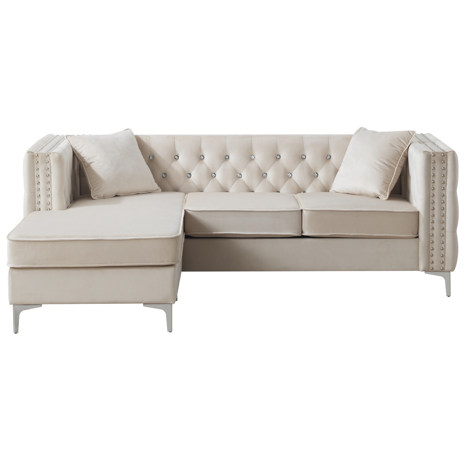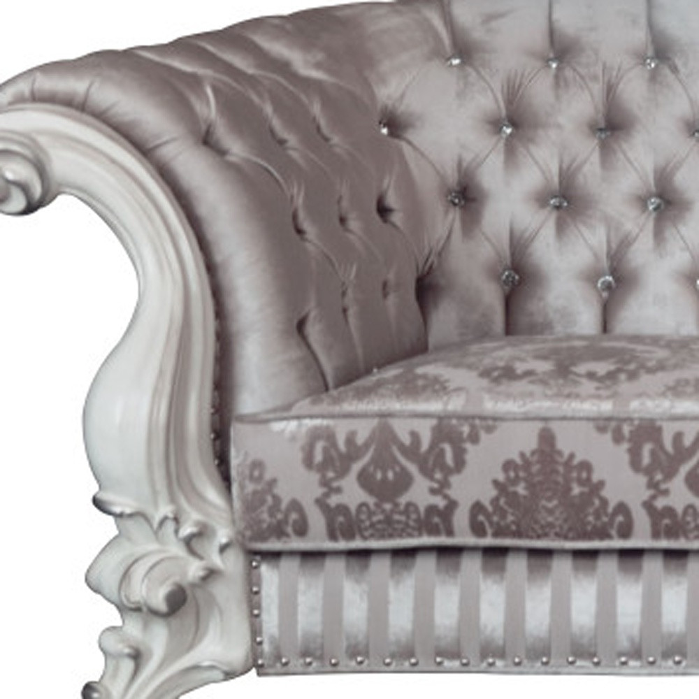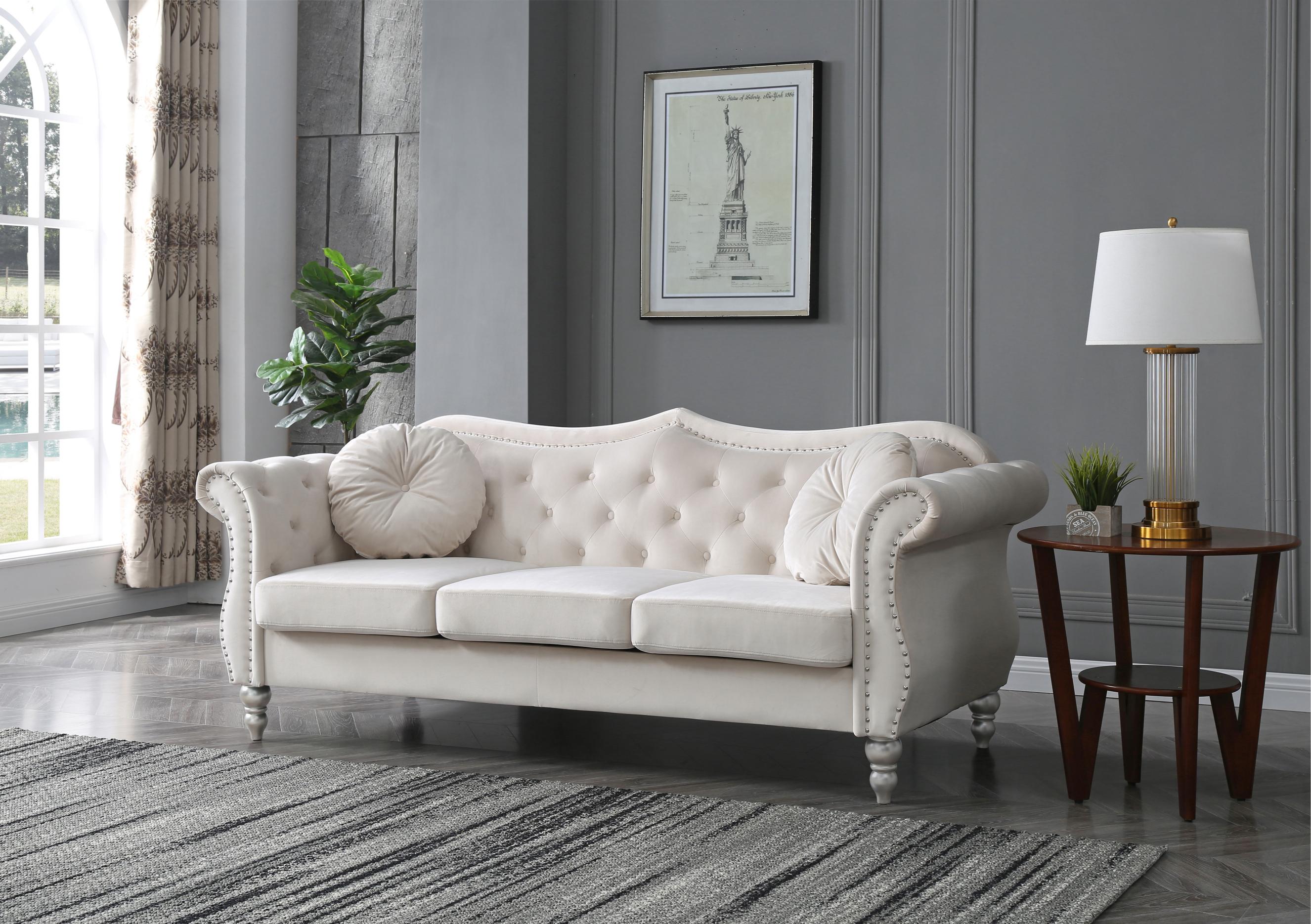 HomeRoots 491349 99 in. Ivory Velvet & Bone Sofa with Seven Toss Pillows