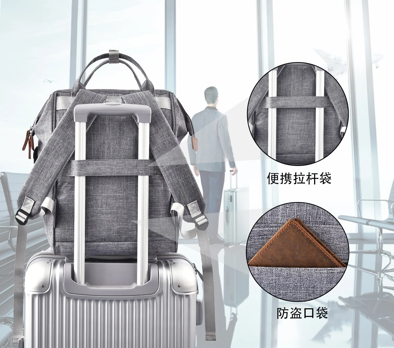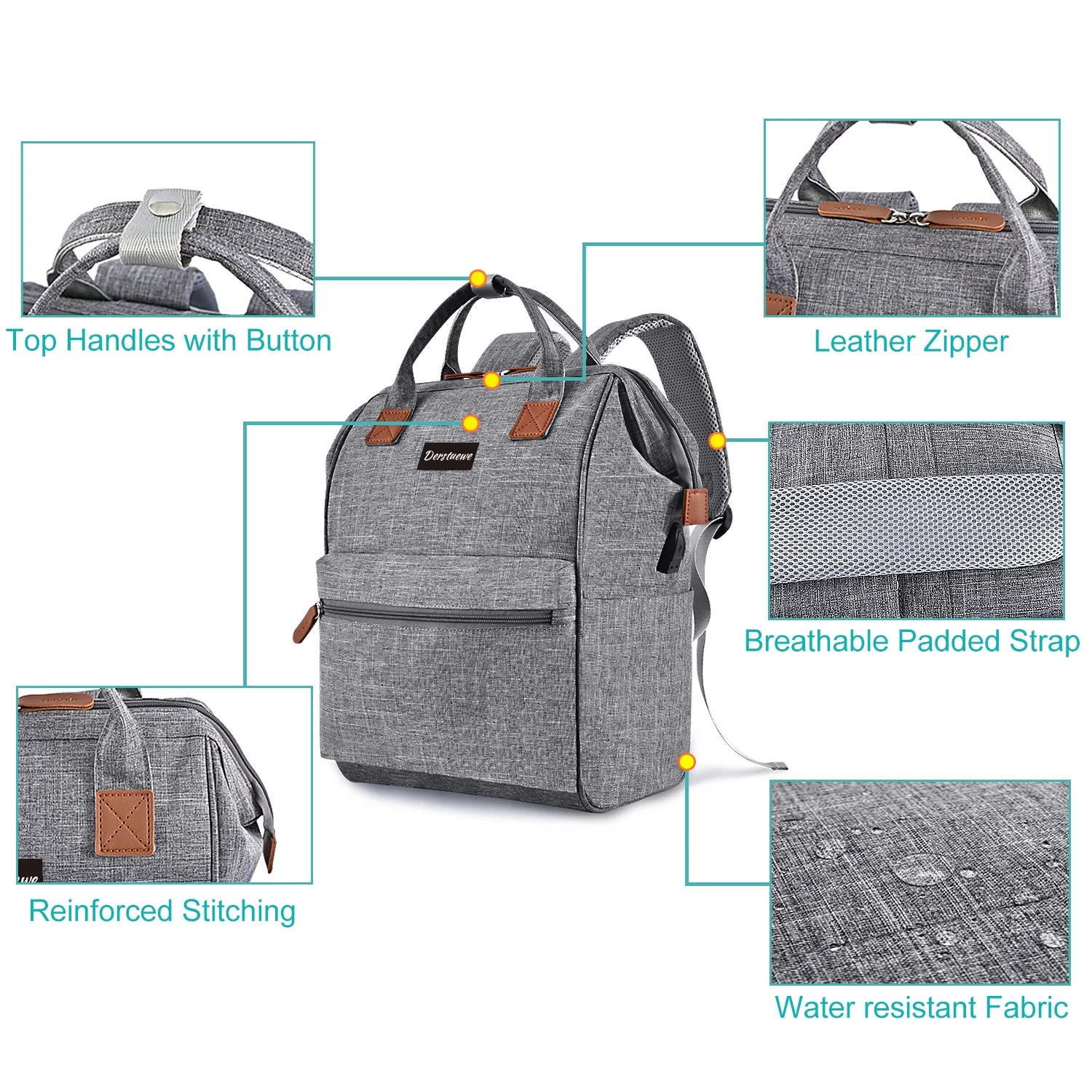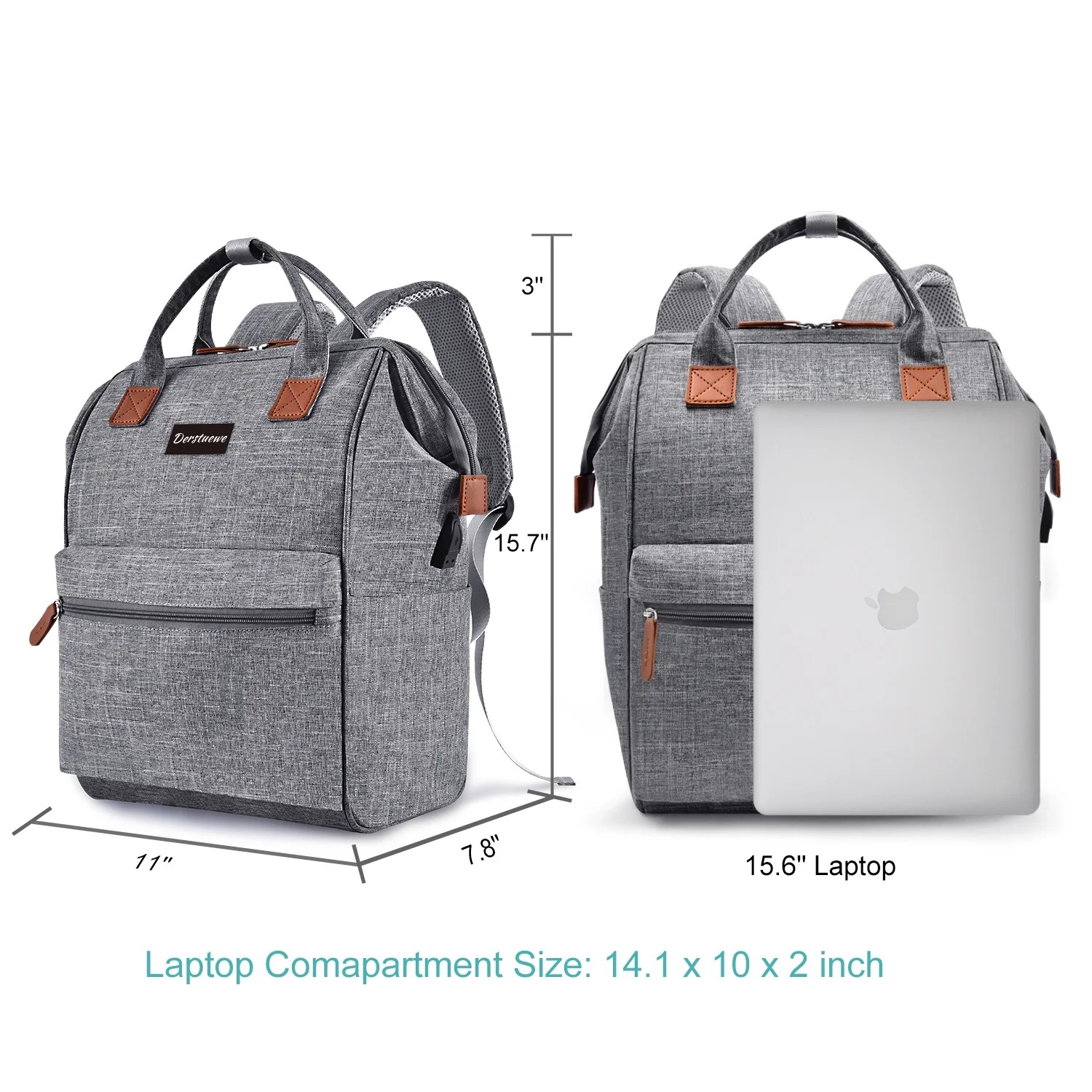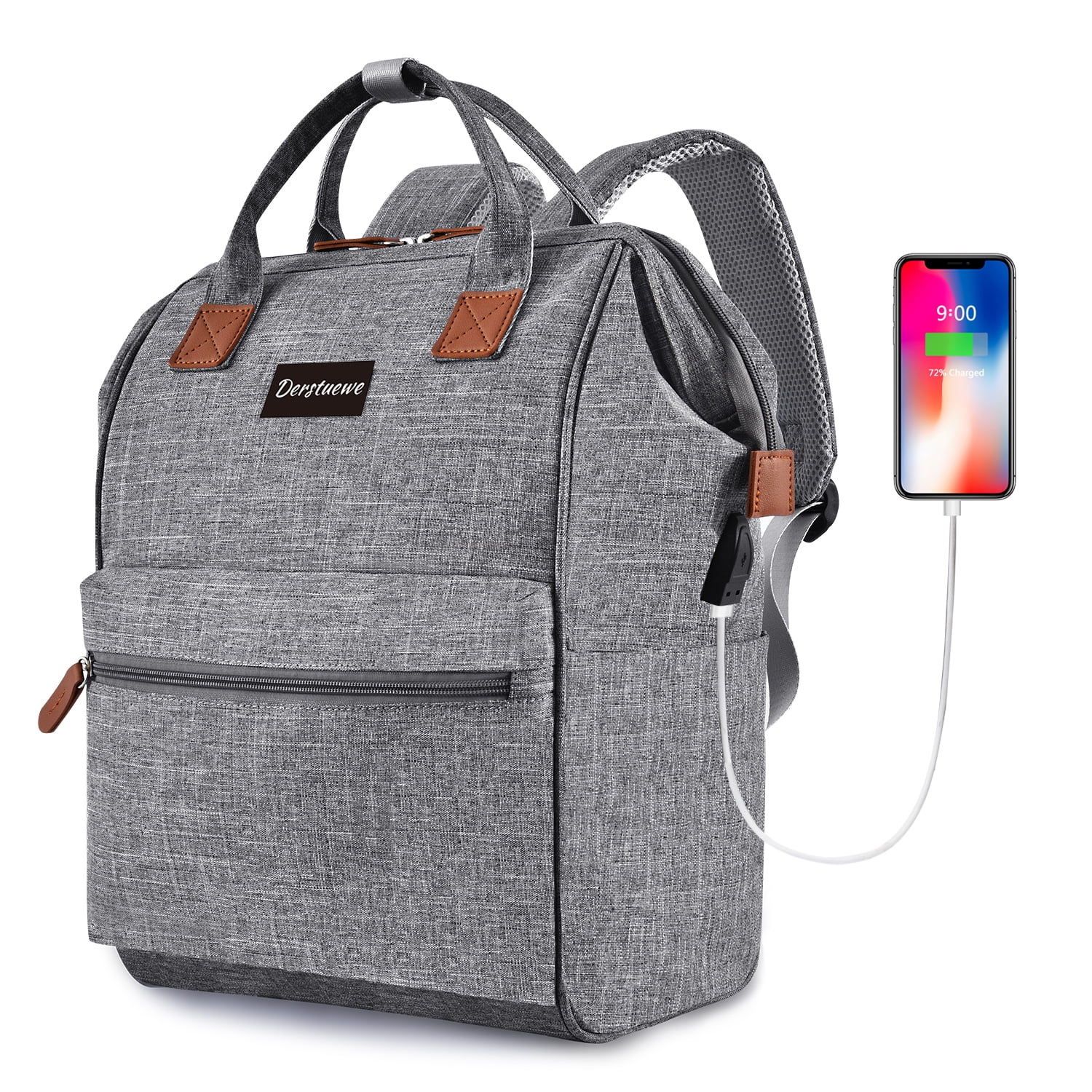 Derstuewe Unisex Classic Backpack, Casual Daypack with USB Charging Port for Women & Men, Grey