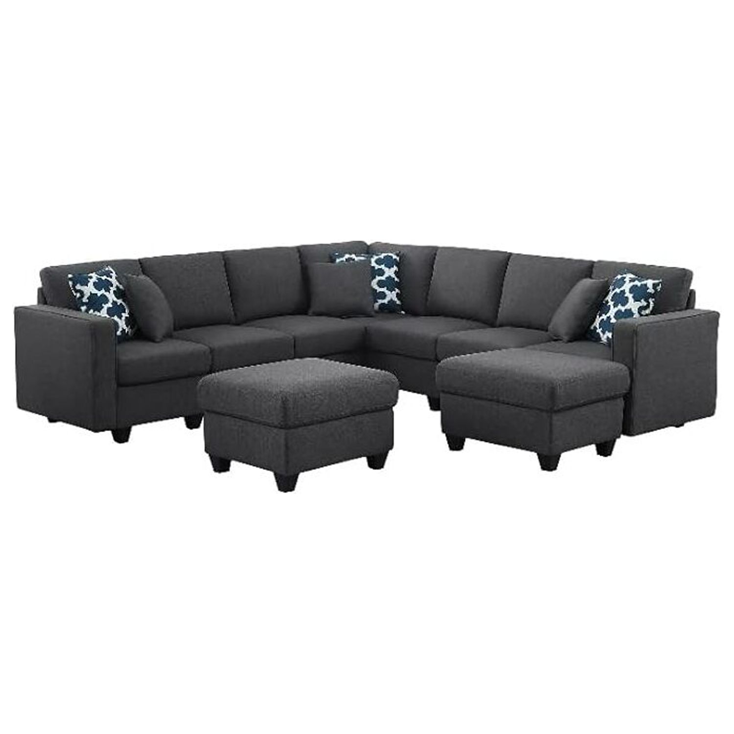 HomeStock Mediterranean Mastery Fabric Reversible Sectional Modern Sofa With Two Ottoman-Dark Gray