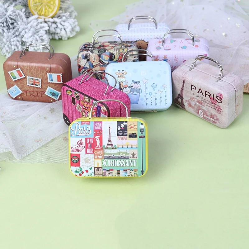 JETTINGBUY Fashion Metal Mini Suitcase for Dolls Miniature Toys Trunk Dollhouse Decoration