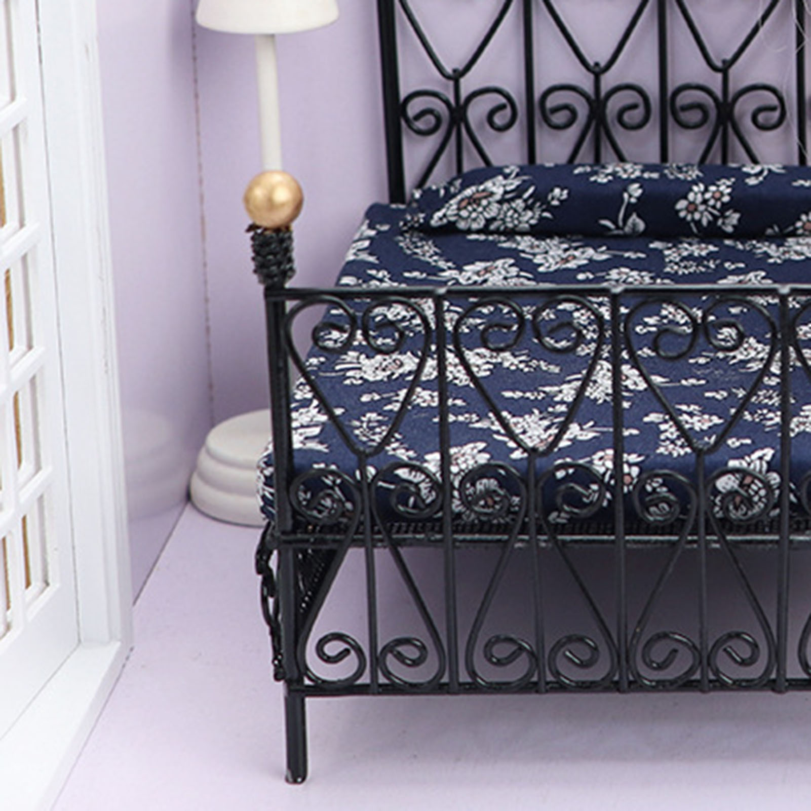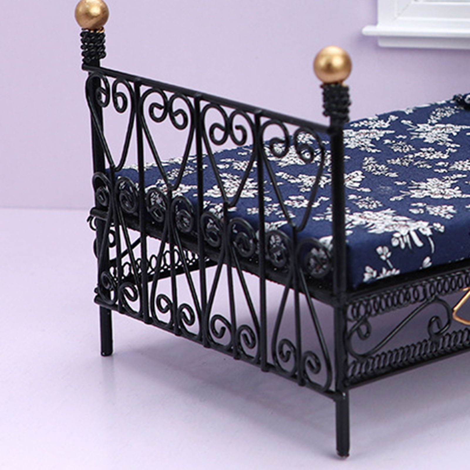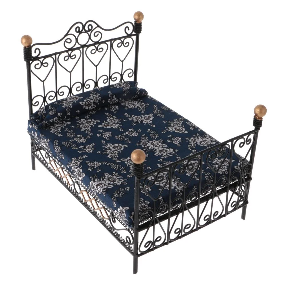 1:12 Dollhouse Miniature Metal European Retro Double bed and bedroom Furniture Dolls House Accessories Children Funny Pretend toys Black