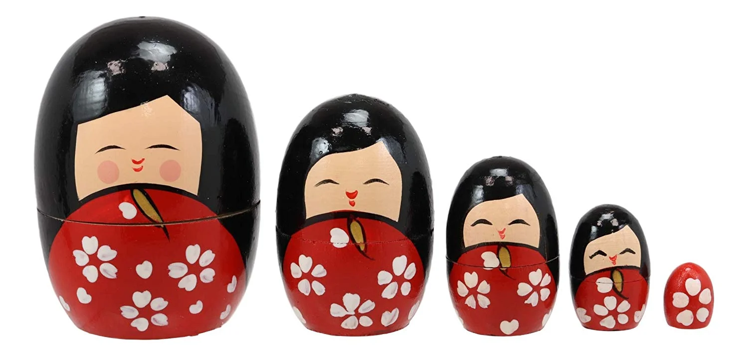 Japanese Kokeshi Girl Wooden Stacking Matryoshka Nesting Dolls 5 Piece Set Toy