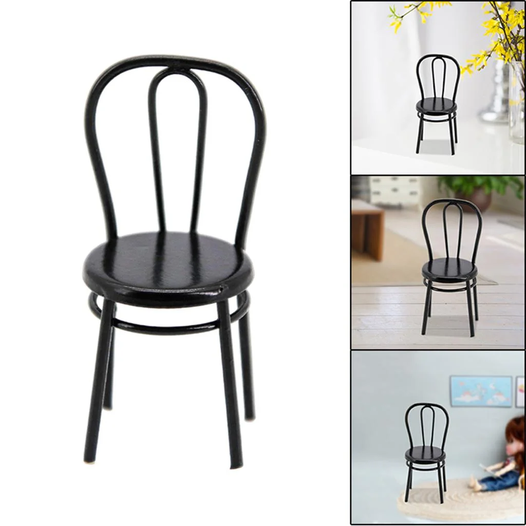 1:24 Scale Metal Craft Dollhouse Miniature Dining Scene Furniture Seat - Black