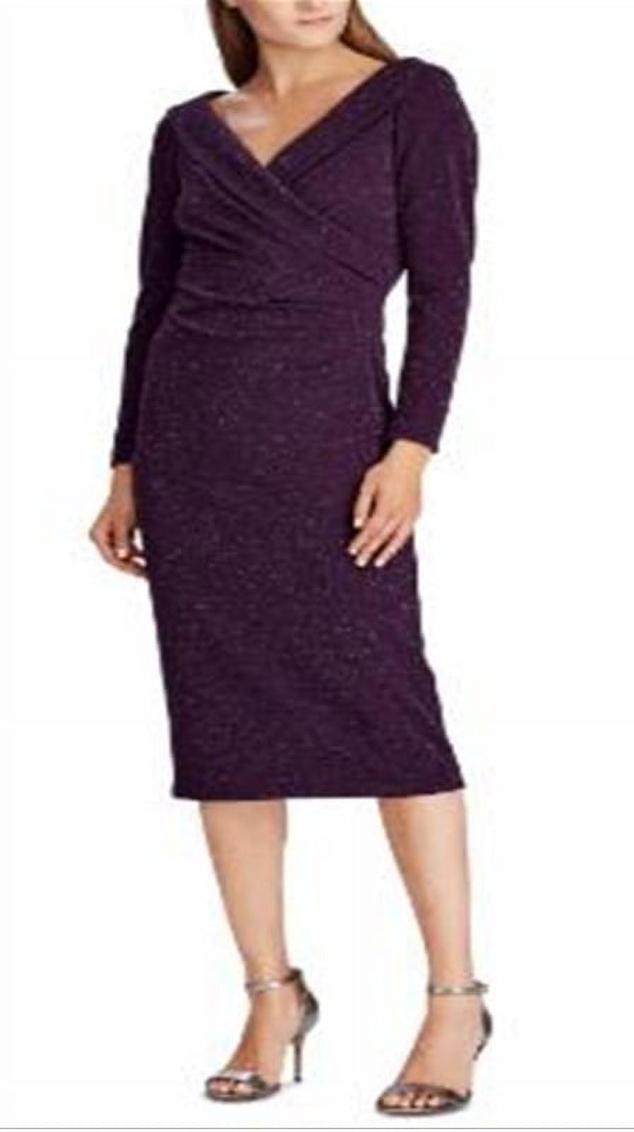 Ralph Lauren Women's Special Occasion Metallic Surplice Dress Purple Size 14 Petite