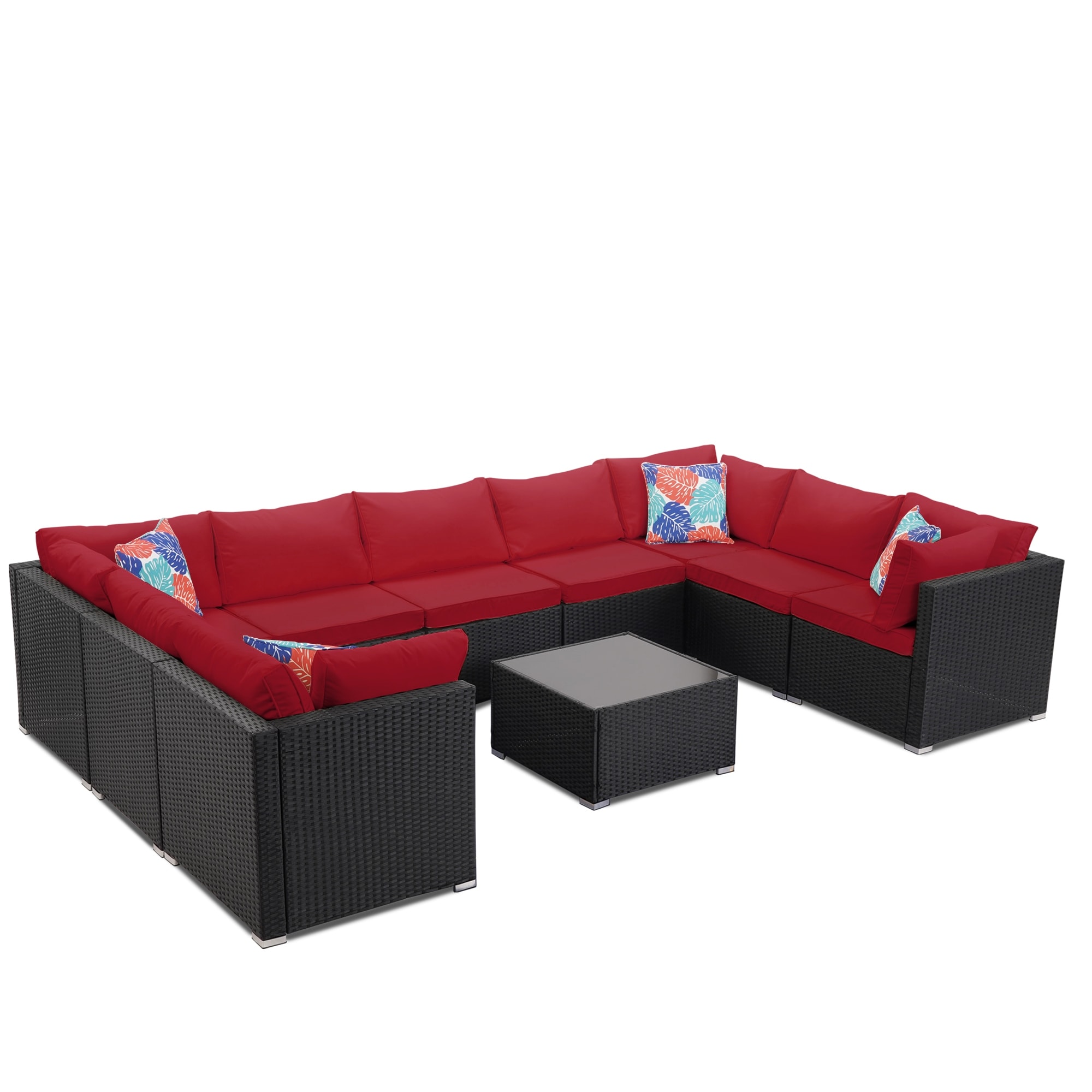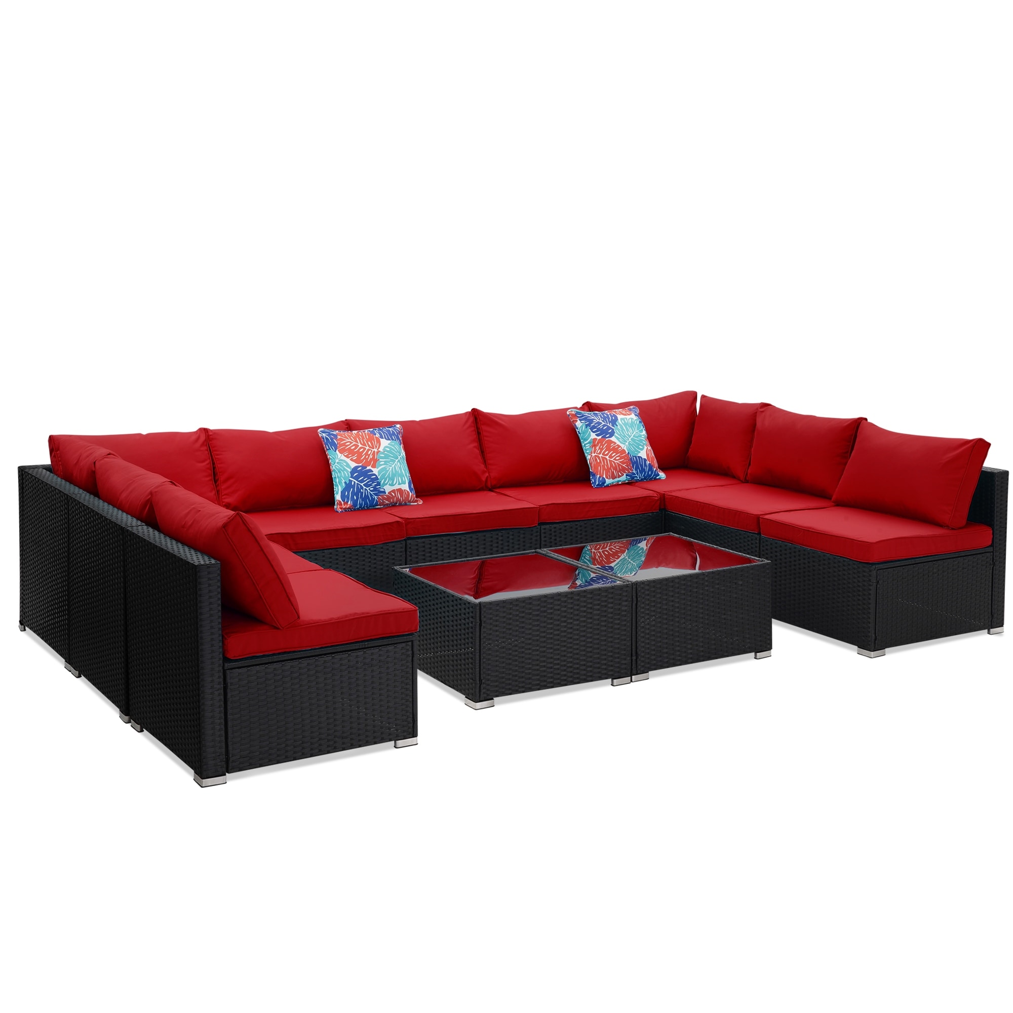 Modern Contemporary Urban Design Outdoor Patio Balcony Ten PCS Sectional Sofa Set, Orange, Rattan