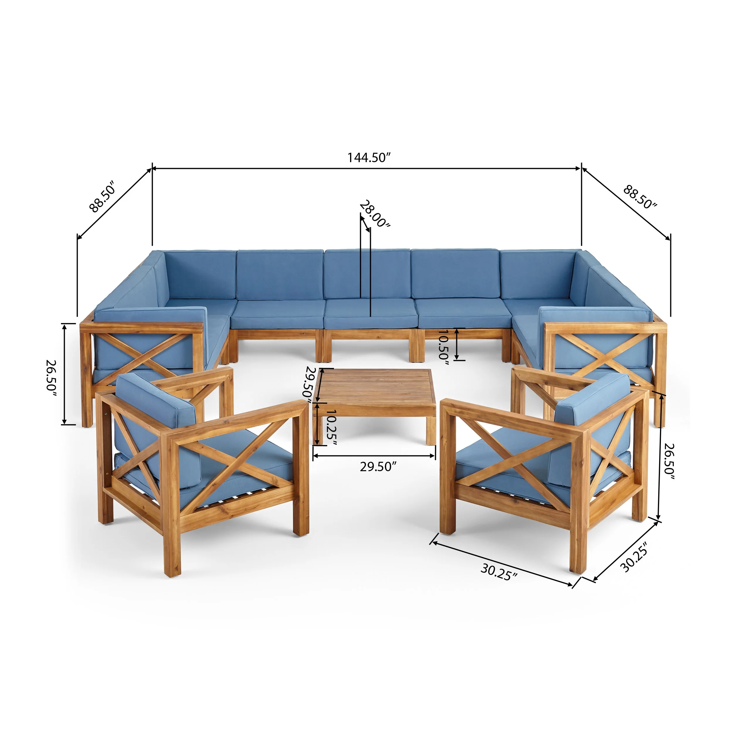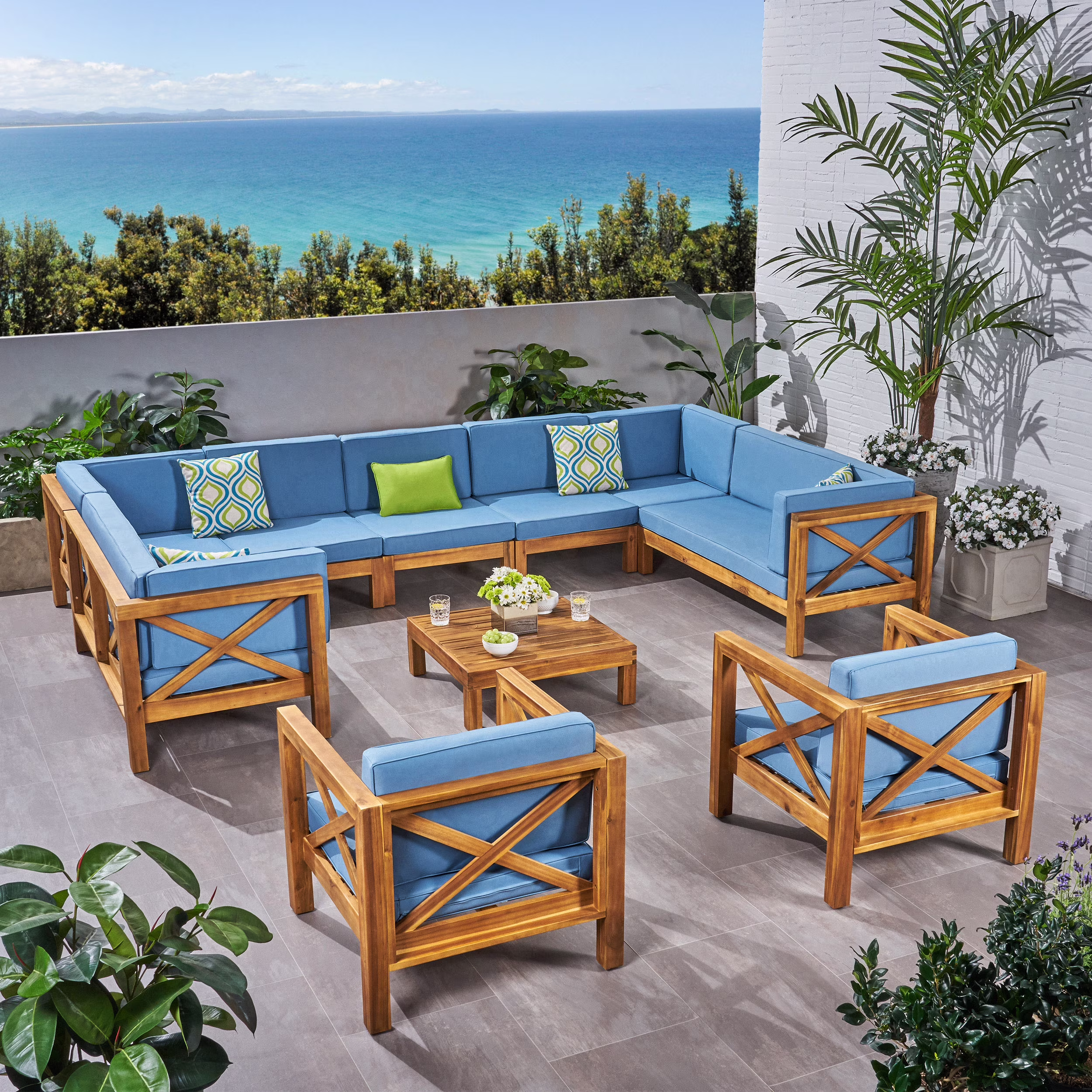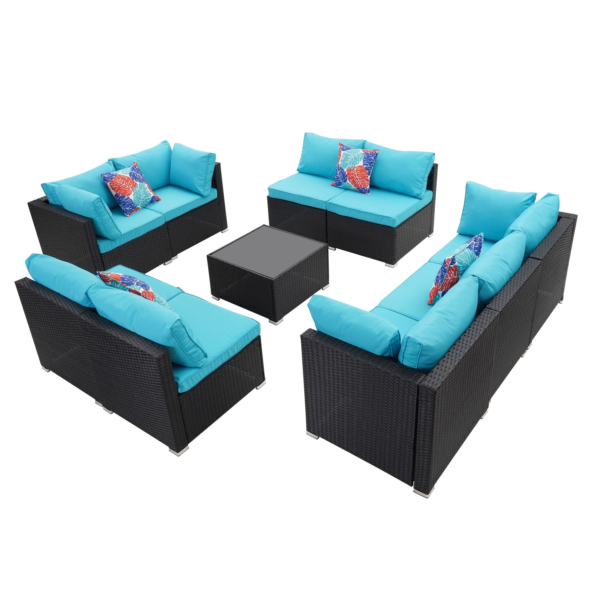 10-Piece Blue and Brown Hand Crafted Outdoor Patio Sectional Sofa with Club Chair Set 58.25"