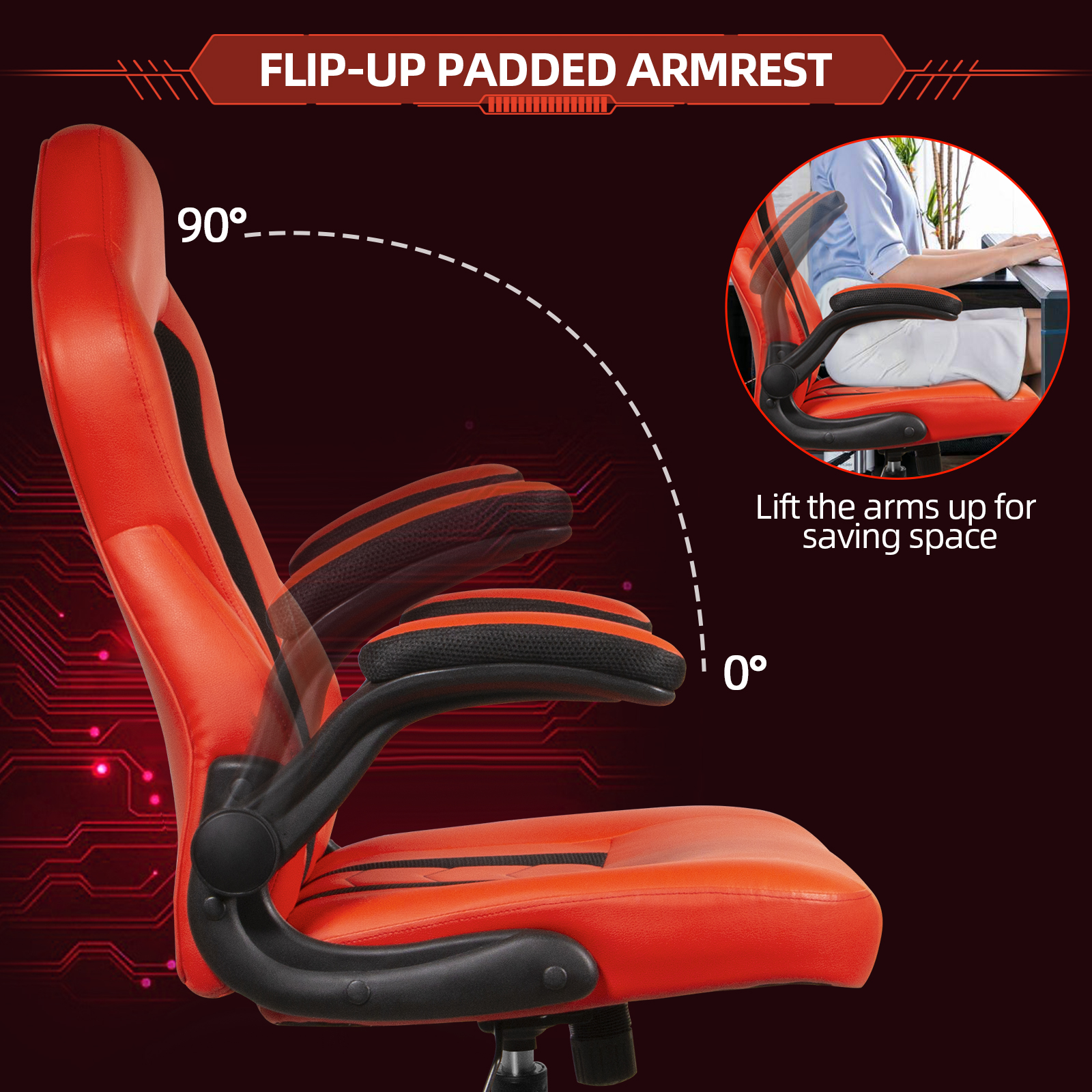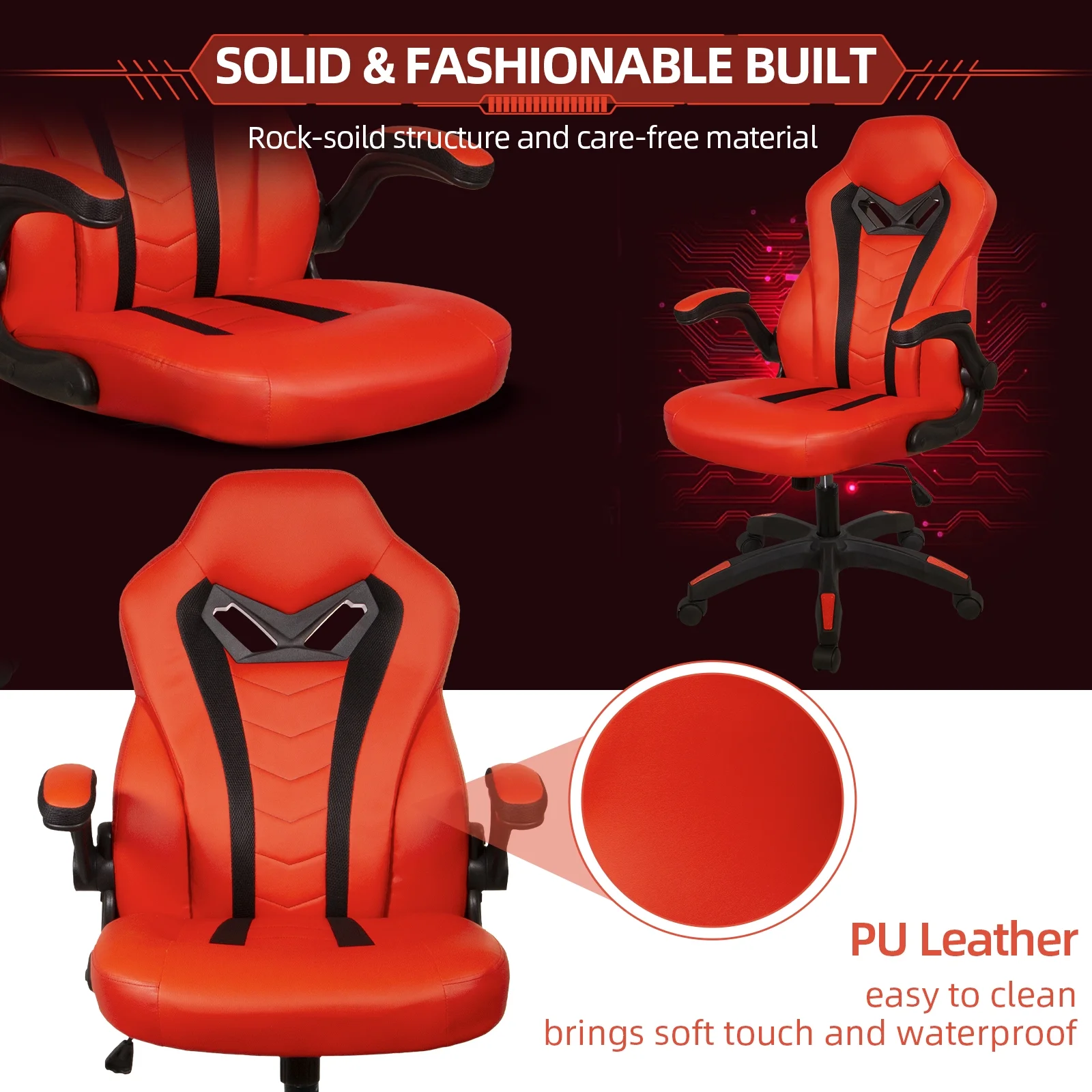 SeekFancy Ergonomic Gaming Chair Video Game Chairs PU Leather Computer Office Desk Chair, Red