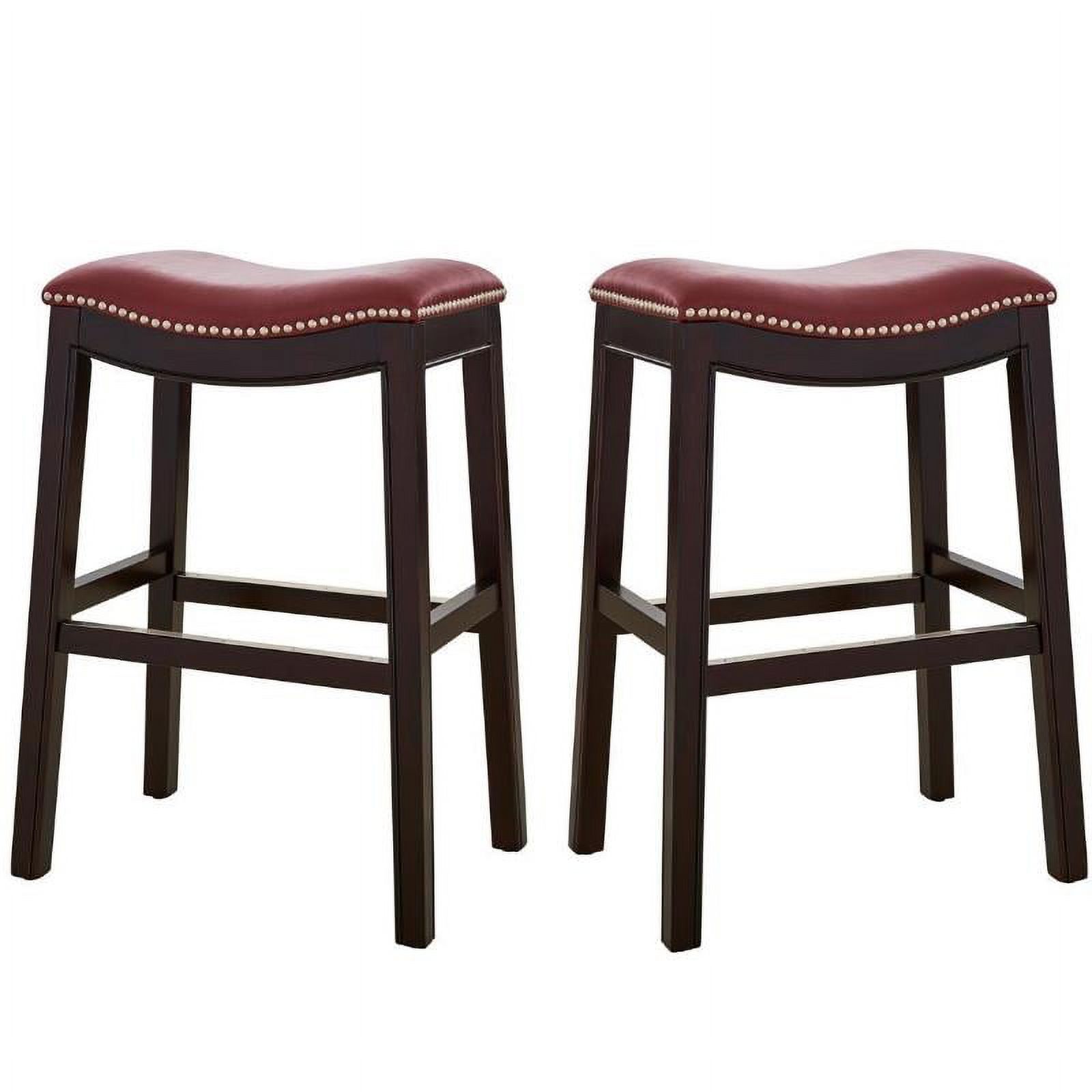 Home Square 2 Piece Saddle Faux Leather Counter Height Barstool Set in Red