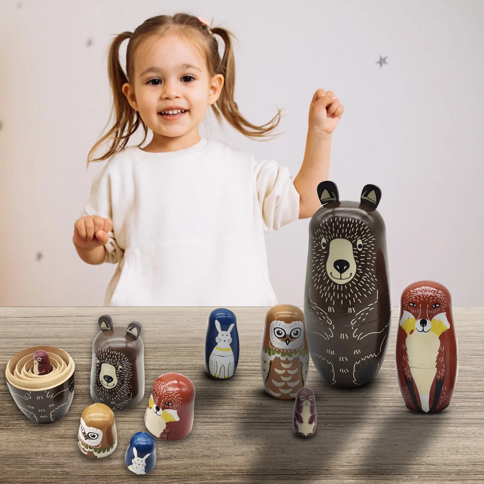 Plutyo Russian Matryoshka For Children, Pack Of 5 Animal Dogs Matryoshka Wooden Toy