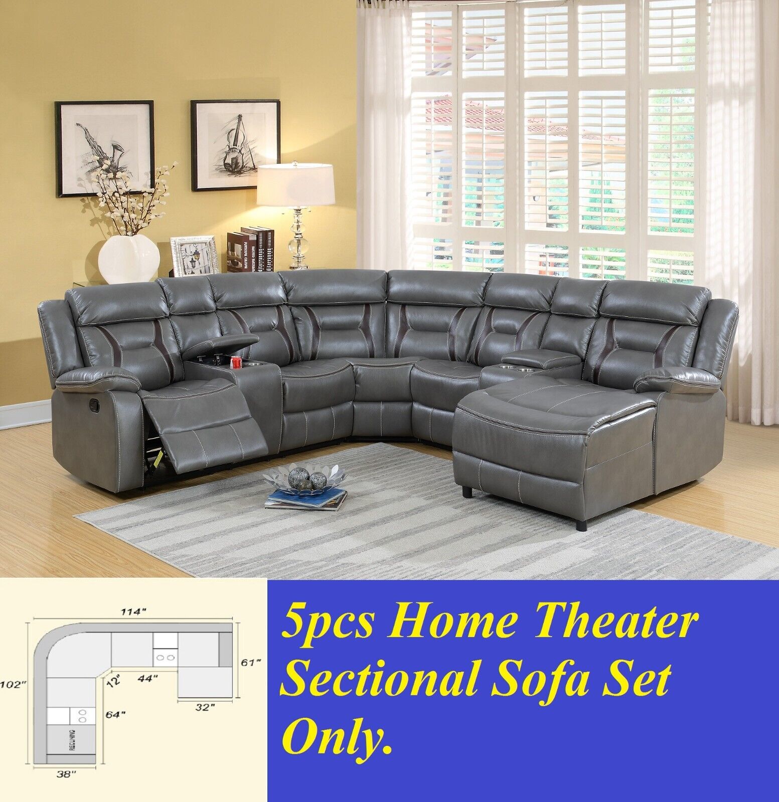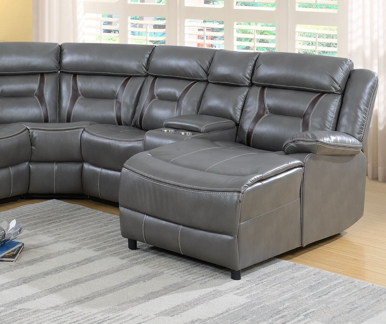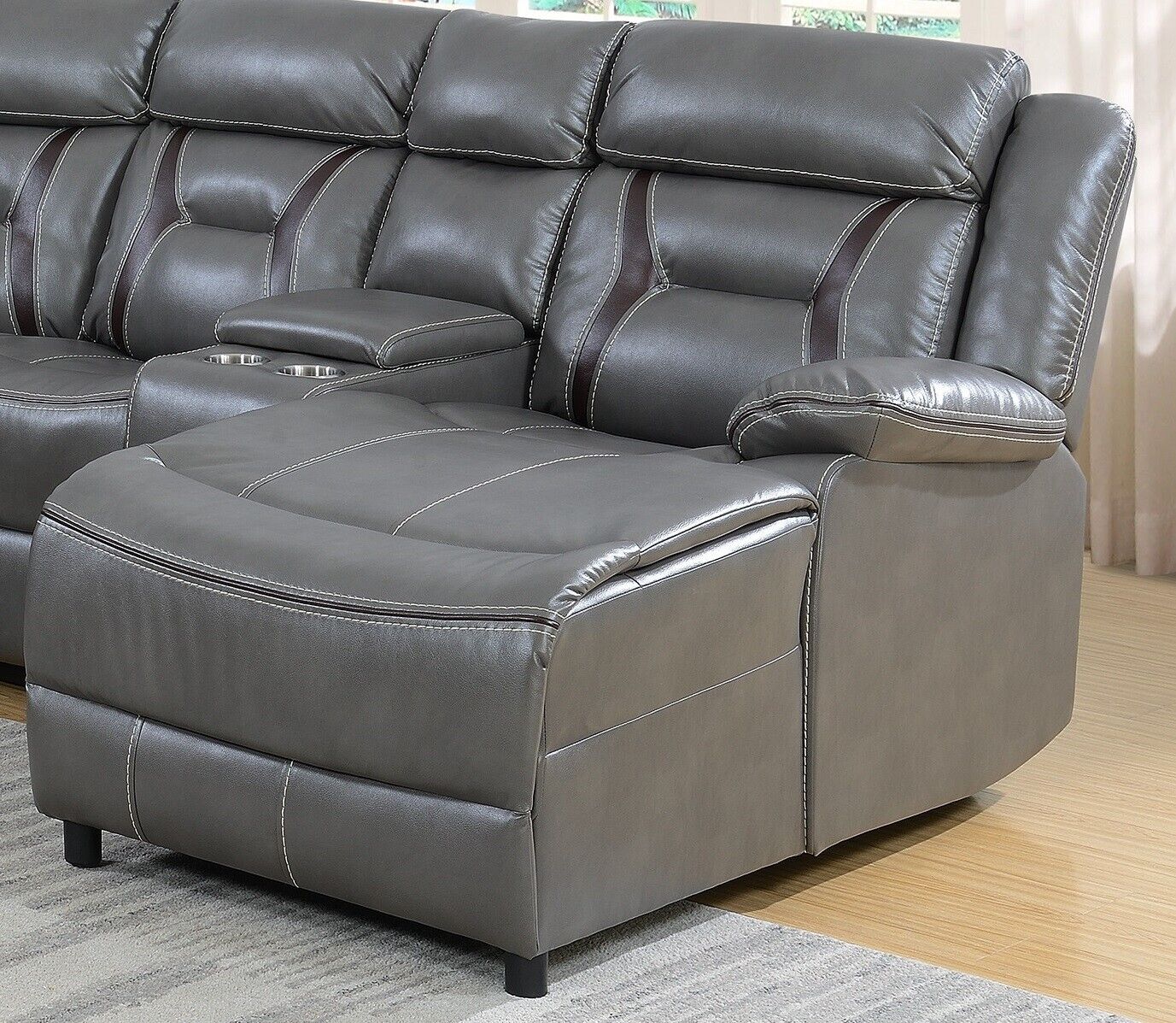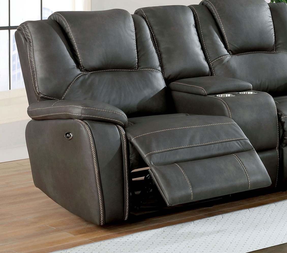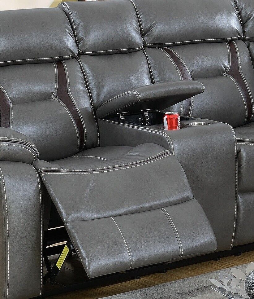 Contemporary Living Room Gel Leatherette Gray Sectional Sofa Reclining Couch Console Cup holder Chaise 5pc Sectional Set