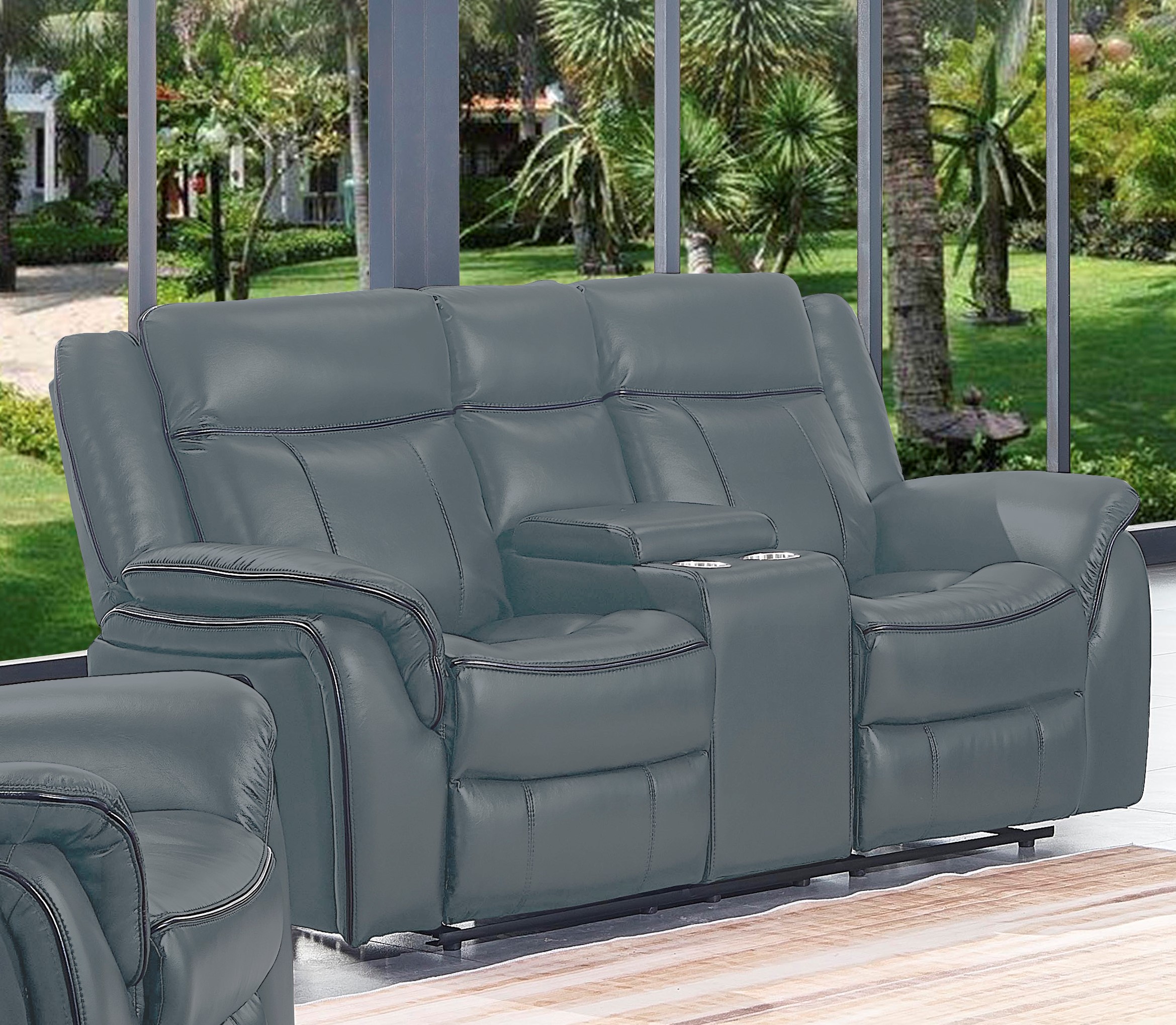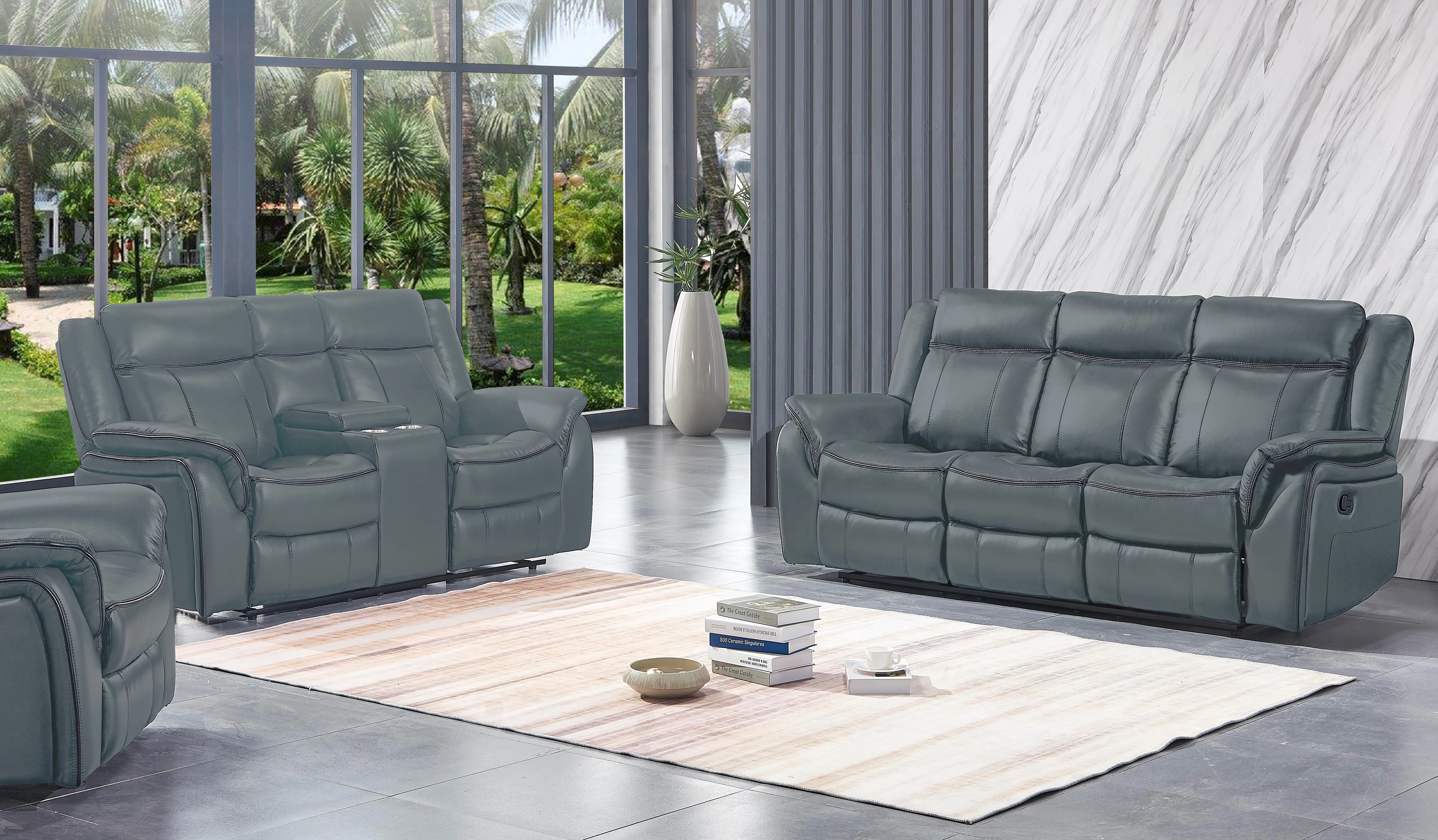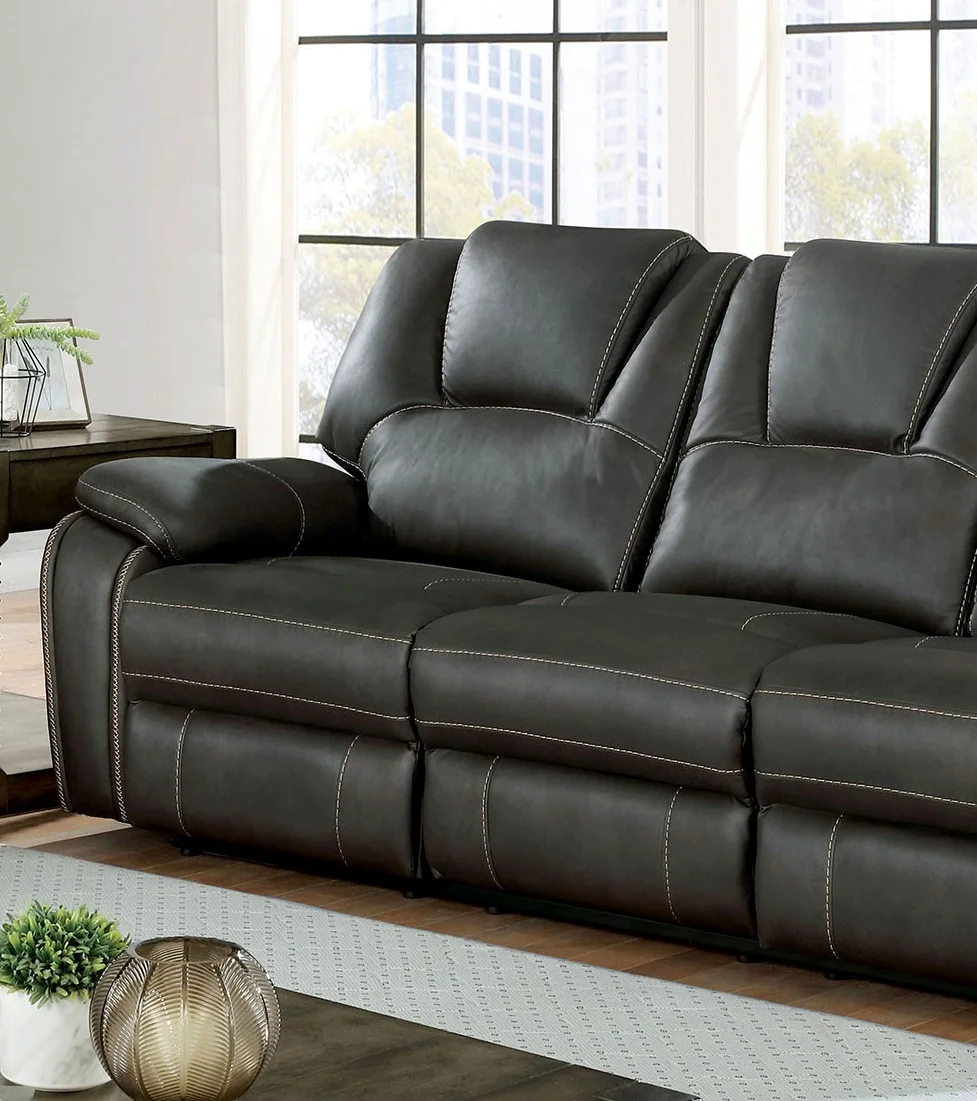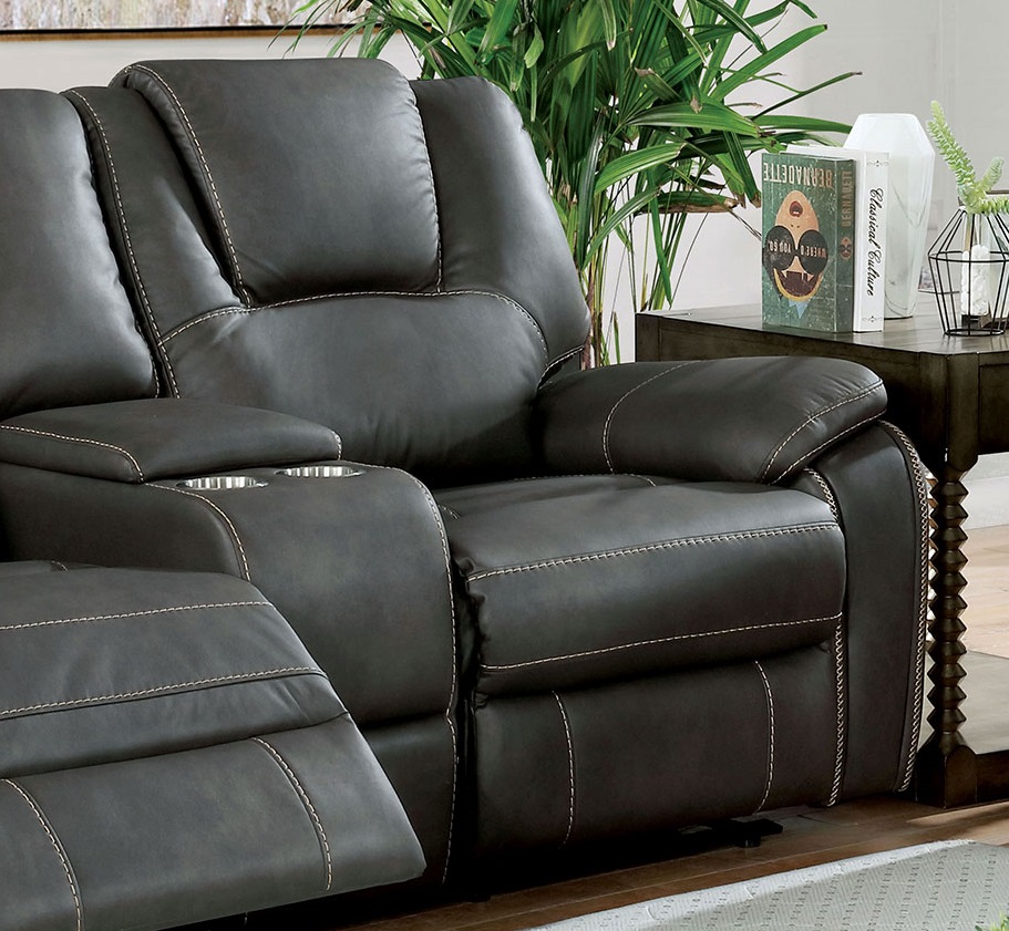 Power Recliners 3pc Sofa Set Motion Sofa Loveseat Chair Console Gray Transitional Leatherette Solid wood Living Room Furniture