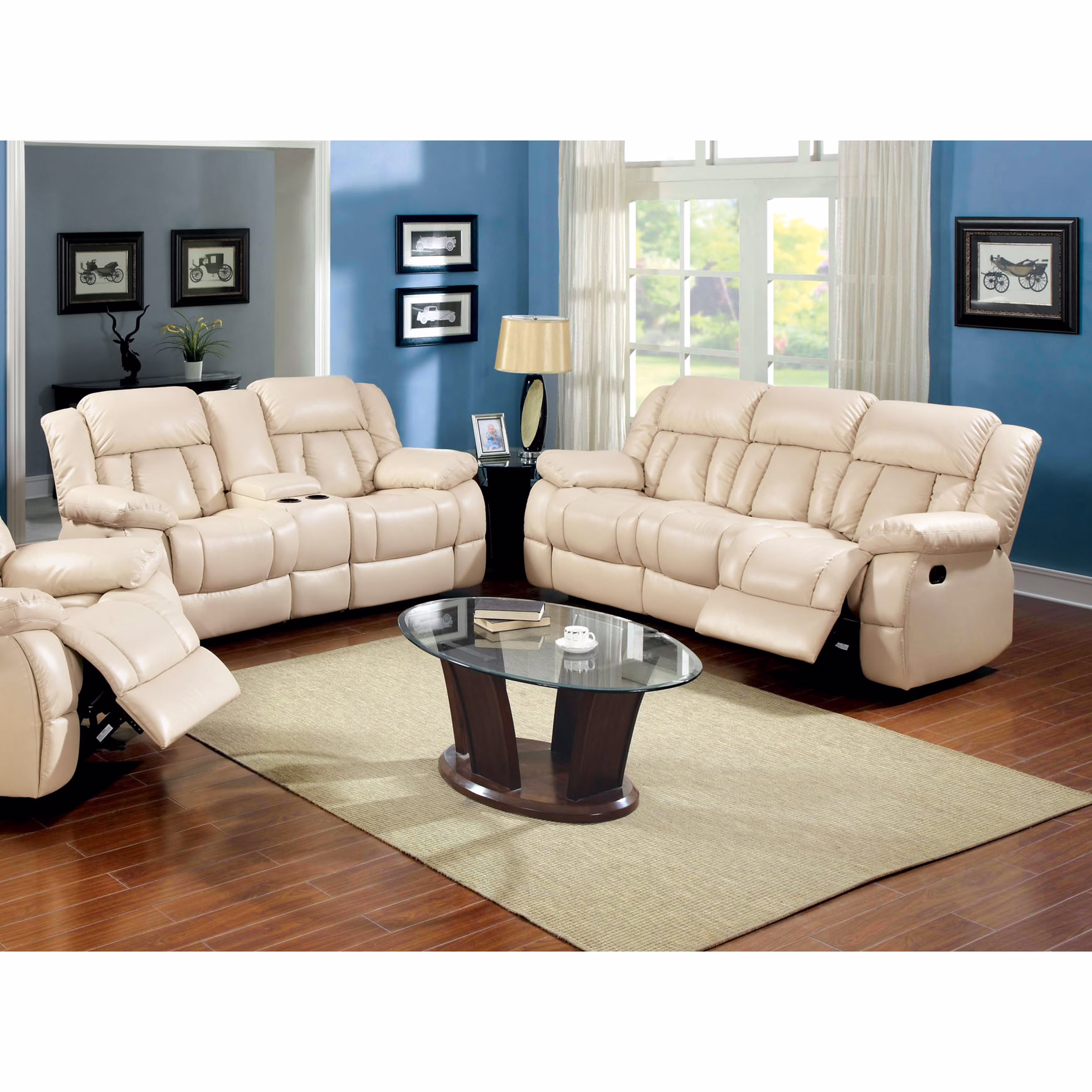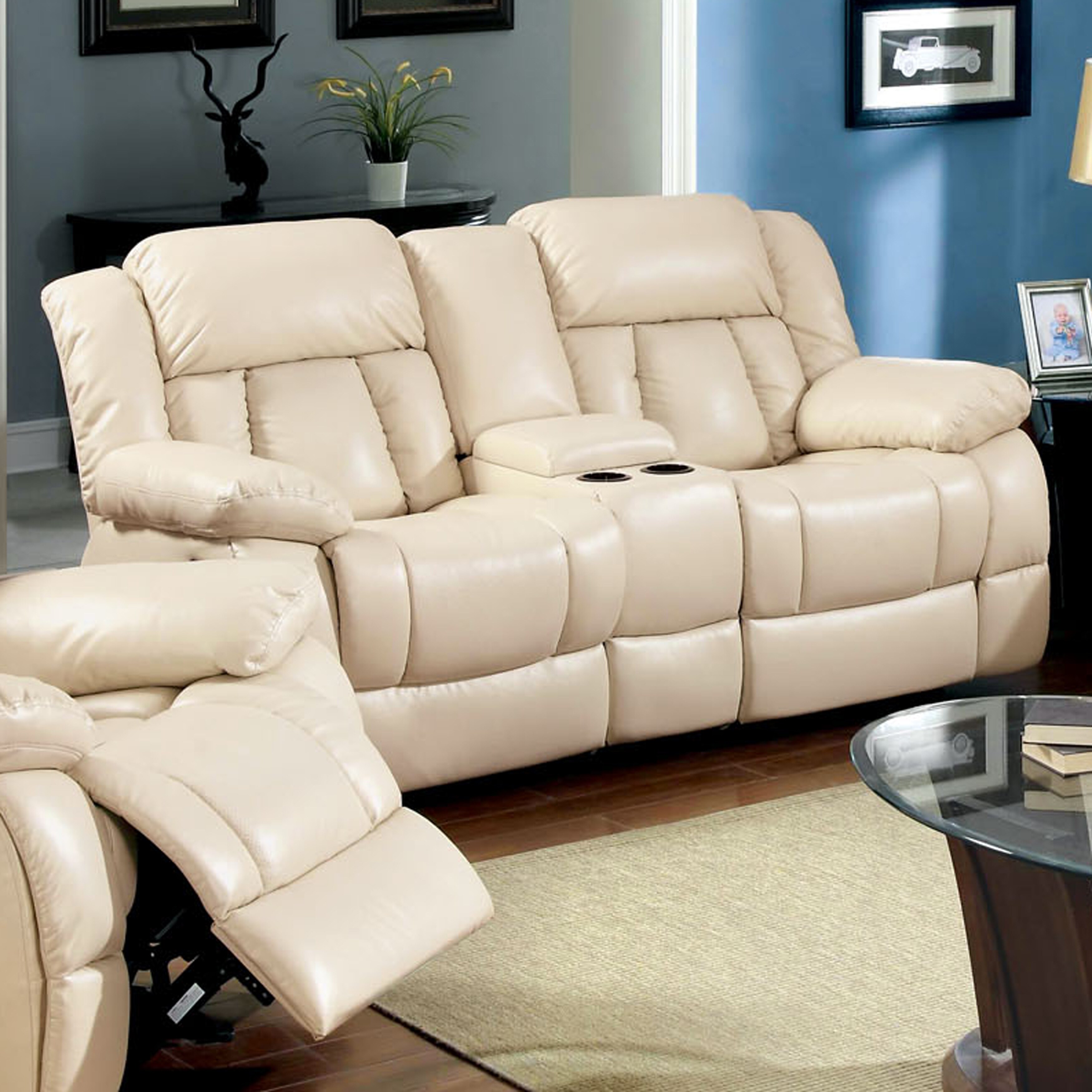 Furniture of America Tumi Transitional Ivory Bonded Leather 2-Piece Recliner Sofa Set by