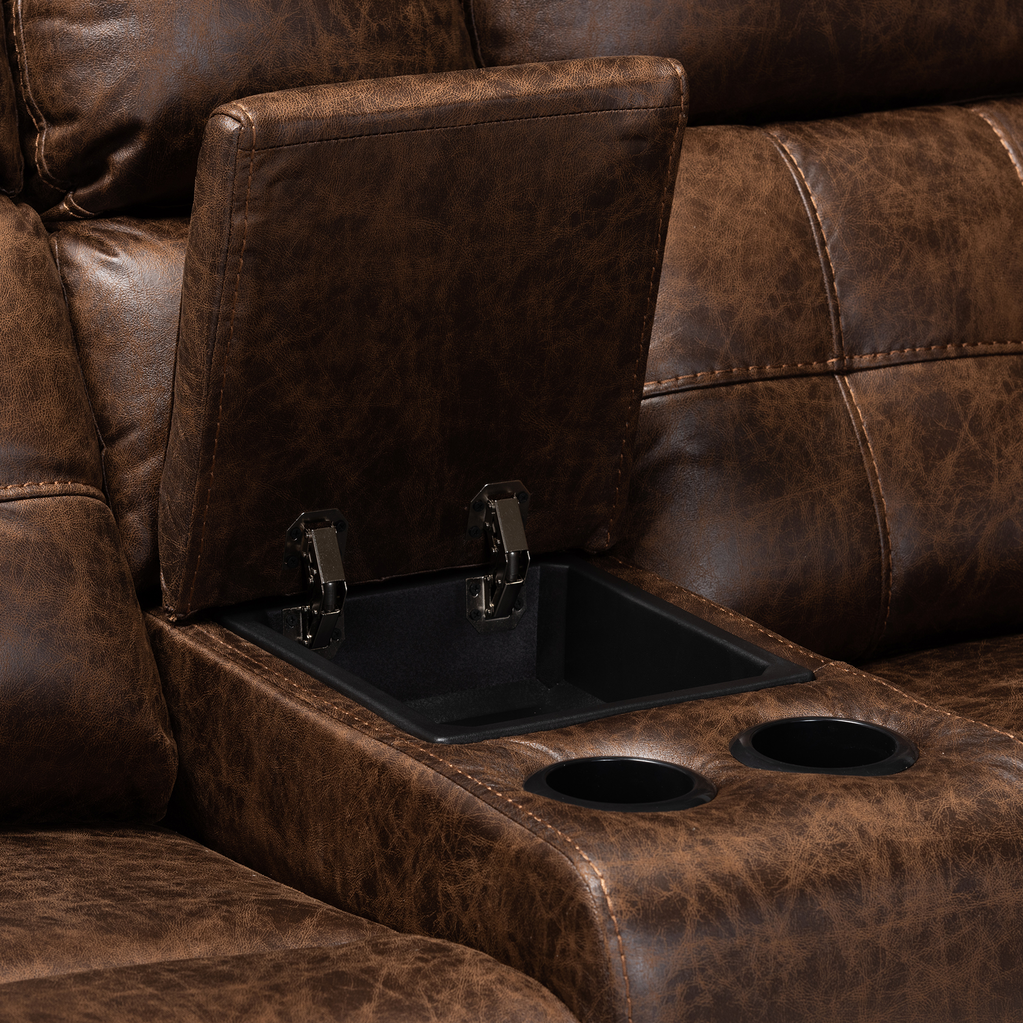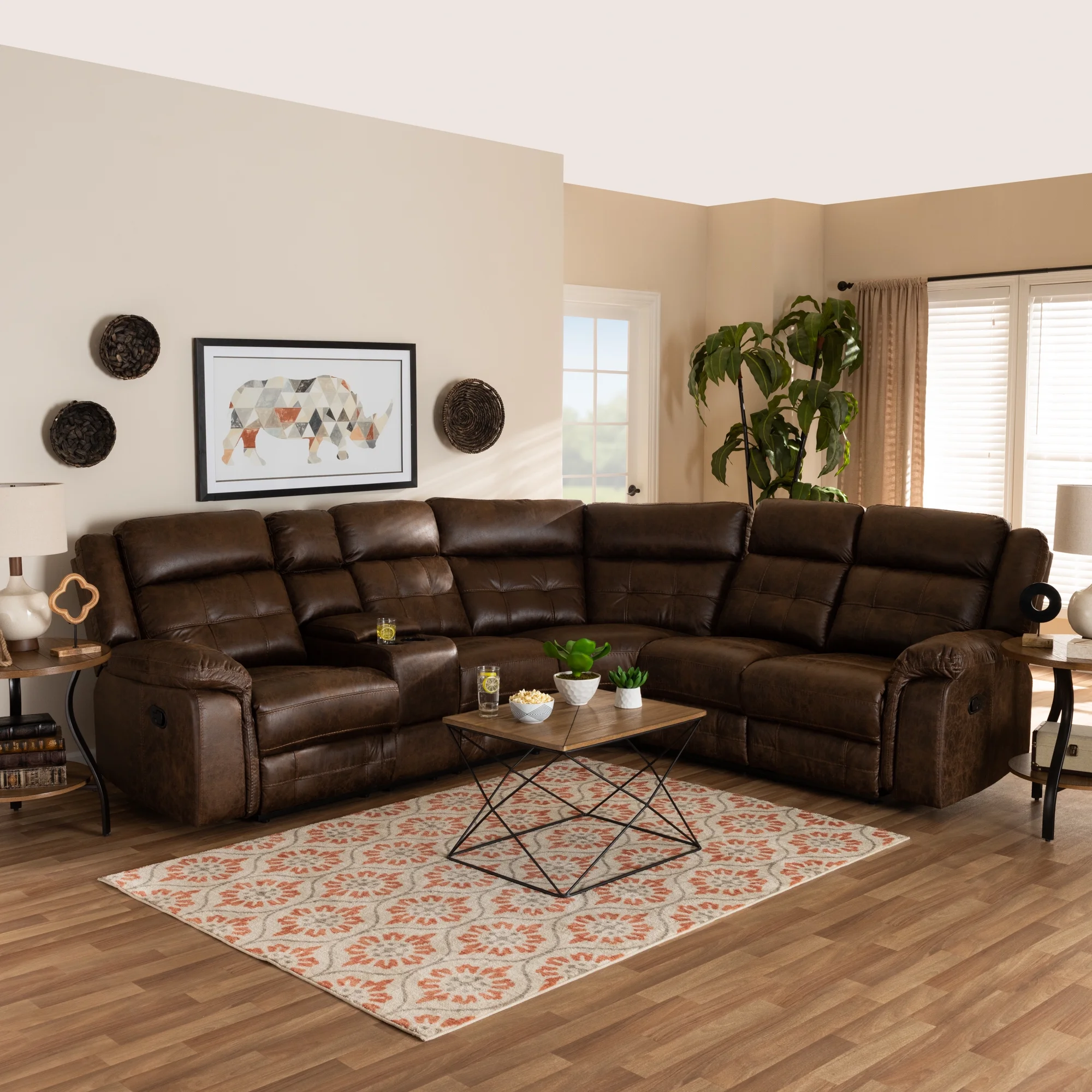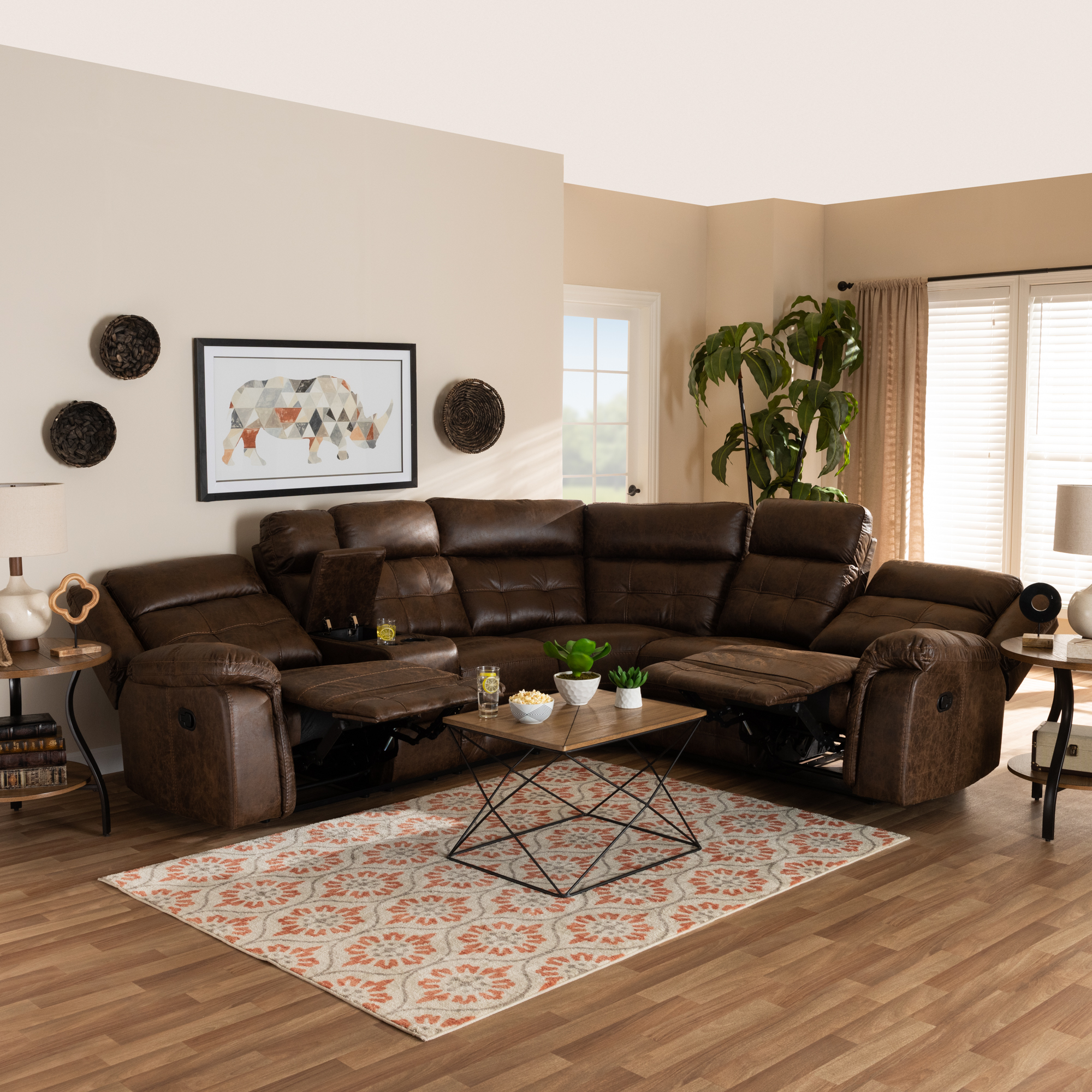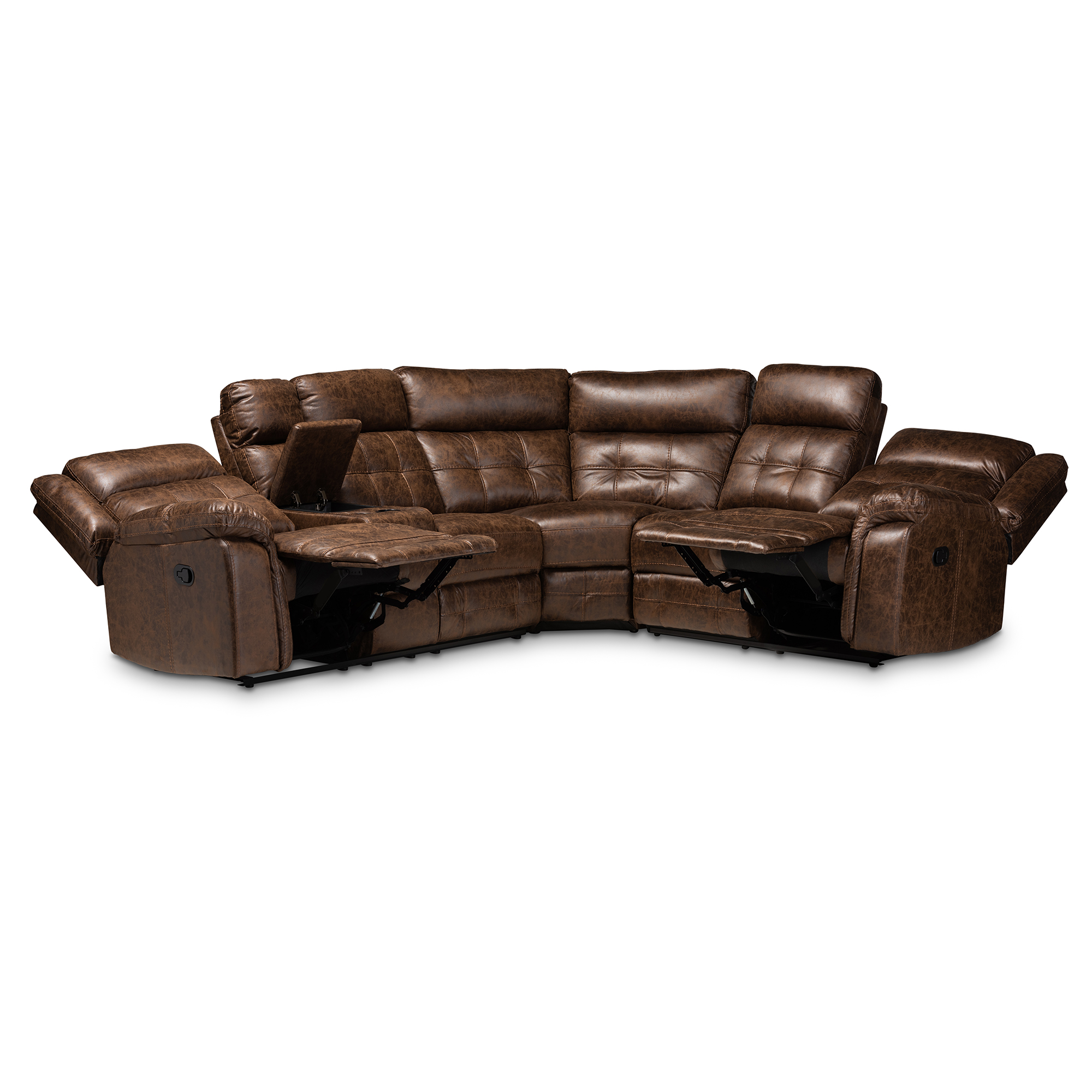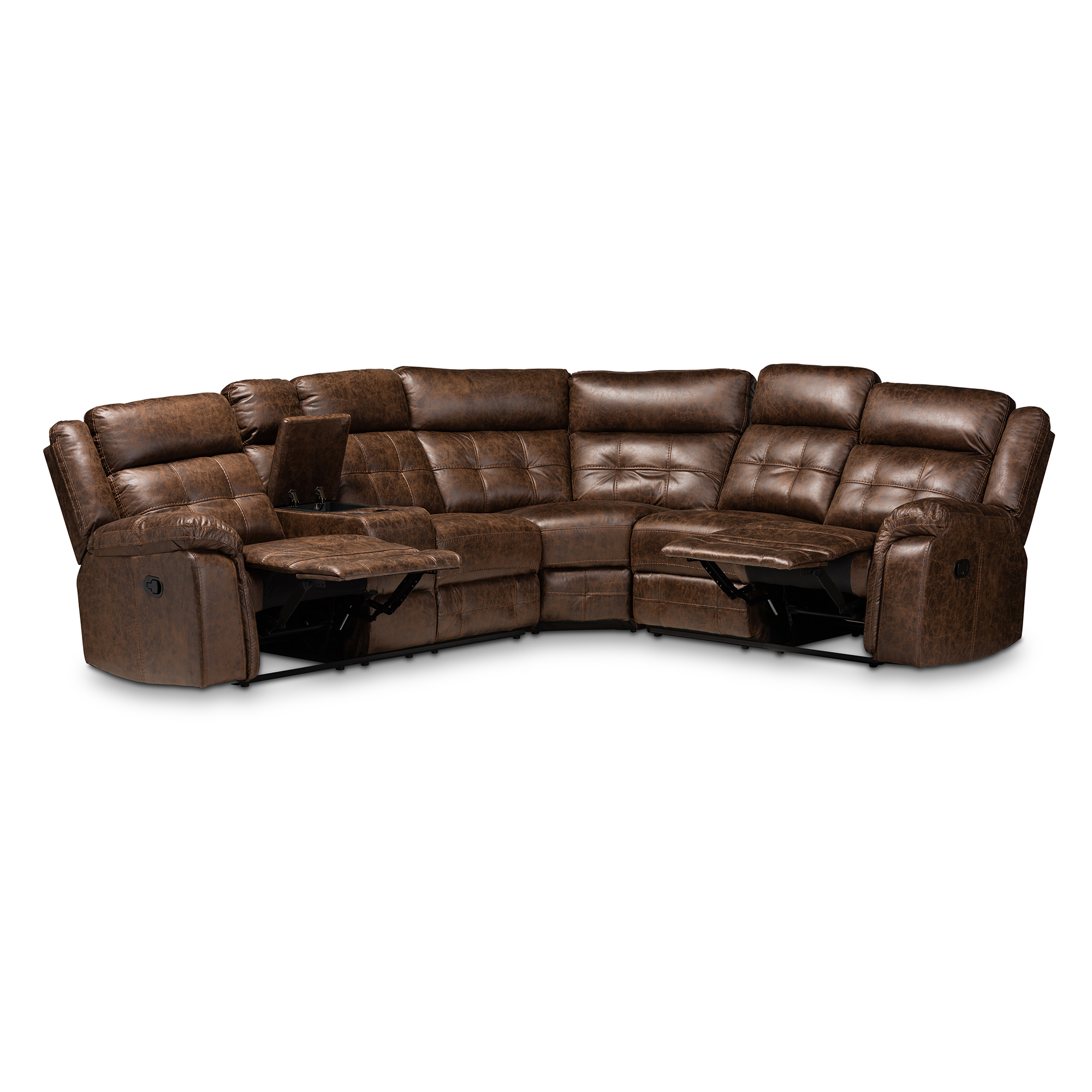 Skyline Decor Brown Leather-Like Fabric Upholstered 6-Piece Sectional Recliner Sofa with 2 Reclining Seats