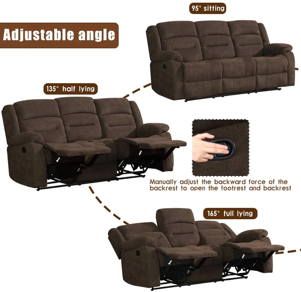 2 Piece Recliner Sofa Set with Reclining Loveseat and Reclining Sofa in Gray