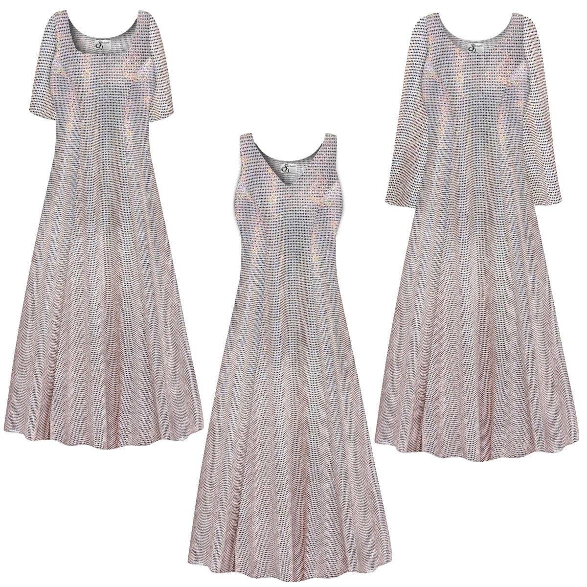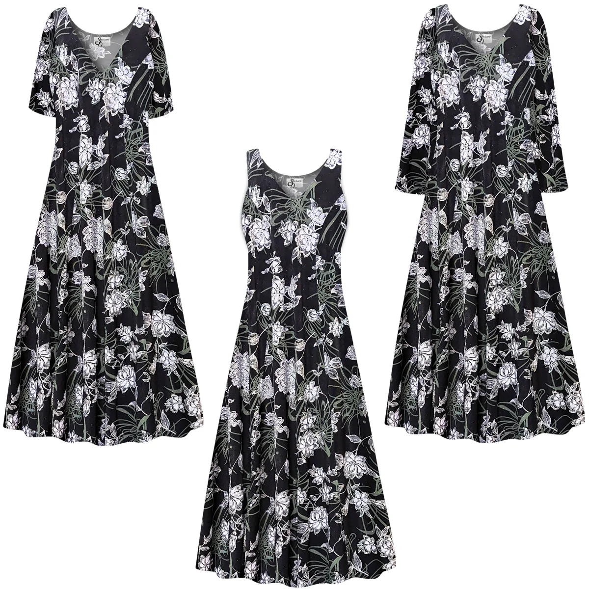 Small Womens Dress Silver Glitter Floral Print Short Sleeve Princess Cut
