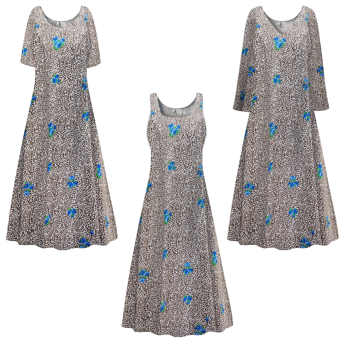 Small Womens Dress Cheetah Hydrangea Designer Print Short Sleeve Princess Cut