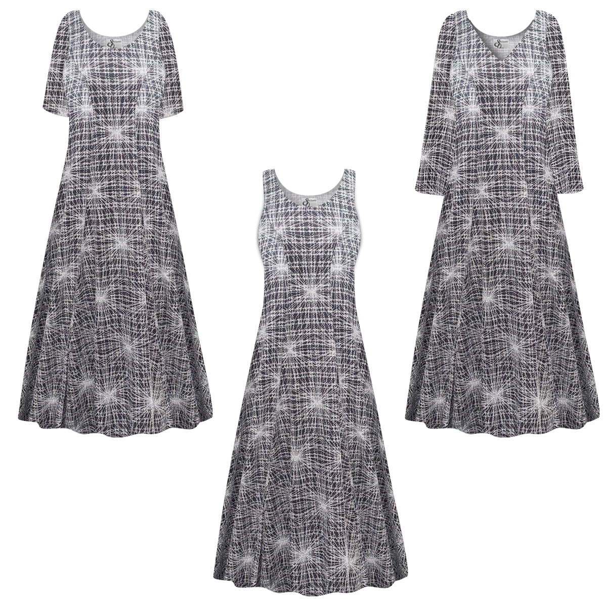 Small Womens Dress Silver Polaris Designer Print Short Sleeve Princess Cut