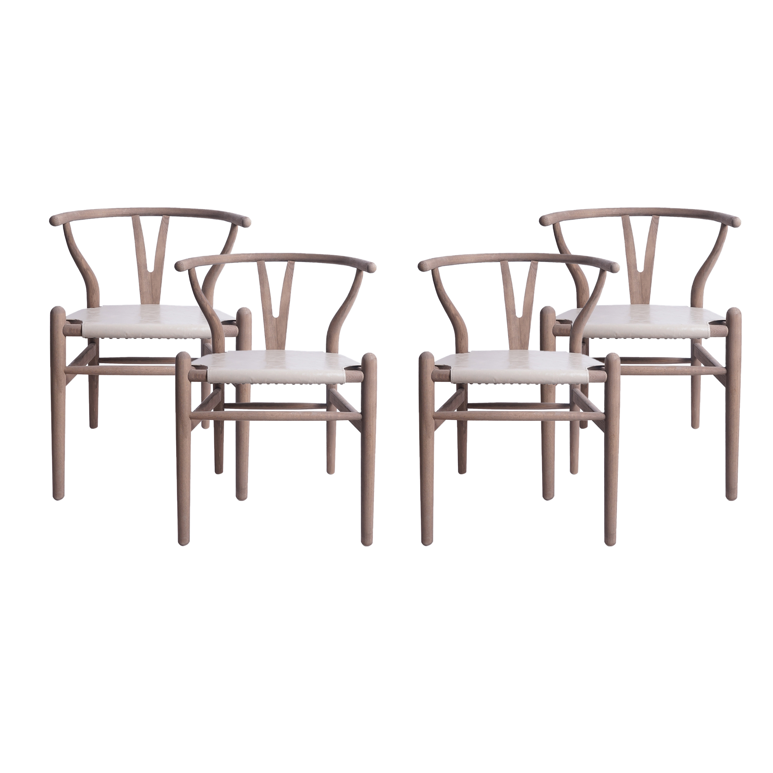 GDF Studio Quince Mid Century Boho Faux Leather and Ash Wood Dining Chairs, Set of 4, Tan and Antique