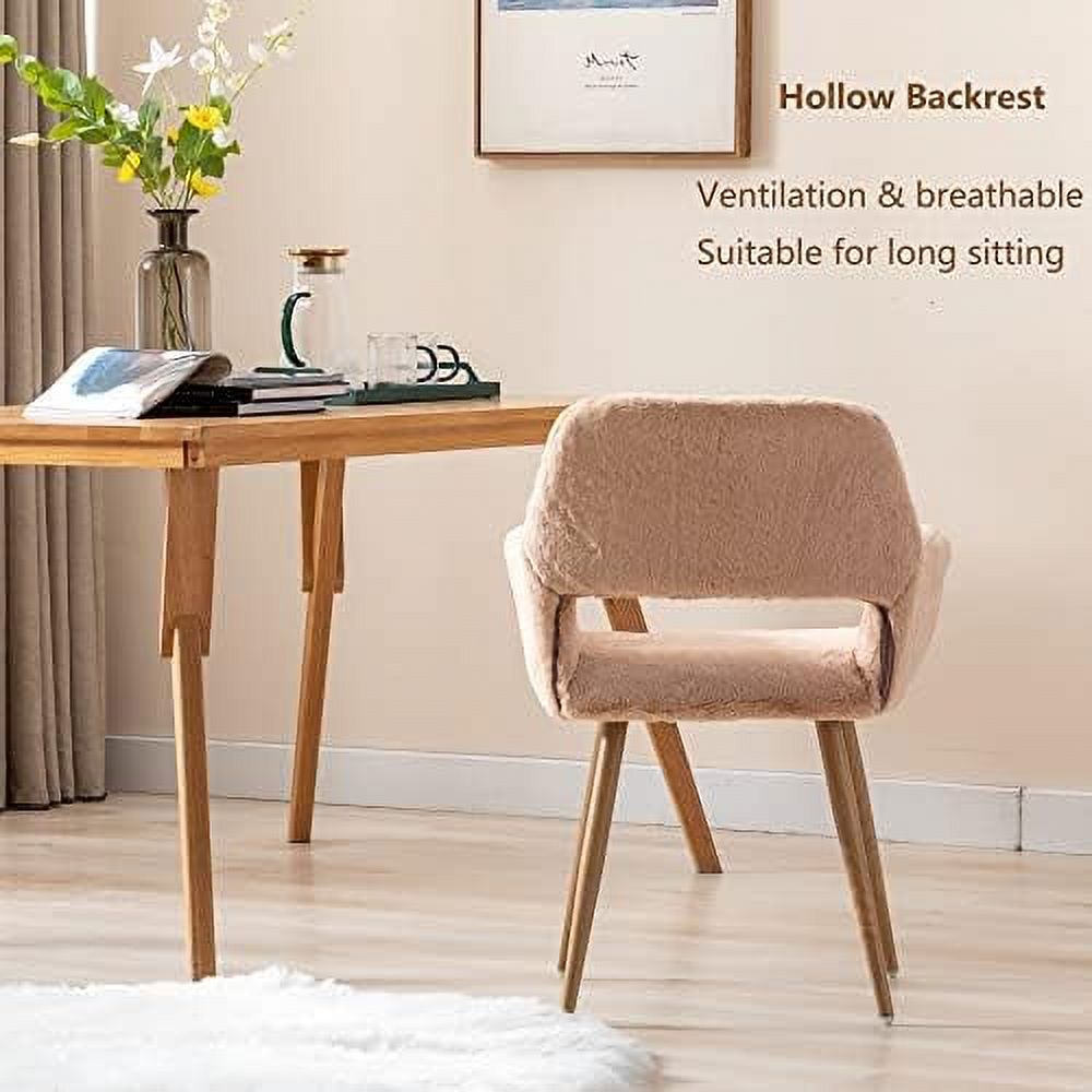 Leatherette Mid Century Dining Chair with Split Padded Back, Black & Brown