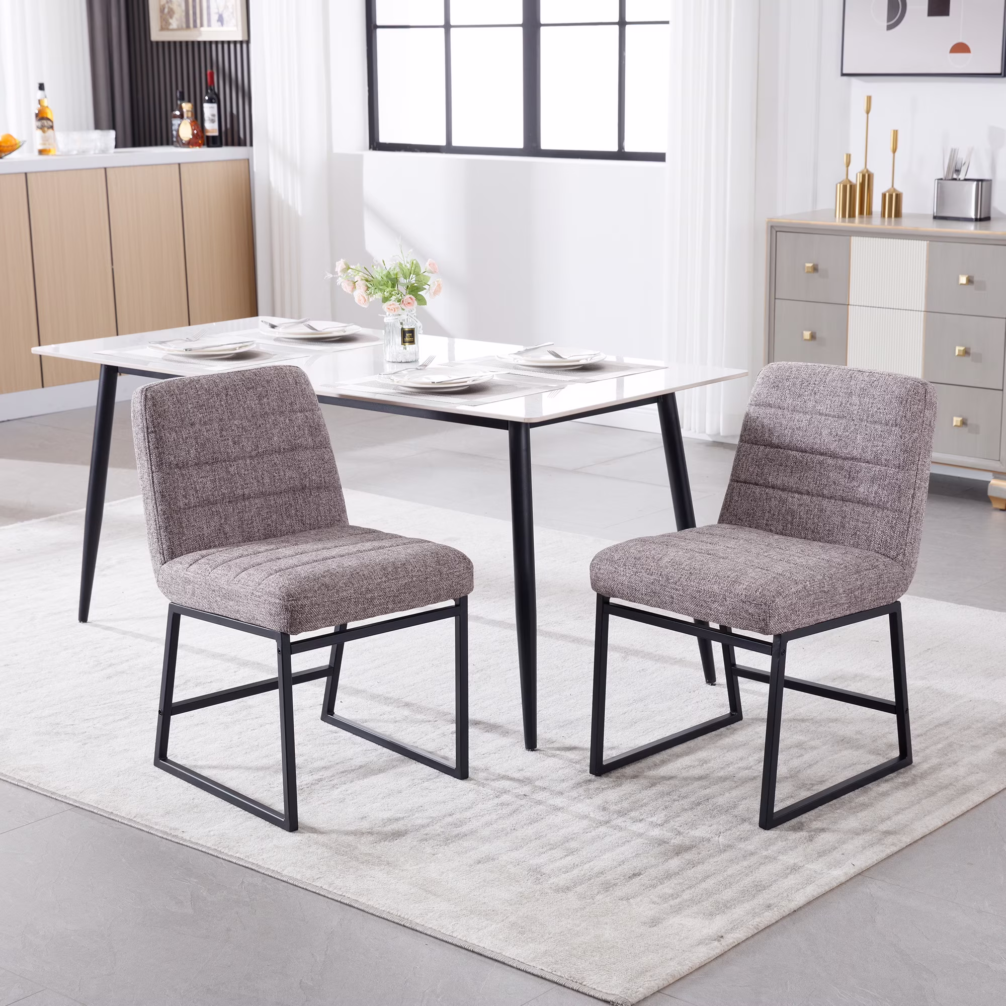 Armen Living Robin Mid-Century Dining Chair in Walnut Finish & Gray Fabric - Set of 2 - 35.5 x 18.5 x 21 in.
