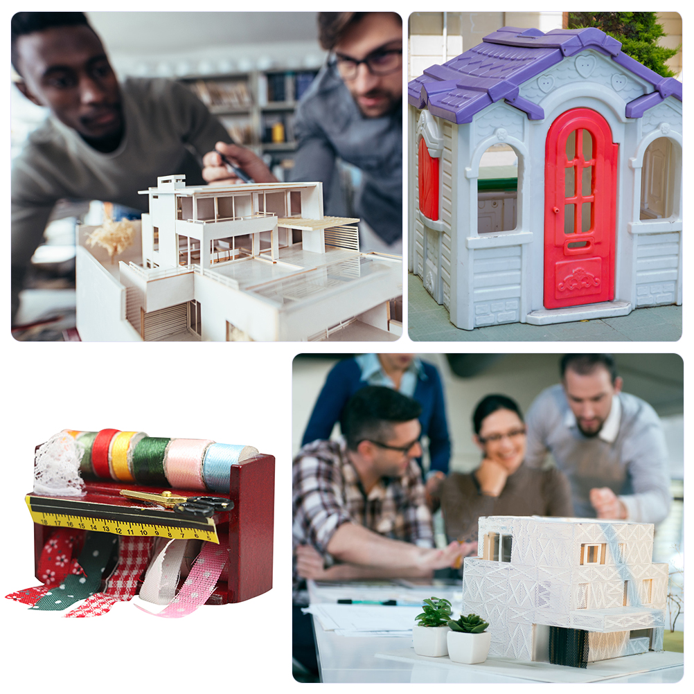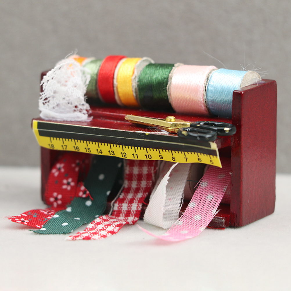 2 Sets Decor Wooden Playset Children Toys Miniature Model Dollhouse Sewing Supplies Old Fashioned Red Metal