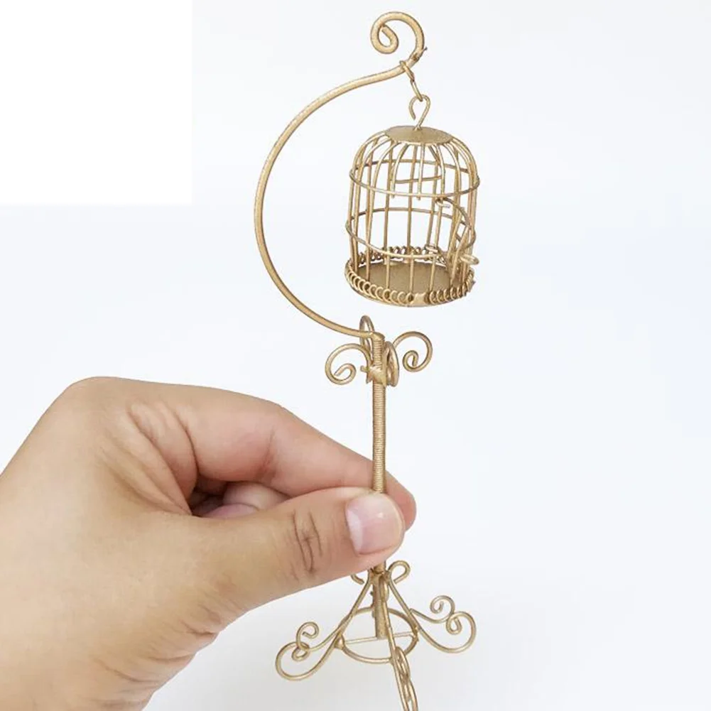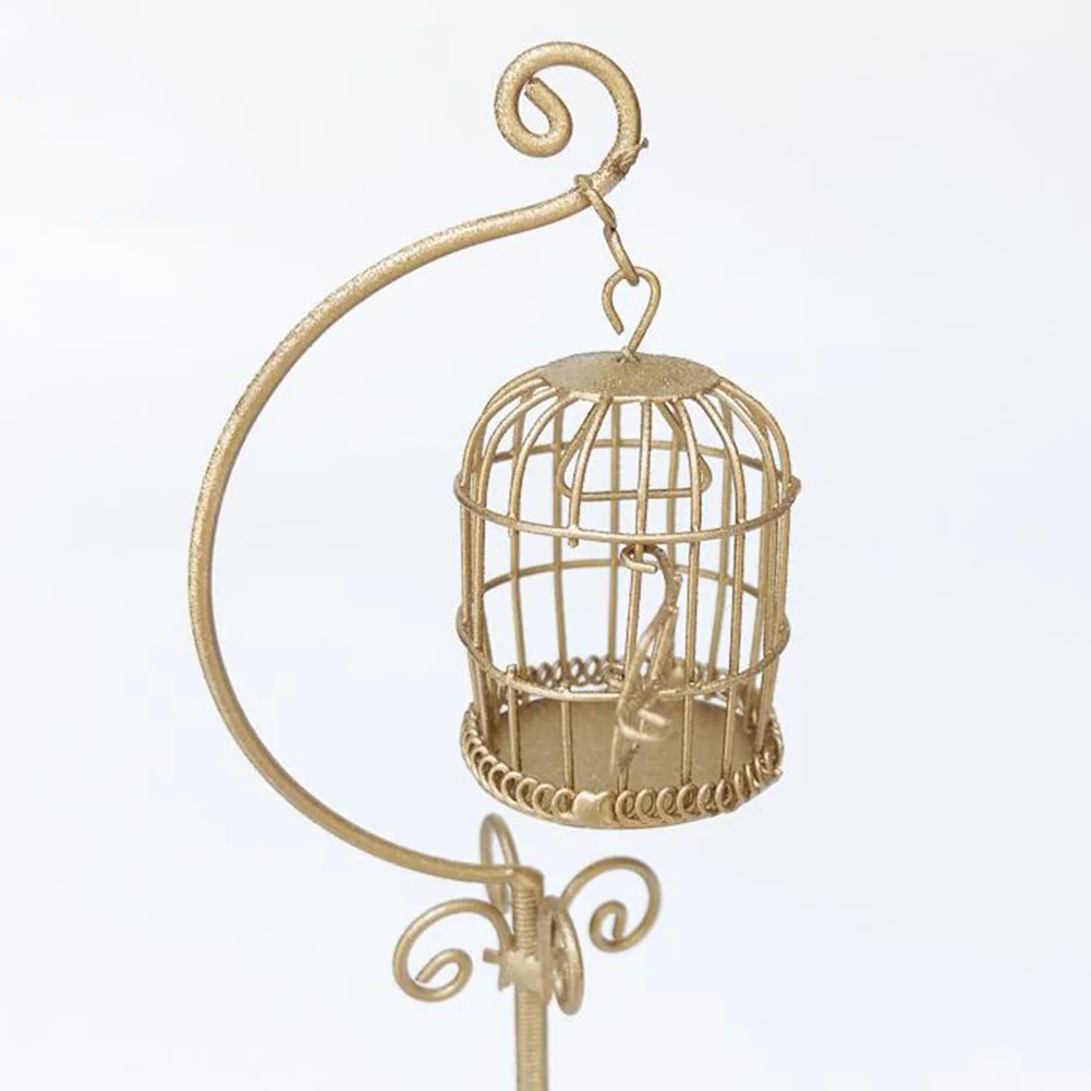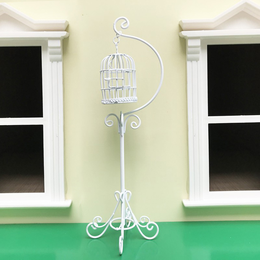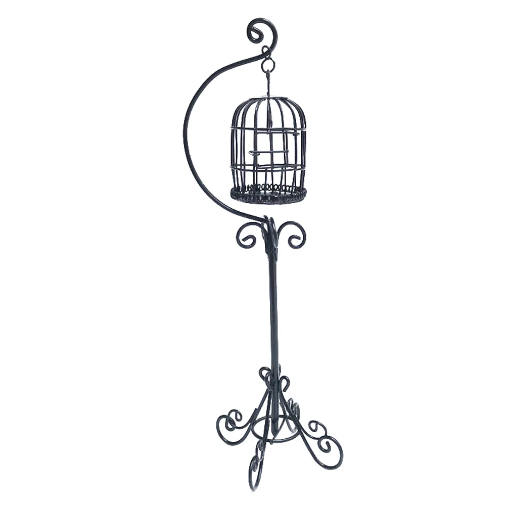 Realyc Miniature 1:12 Metal Bird Cage Floor Stand Pretend Play Toy Dollhouse Decoration