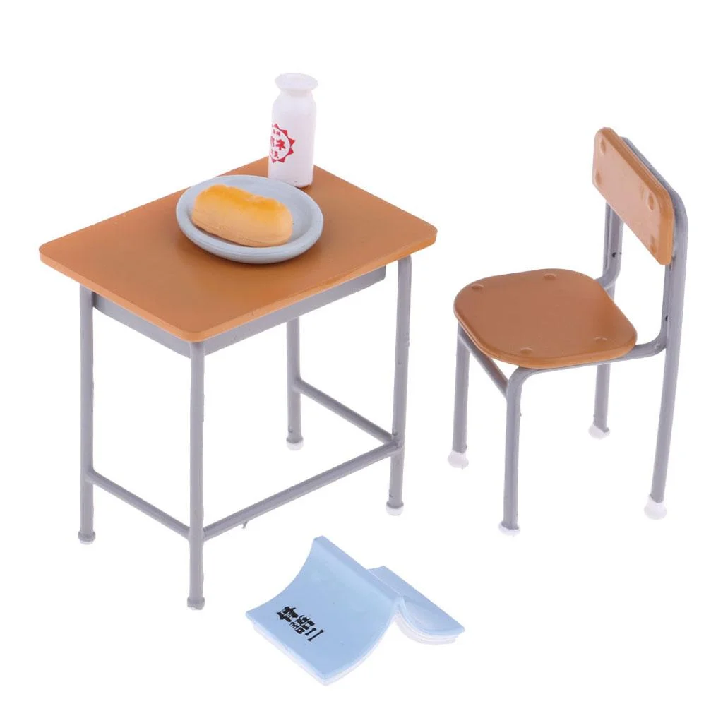 6 Pcs School Desk Chair Set Furniture for Dollhouse Decor Kids Playset Metal A++
