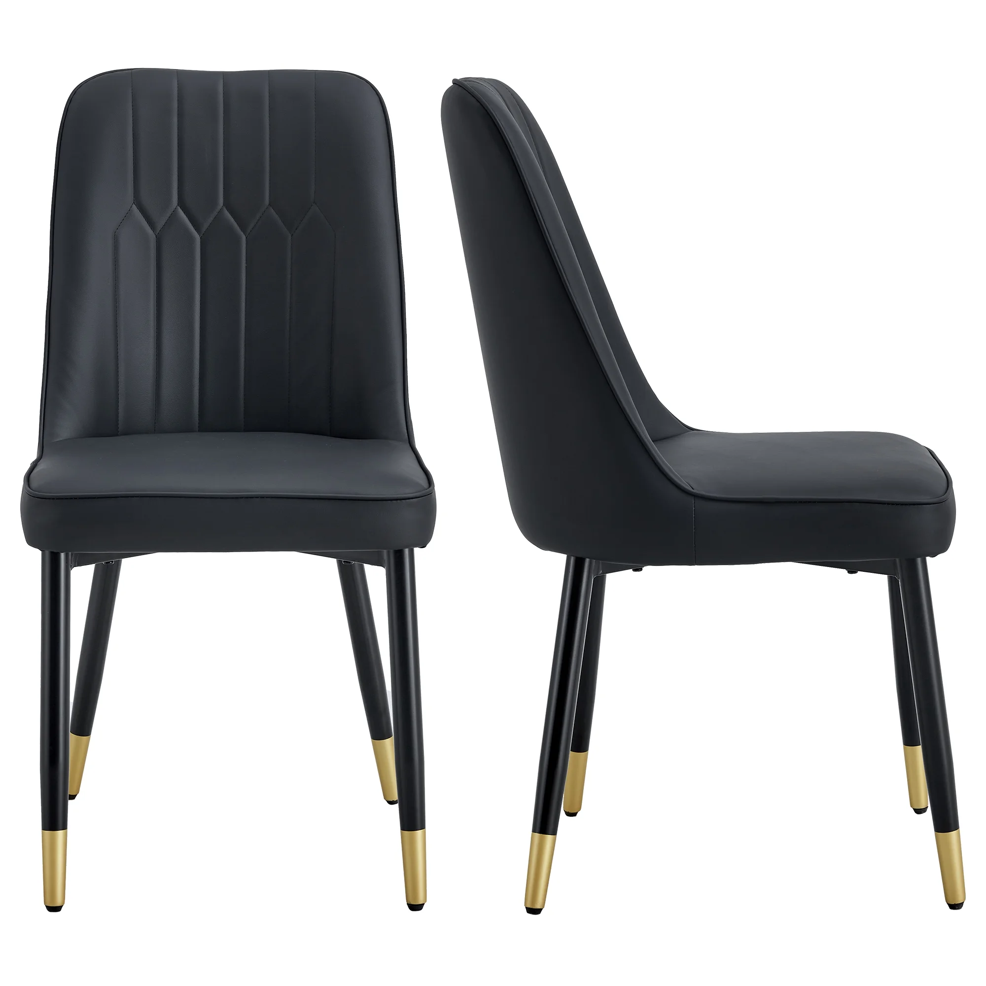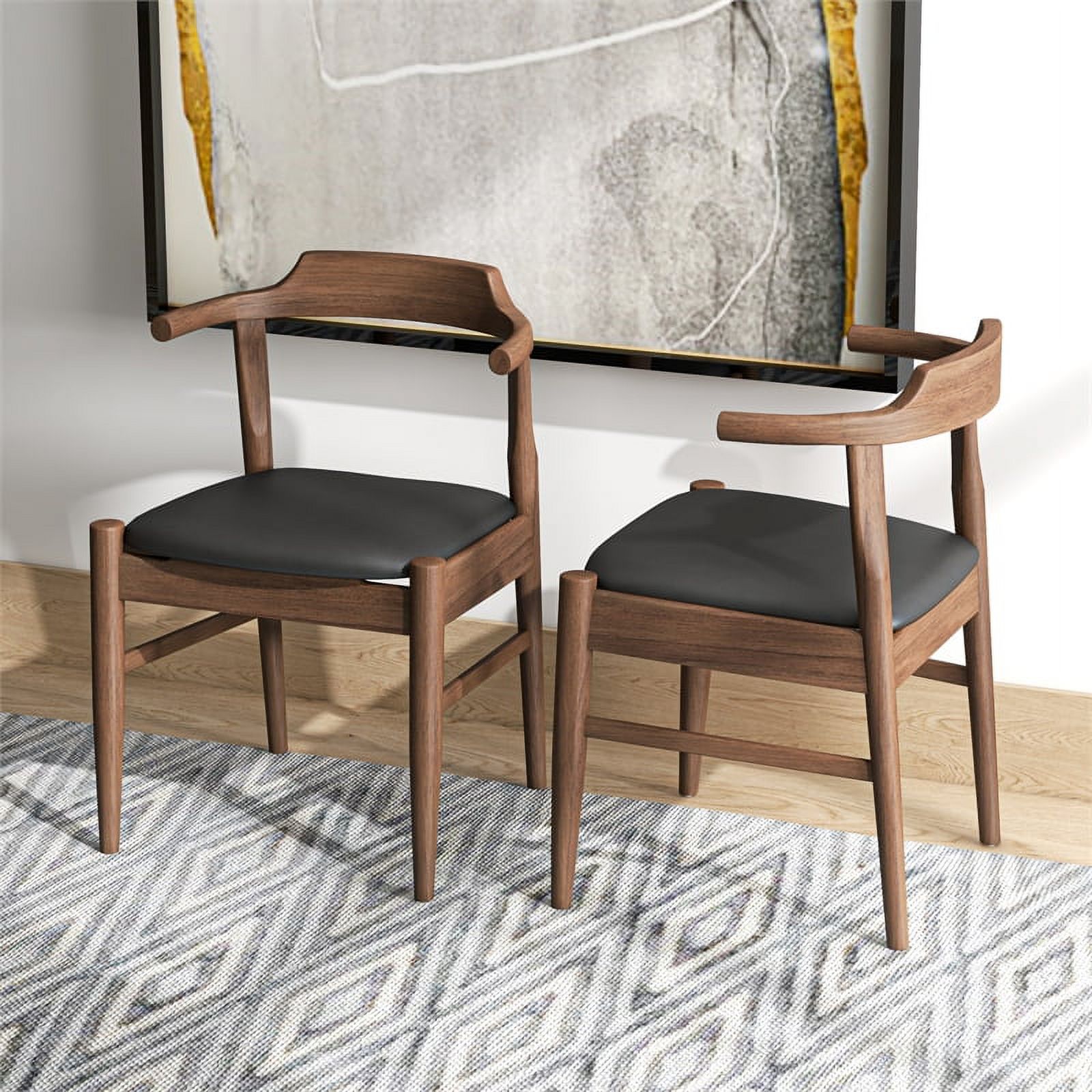 Elmira Mid-Century Modern Faux Leather Dining Chair in Black (Set of 2)