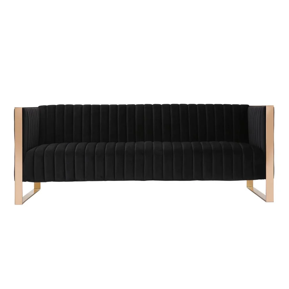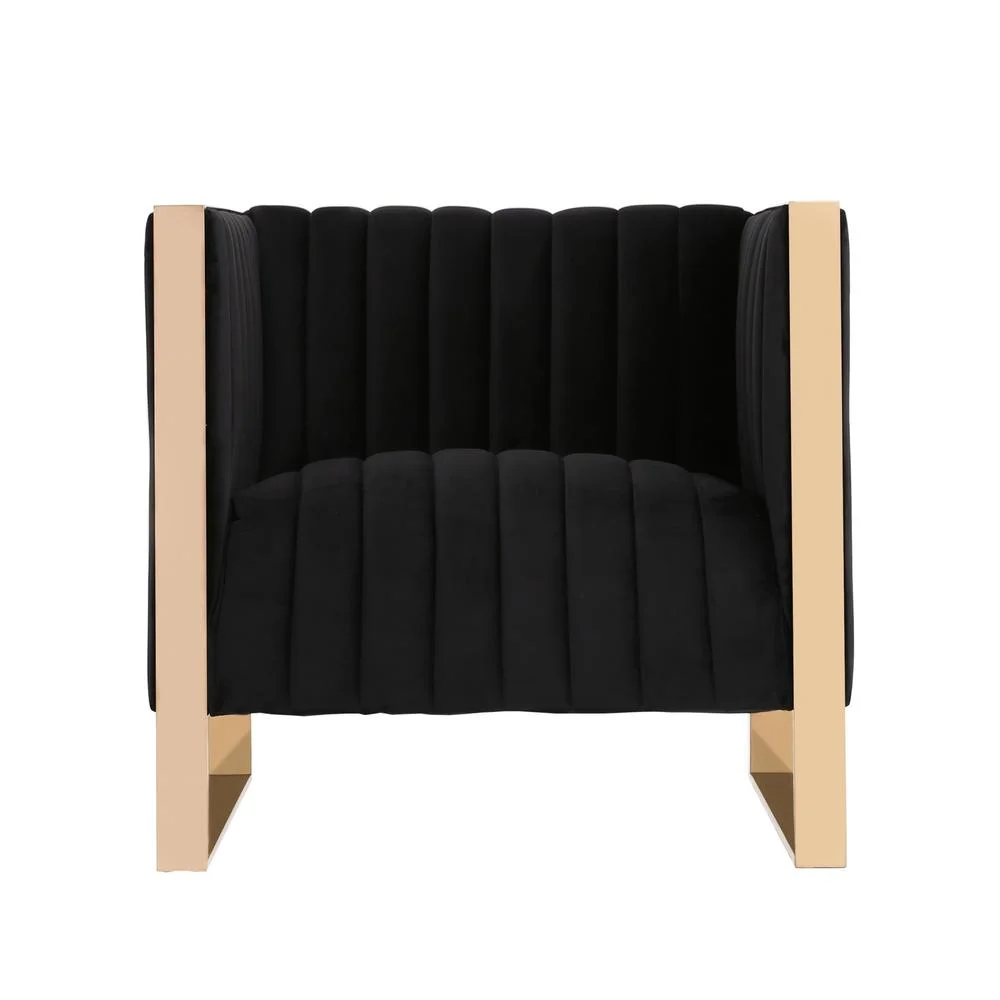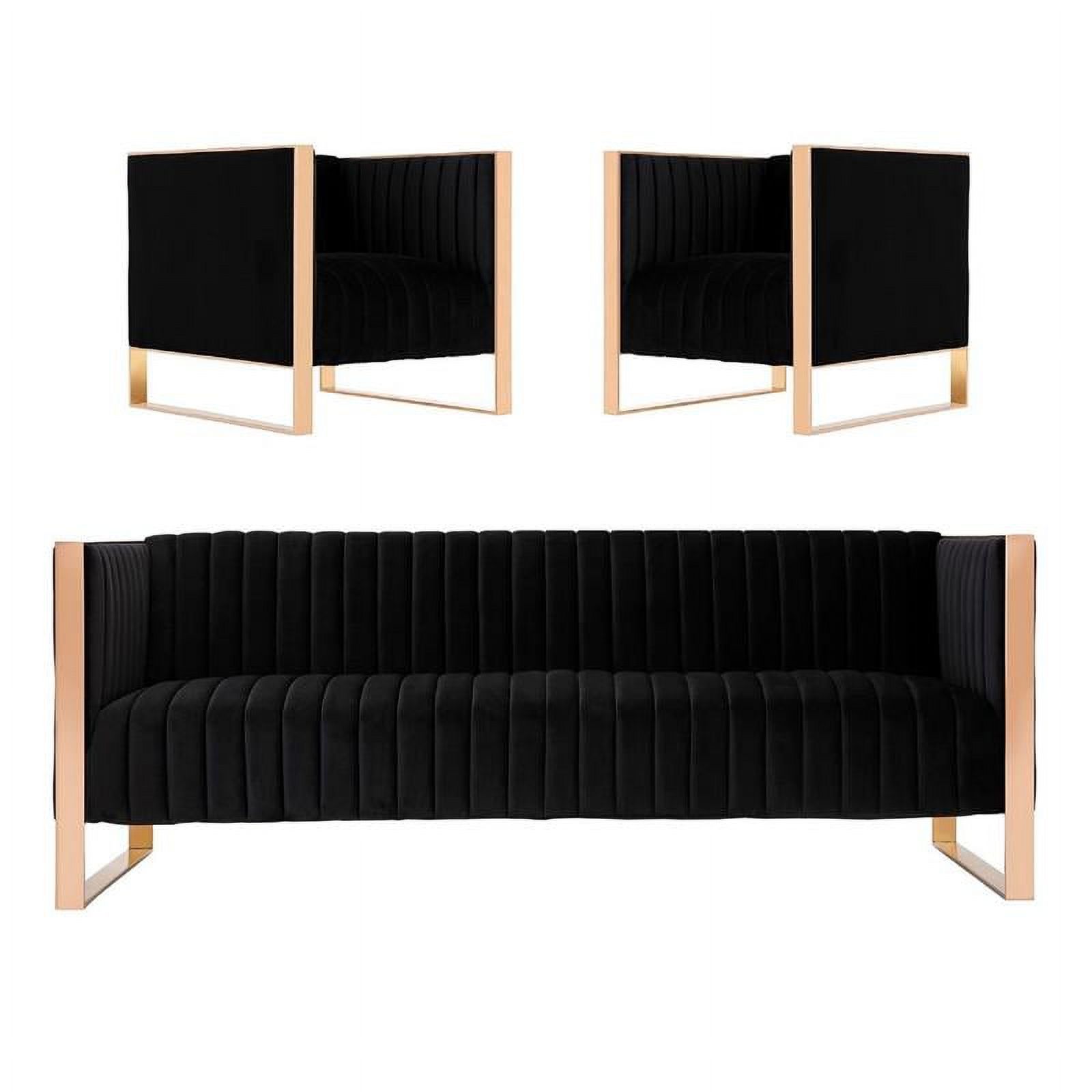 Manhattan Comfort Trillium 3-Piece Velvet Sofa & Armchair Set in Black