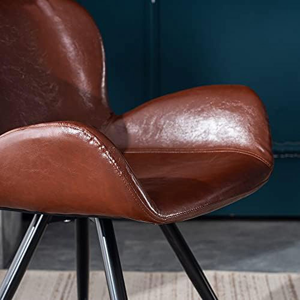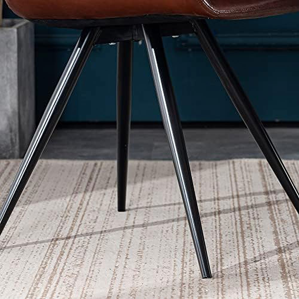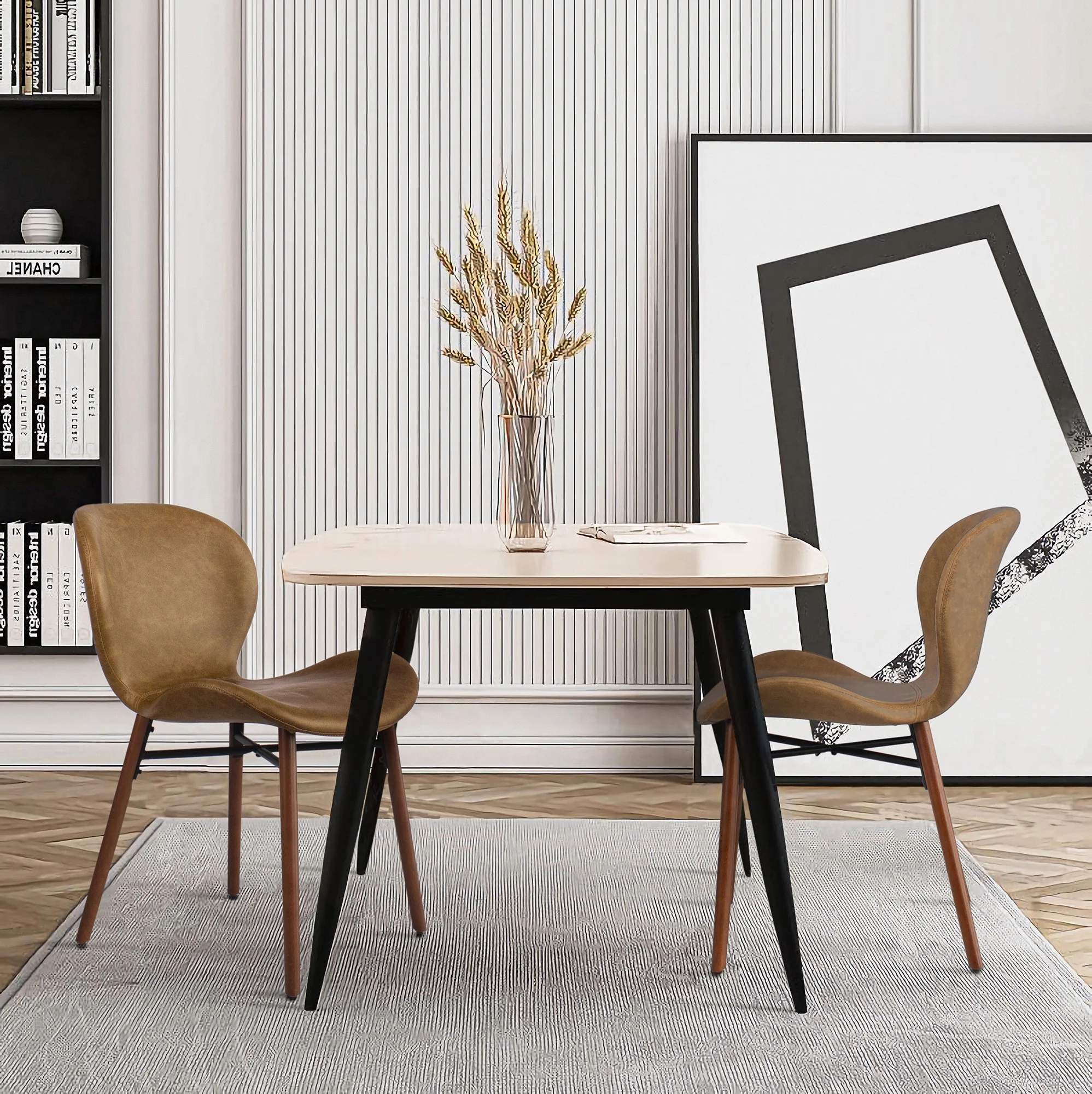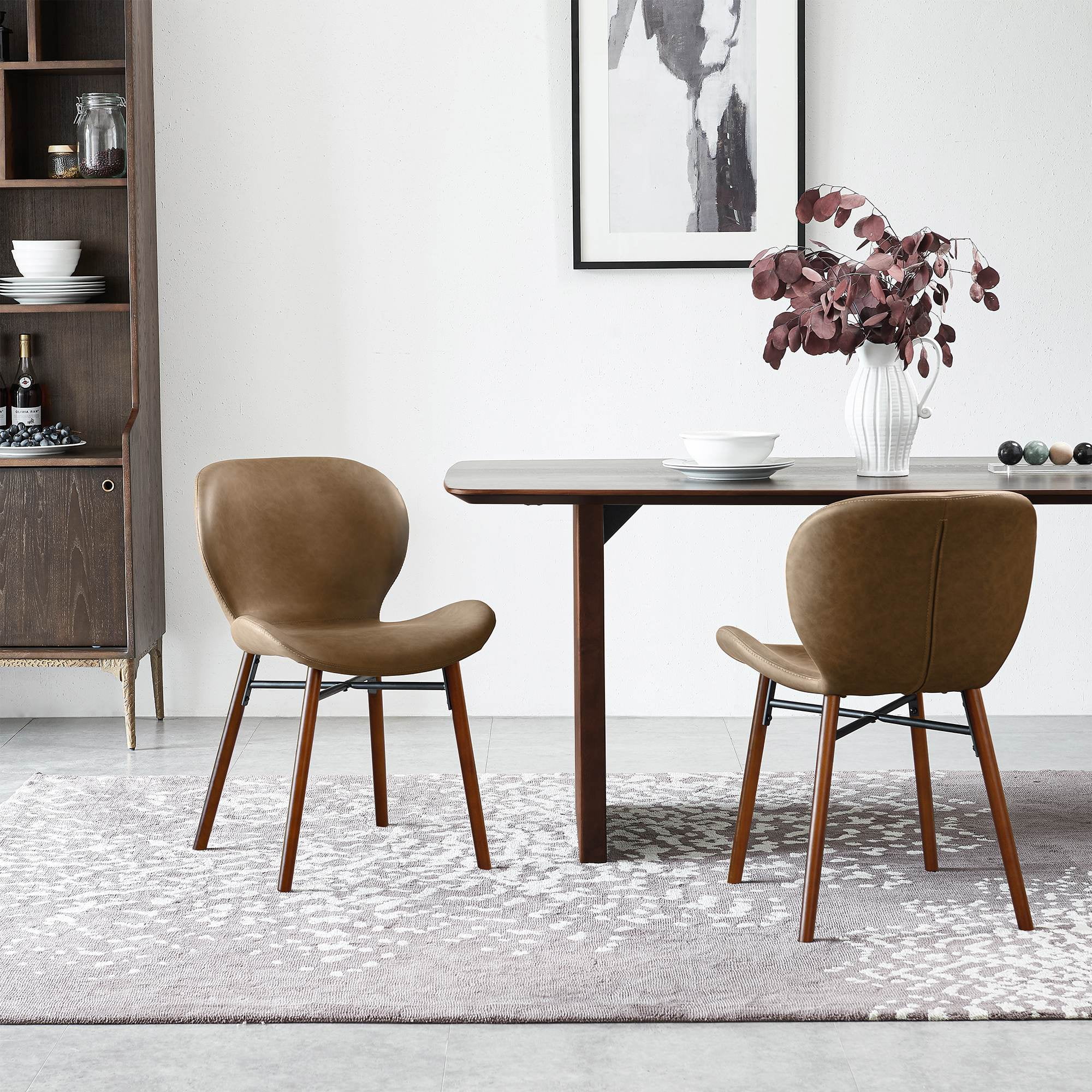 WELLET Mid Century Leather Dining Chairs, Wood Legged, Set of 2, Brown