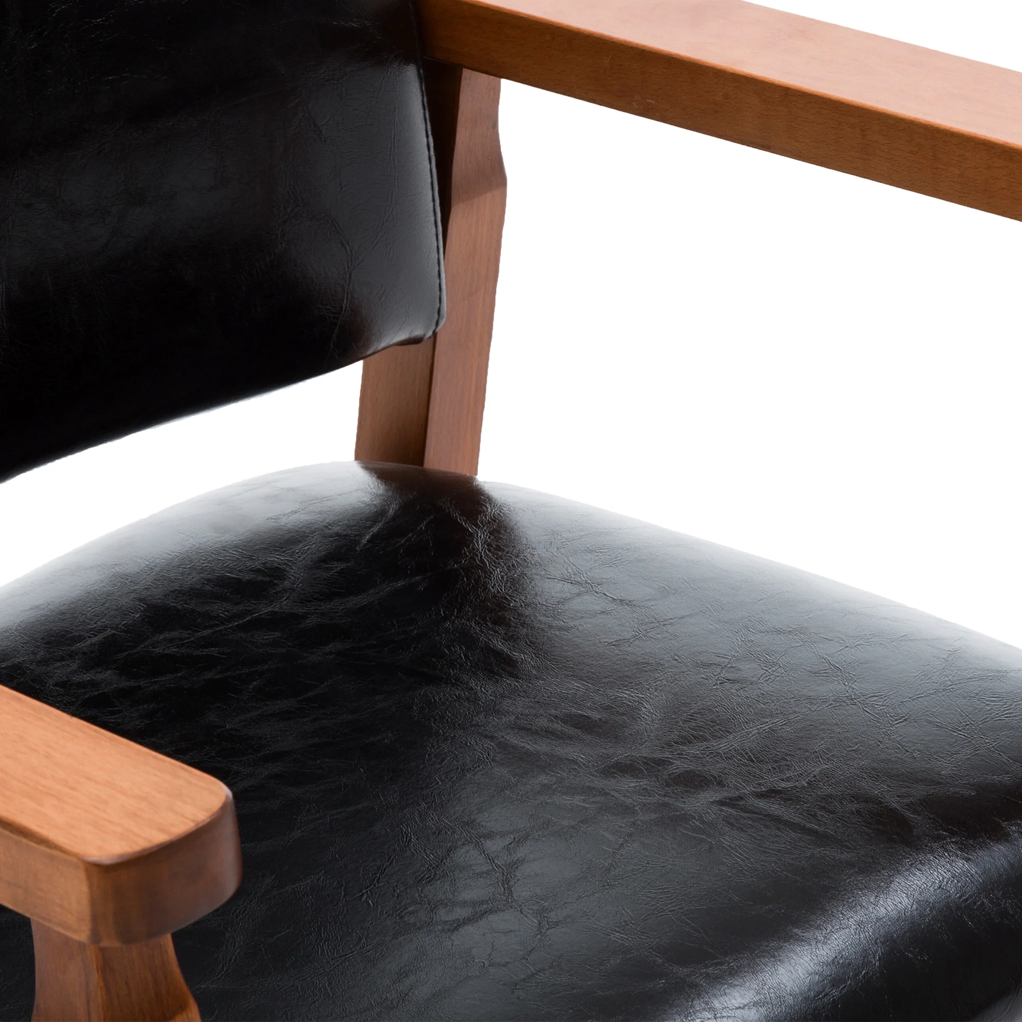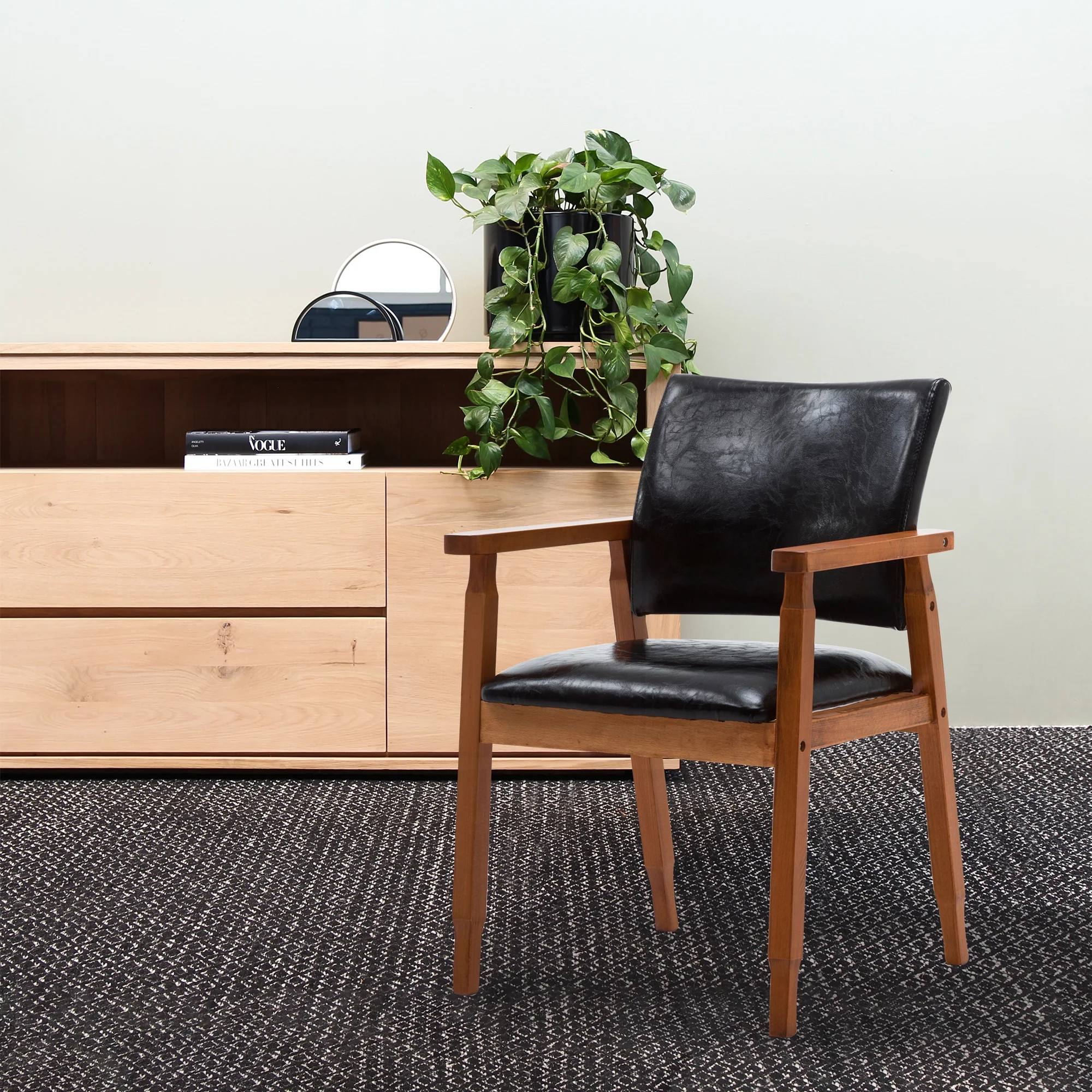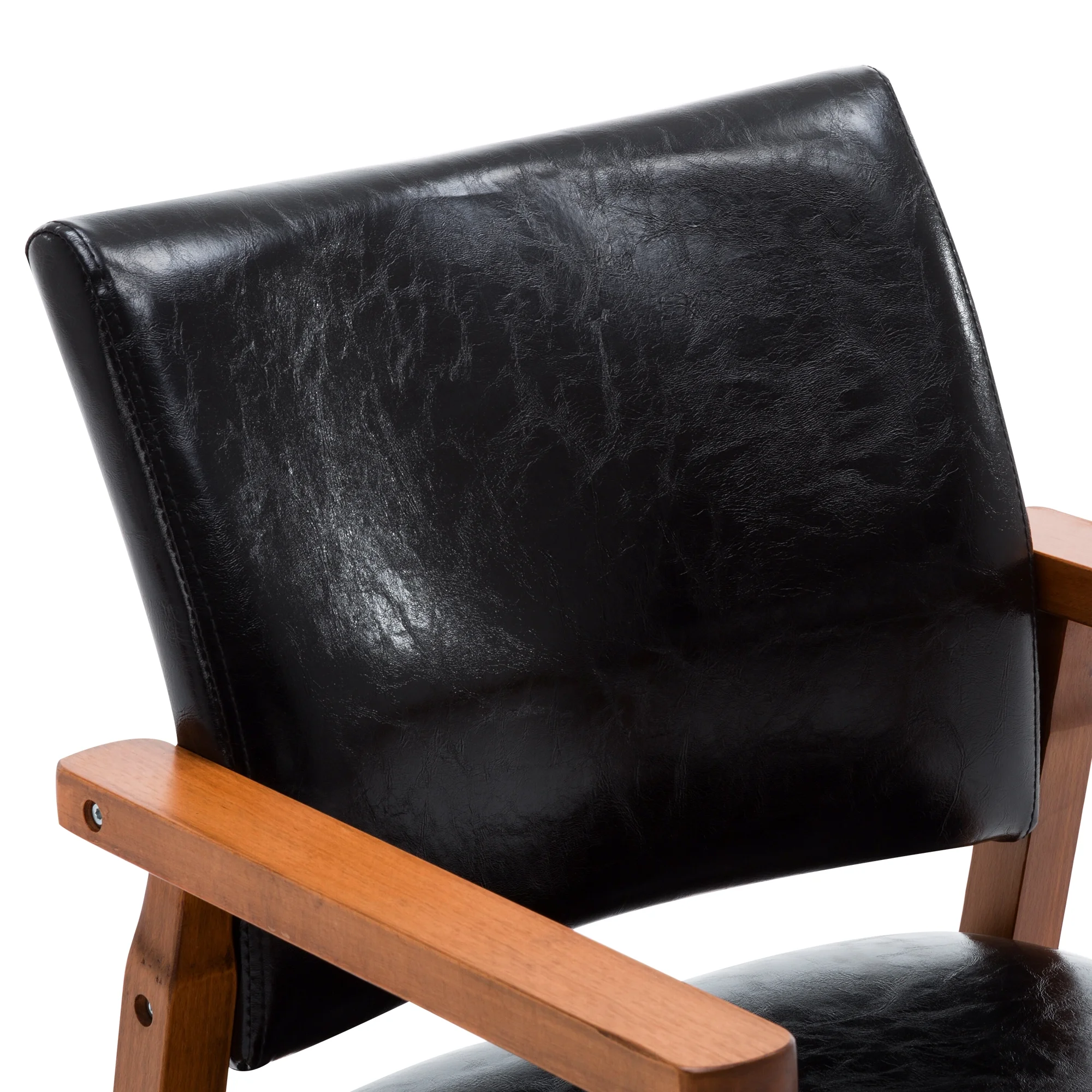Black Mid-Century PU Leather Upholstered Arm Chair, Dining chair, Set of 1