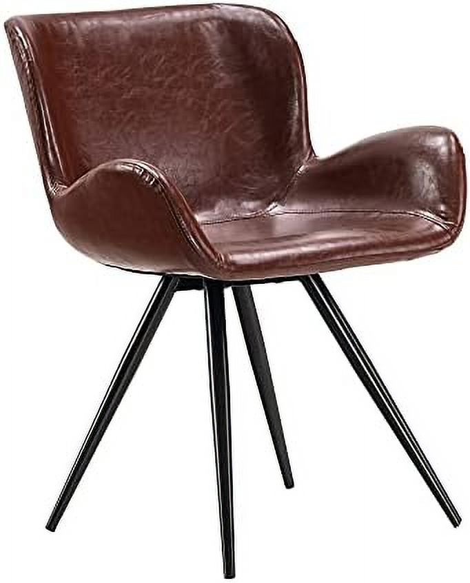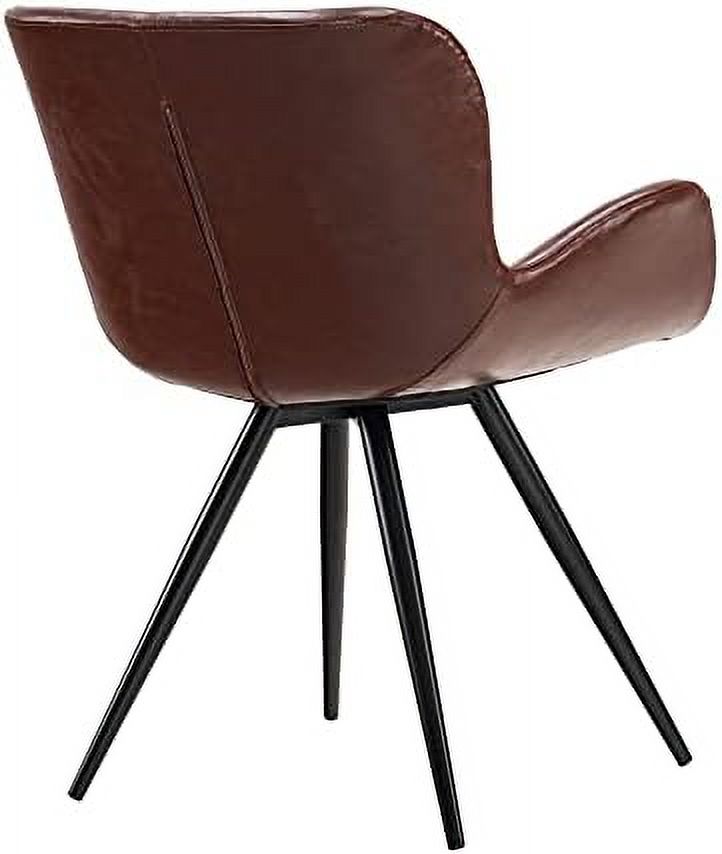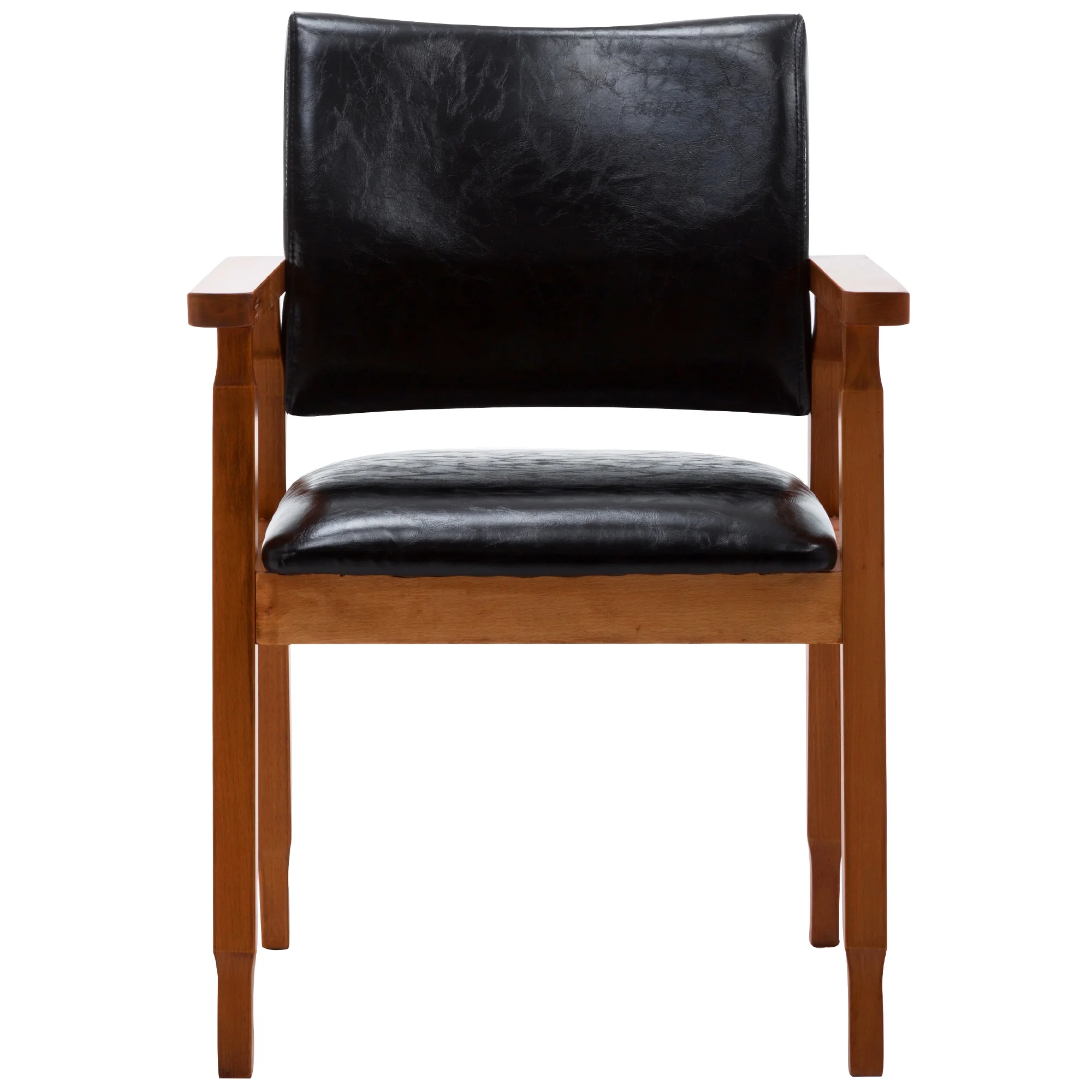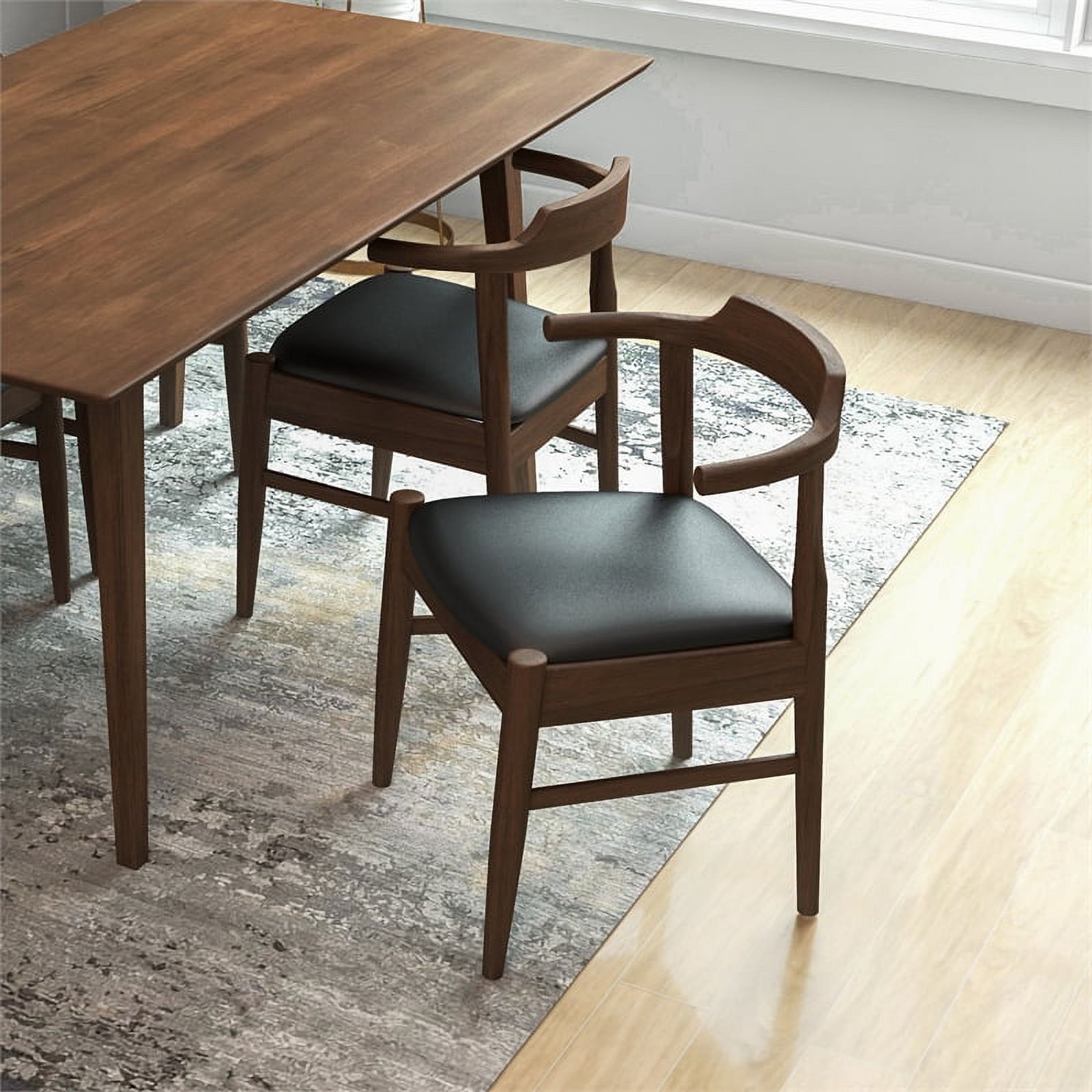 Black Mid-Century PU Leather Upholstered Arm Chair, Dining chair, Set of 1
