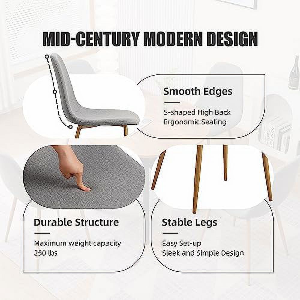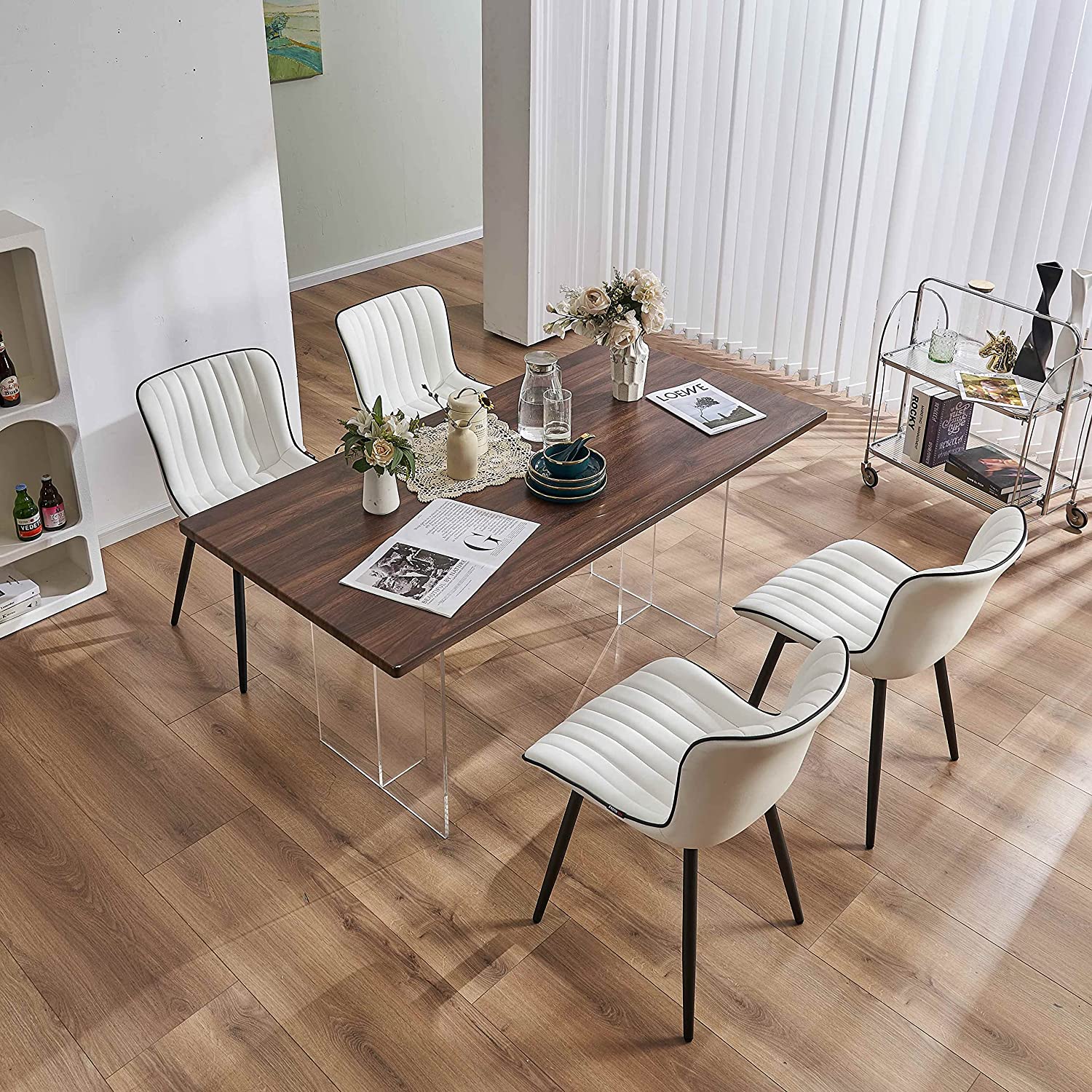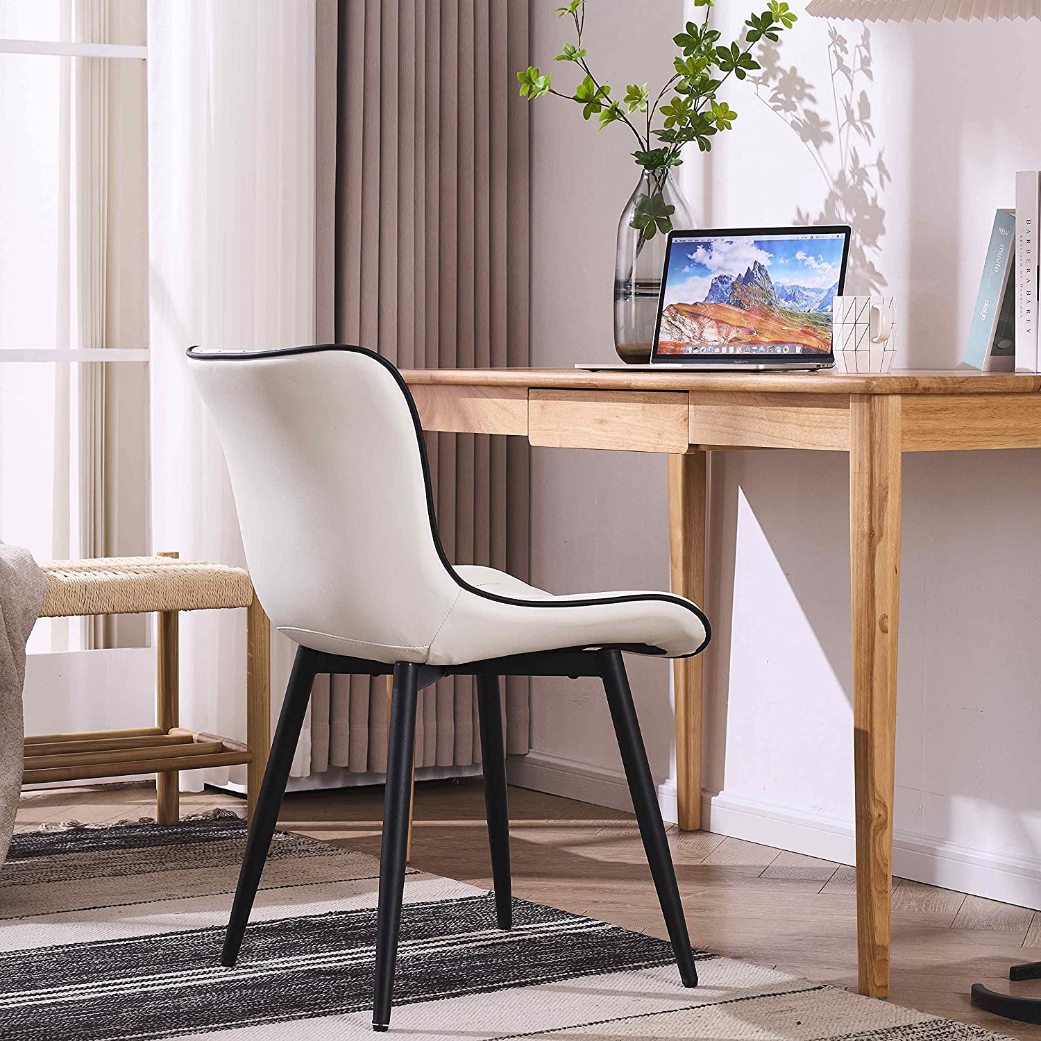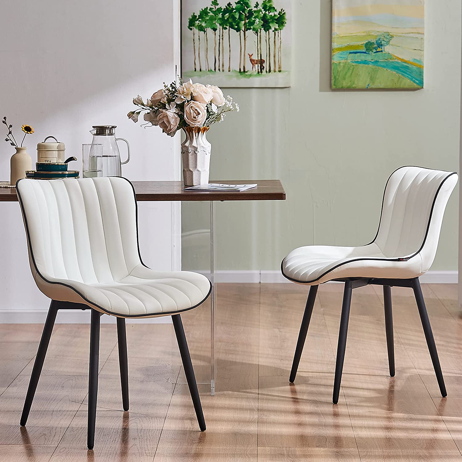 JUFU Modern Dining Chairs, Set of 4, Upholstered Kitchen Chairs Mid Century Armless Faux Leather Chairs