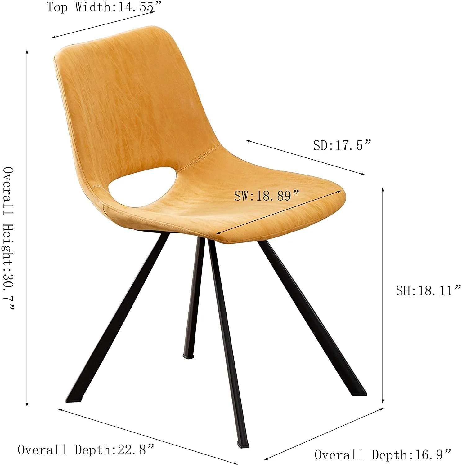 Armen Living LCCASIWABL Cassie Mid-Century Dining Chair in Walnut Wood - Black Faux Leather