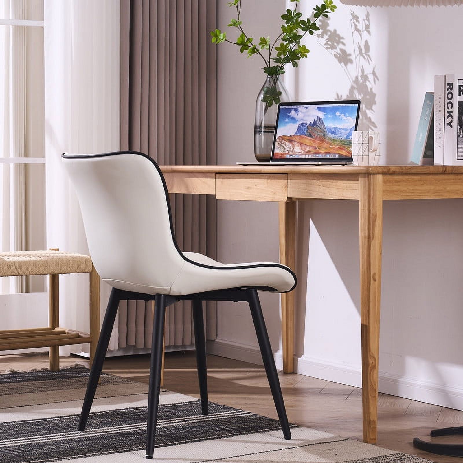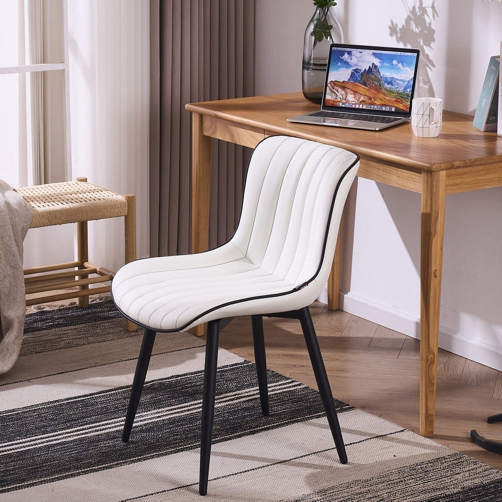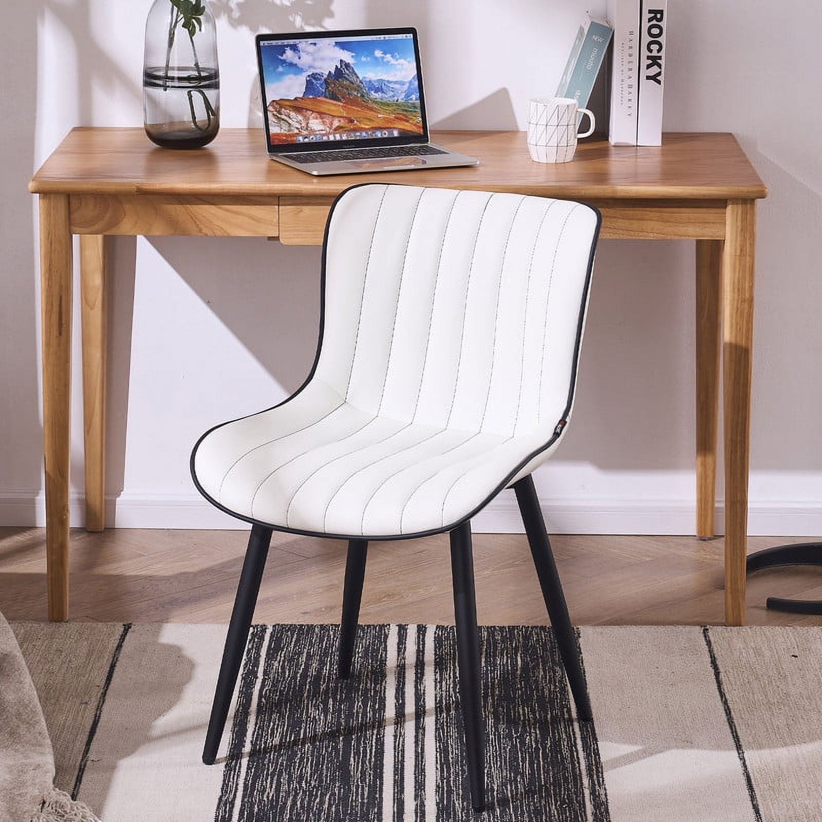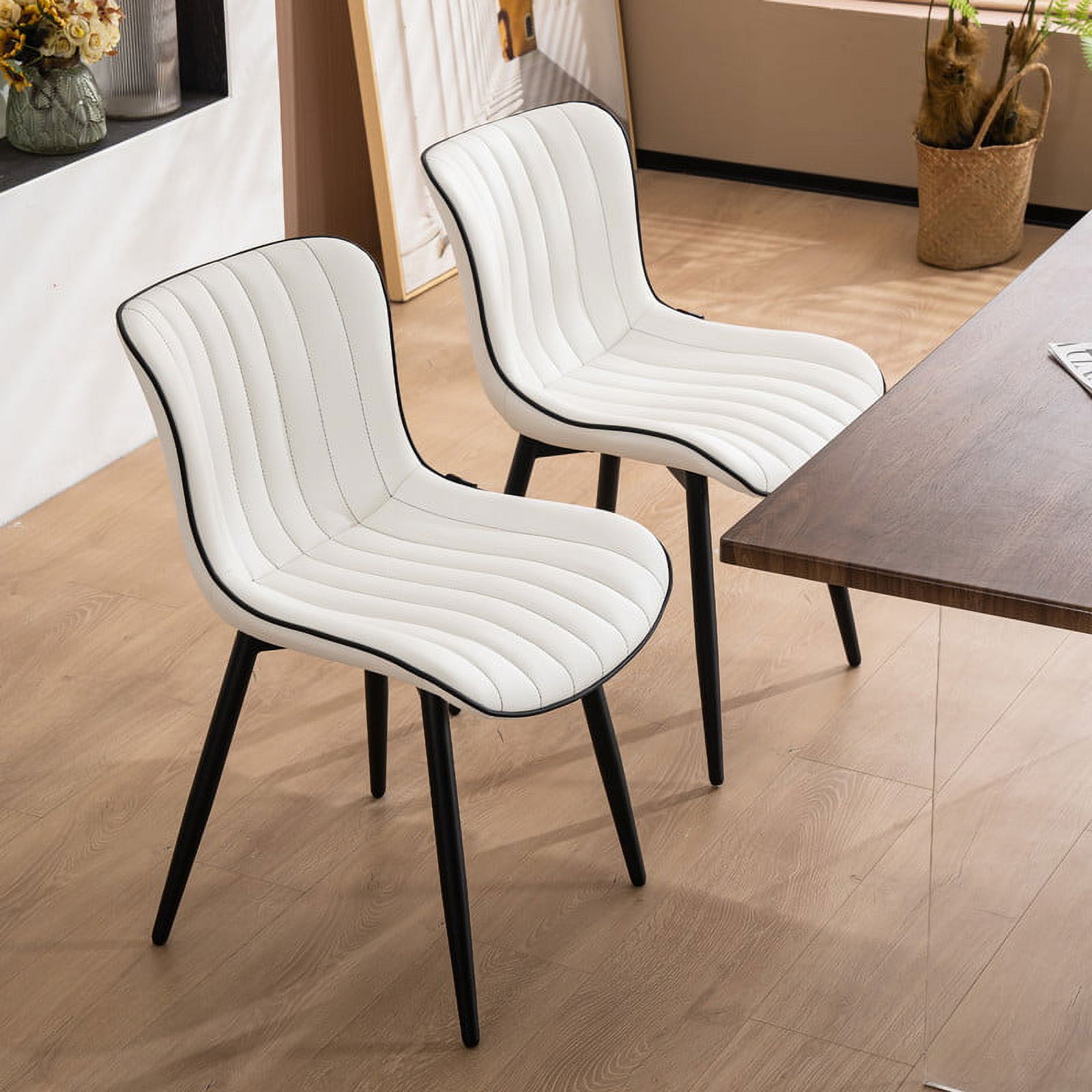 YOUNUOKE Dining Chairs Set of 2 Mid Century Modern Faux Leather Kitchen Dining Chair, White