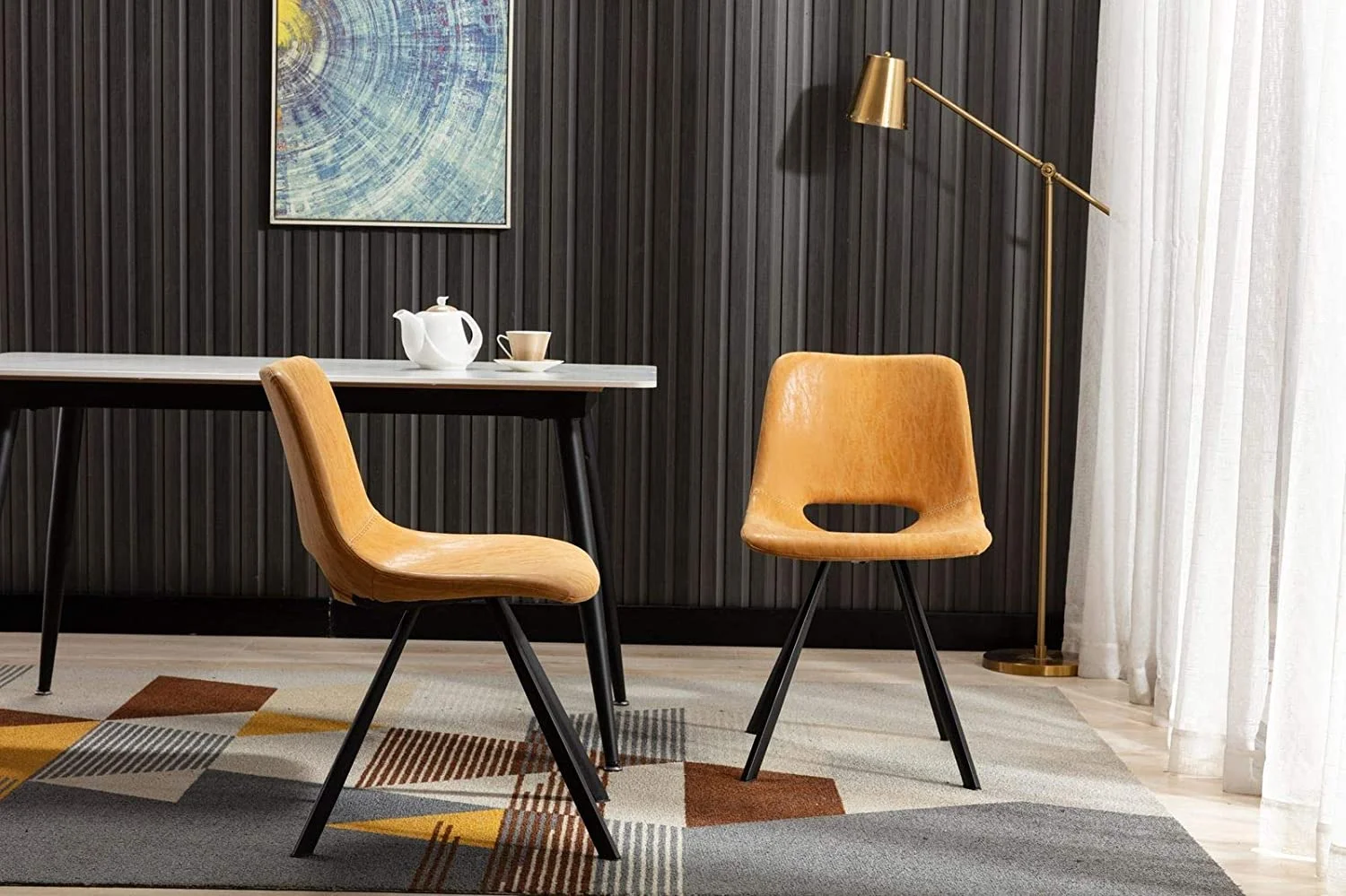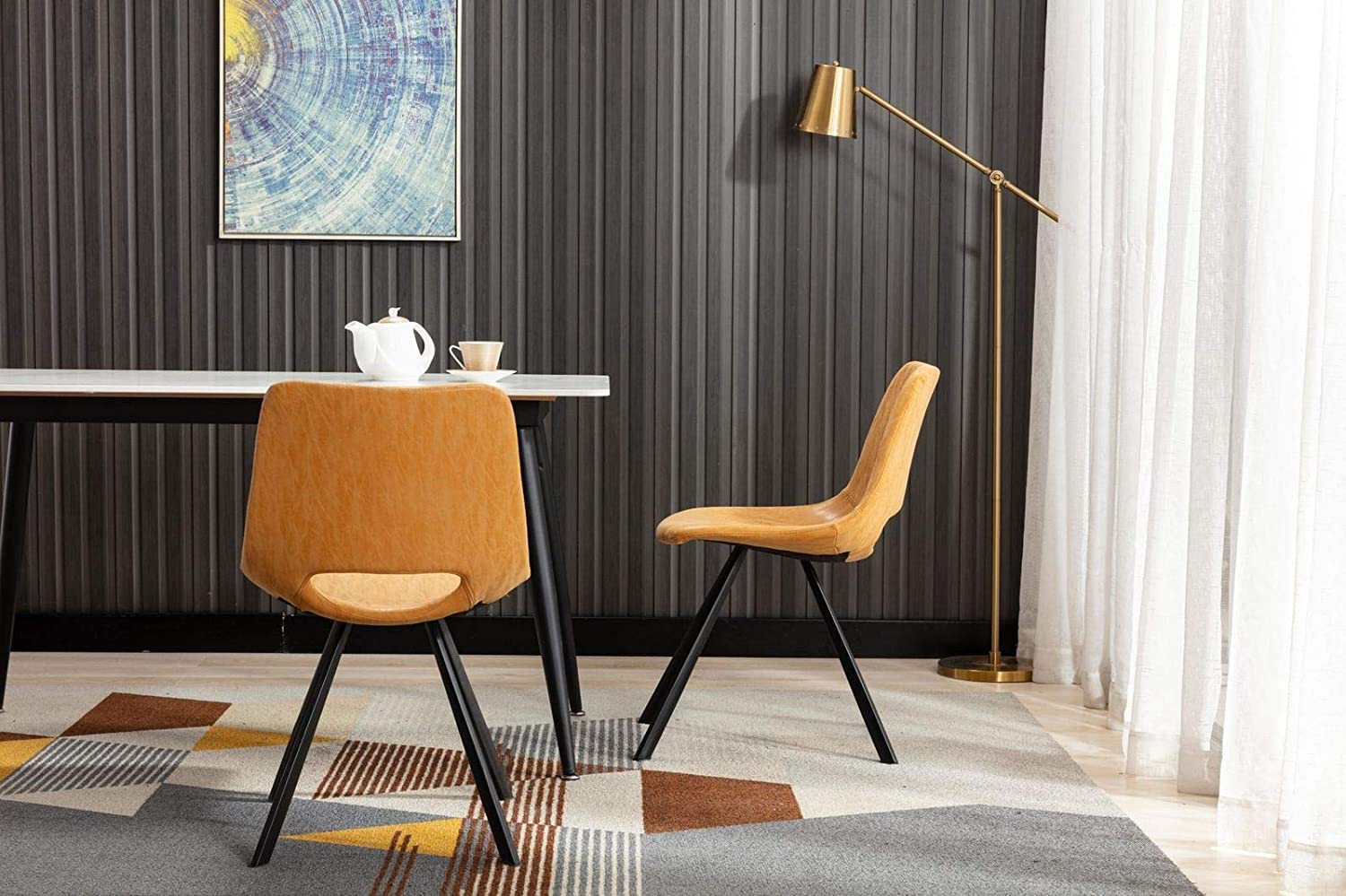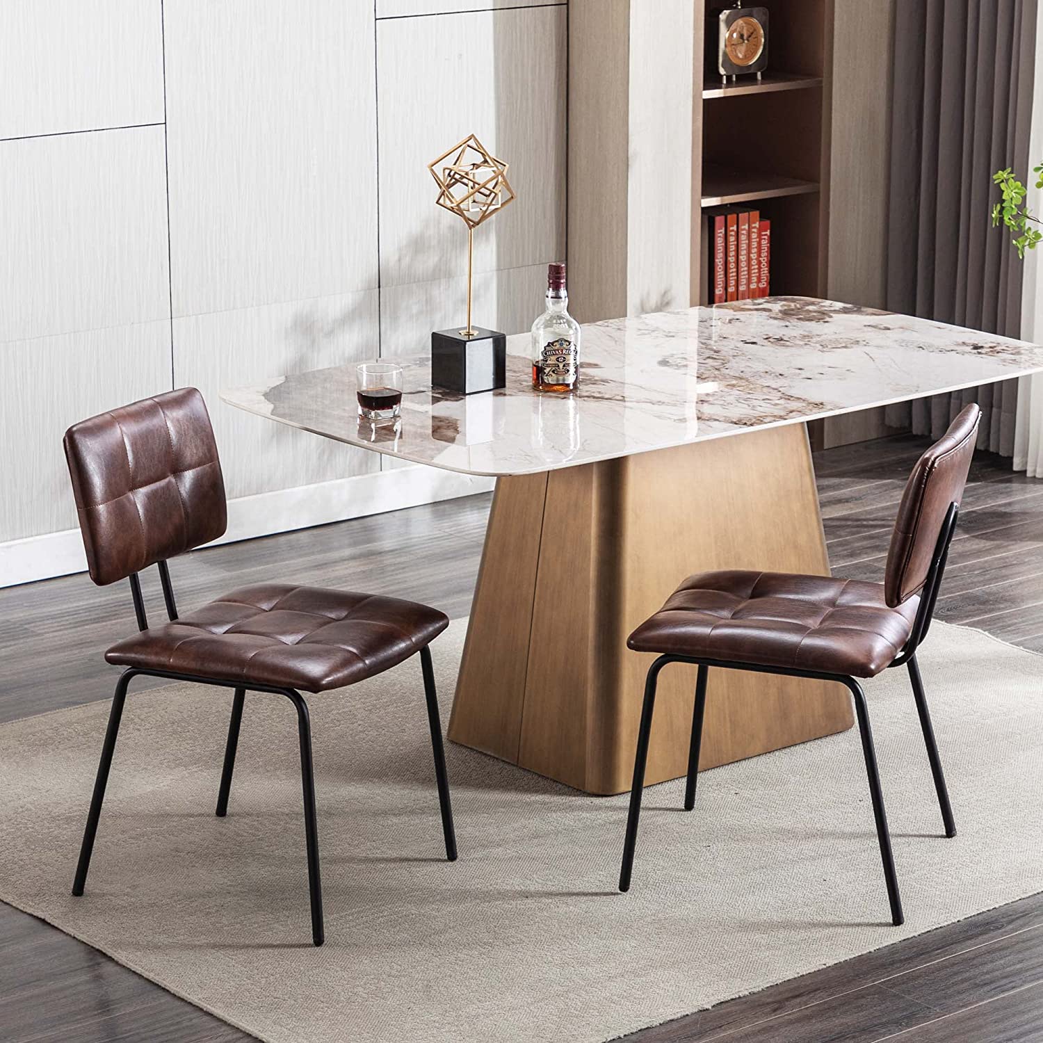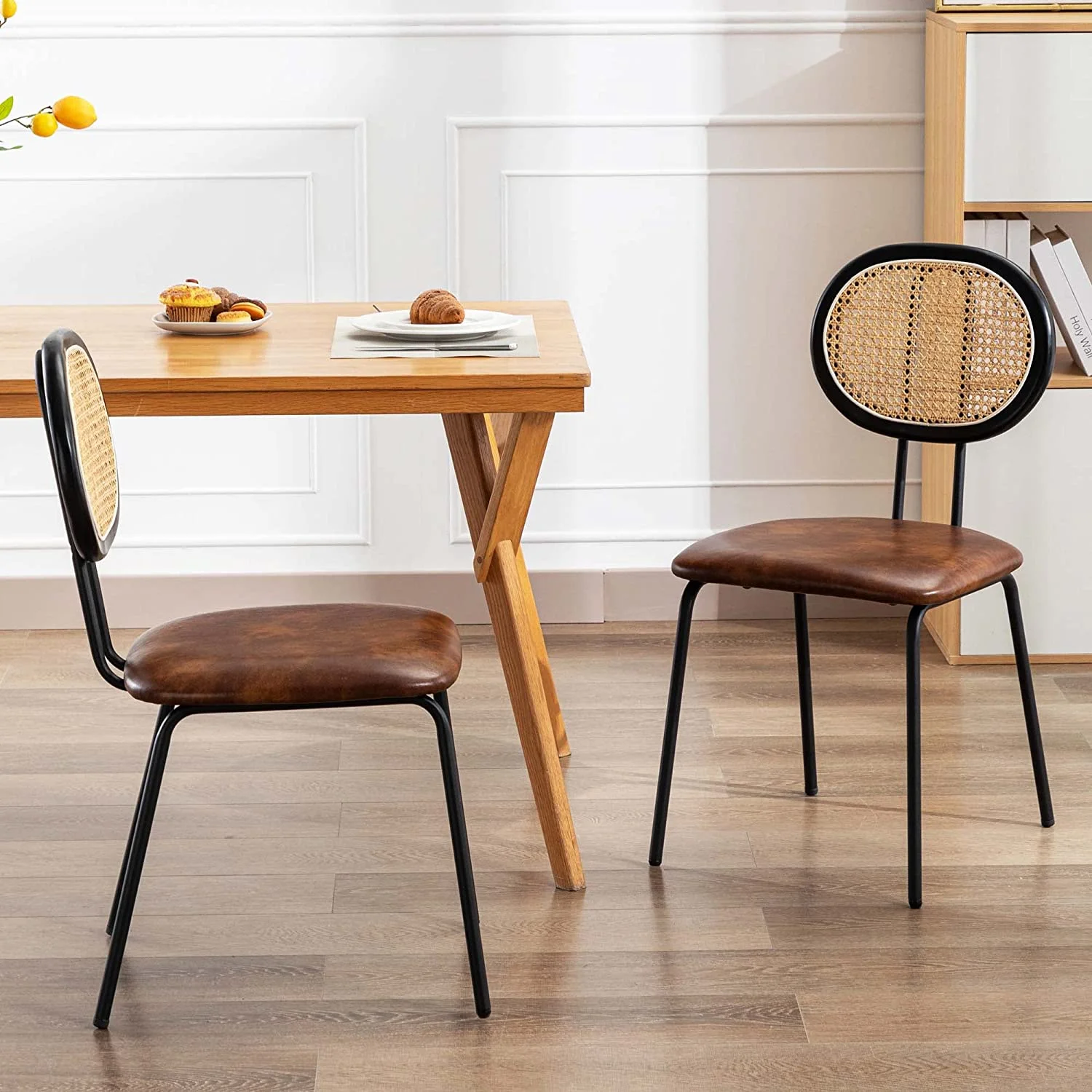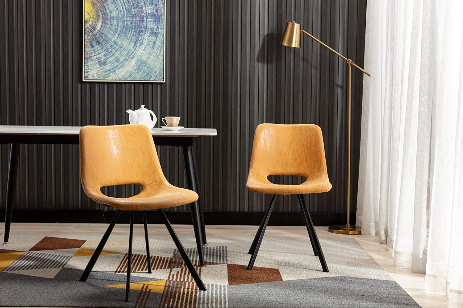 YOUNUOKE Dining Chairs Set of 2 Mid Century Modern Faux Leather Kitchen Dining Chair, White